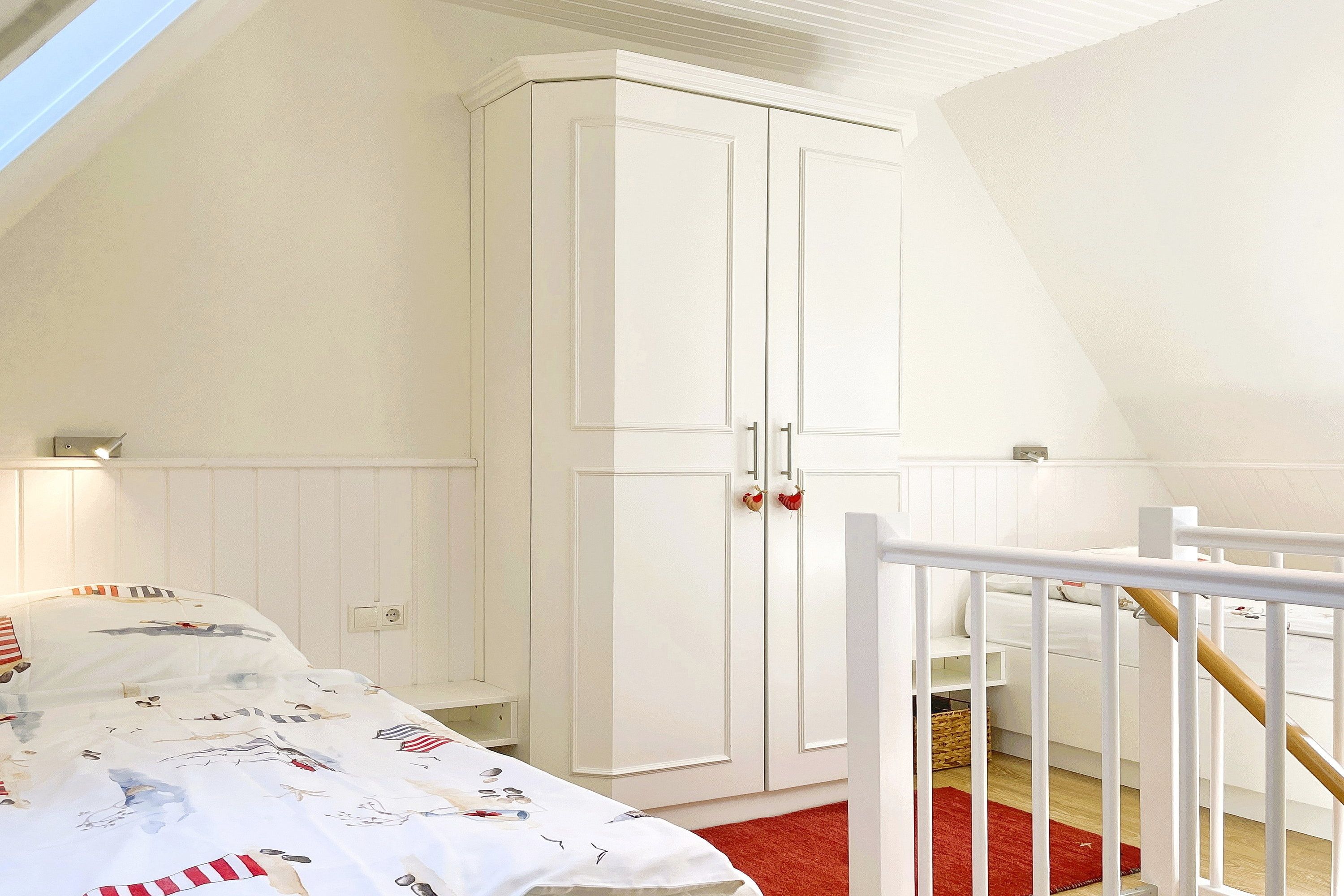 Entdecken Sie Ihren Traumurlaub in der exquisiten Ferienwohnung Leuchtturm auf der malerischen Insel Föhr! Diese charmante Unterkunft im Herzen von Wyk bietet Ihnen den perfekten Rückzugsort für bis zu 4 Personen. Verteilt über vier Etagen erwartet Sie ein herrliches Domizil: Im Hochparterre genießen Sie die hochwertige Einbauküche und das gemütliche Wohnzimmer mit Parkettboden. Eine Etage höher finden Sie ein geschmackvolles Duschbad mit ebenerdiger Dusche, ein separates Gäste-WC sowie das Elternschlafzimmer mit Doppelbett, während im Dachgeschoss das zweite Schlafzimmer mit zwei Einzelbetten das ideale eigene Reich für Kinder ist. Im Souterrain steht Ihnen neben einem zweiten Bad mit ebenerdiger Dusche ein Lesezimmer als Rückzugsort mit direktem Zugang zur Terrasse und zum kleinen Garten zur Verfügung, ideal für entspannte Stunden im Freien. Unser Leuchtturm lässt keine Wünsche offen: Moderne Technik wie Flachbild-TV sowohl im Wohnzimmer, in den beiden Schlafzimmern und im Leseraum sowie eine Musikanlage und WLAN sorgen für Unterhaltung. Eine Waschmaschine und ein Trockner sind ebenfalls vorhanden und kostenfrei nutzbar. Zentral und dennoch ruhig gelegen, bietet die Ferienwohnung Leuchtturm den idealen Ausgangspunkt für Ihre Entdeckungstouren auf Föhr. Der kurze Weg zum Strand lädt zu ausgedehnten Spaziergängen und erholsamen Stunden am Meer ein. Erleben Sie unvergessliche Momente in dieser geschmackvoll eingerichteten Ferienwohnung, die mit ihrer hochwertigen Ausstattung und Ihrem Charme begeistert. Ihr Traumurlaub beginnt hier, im Leuchtturm – Ihrem Zuhause auf Zeit!