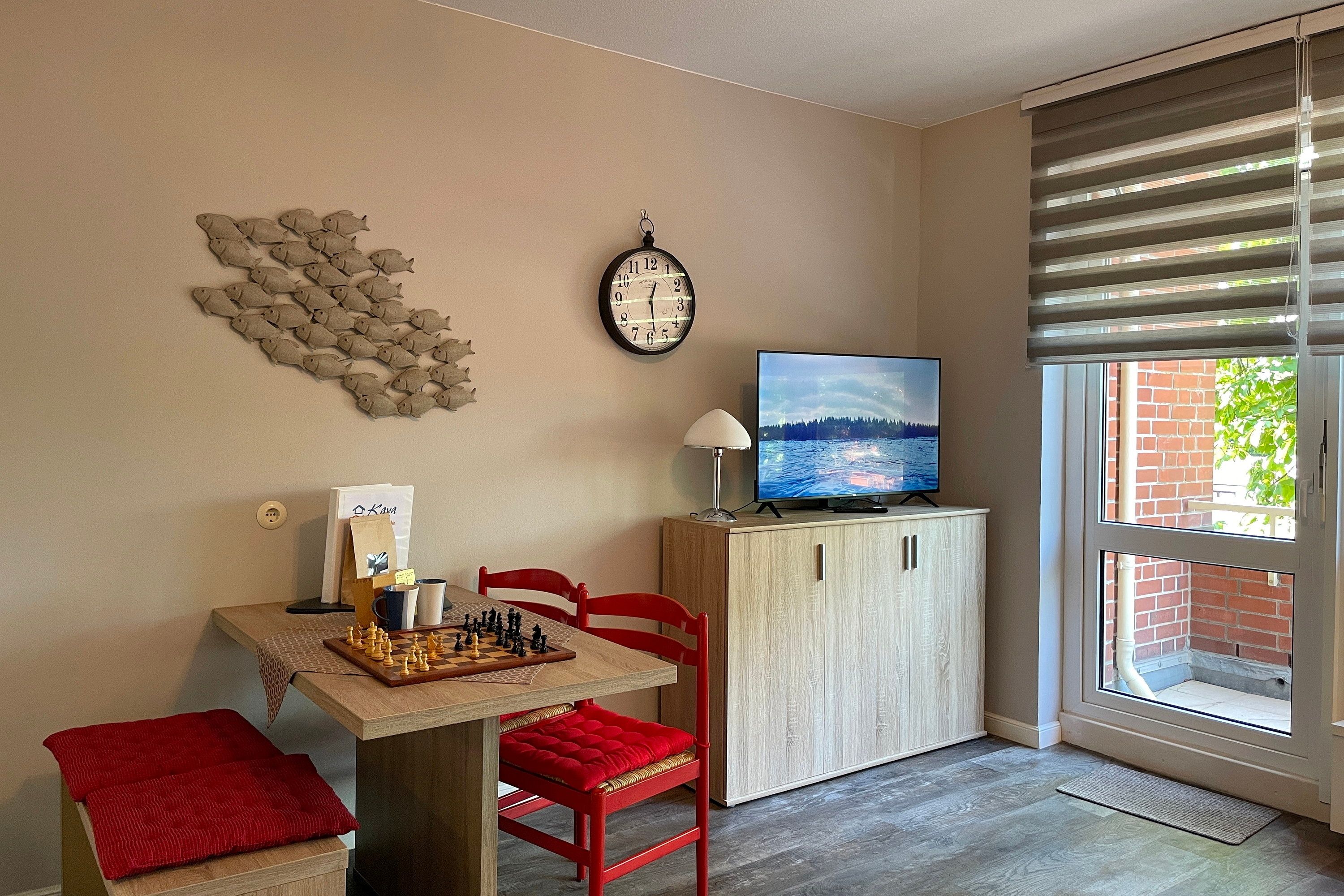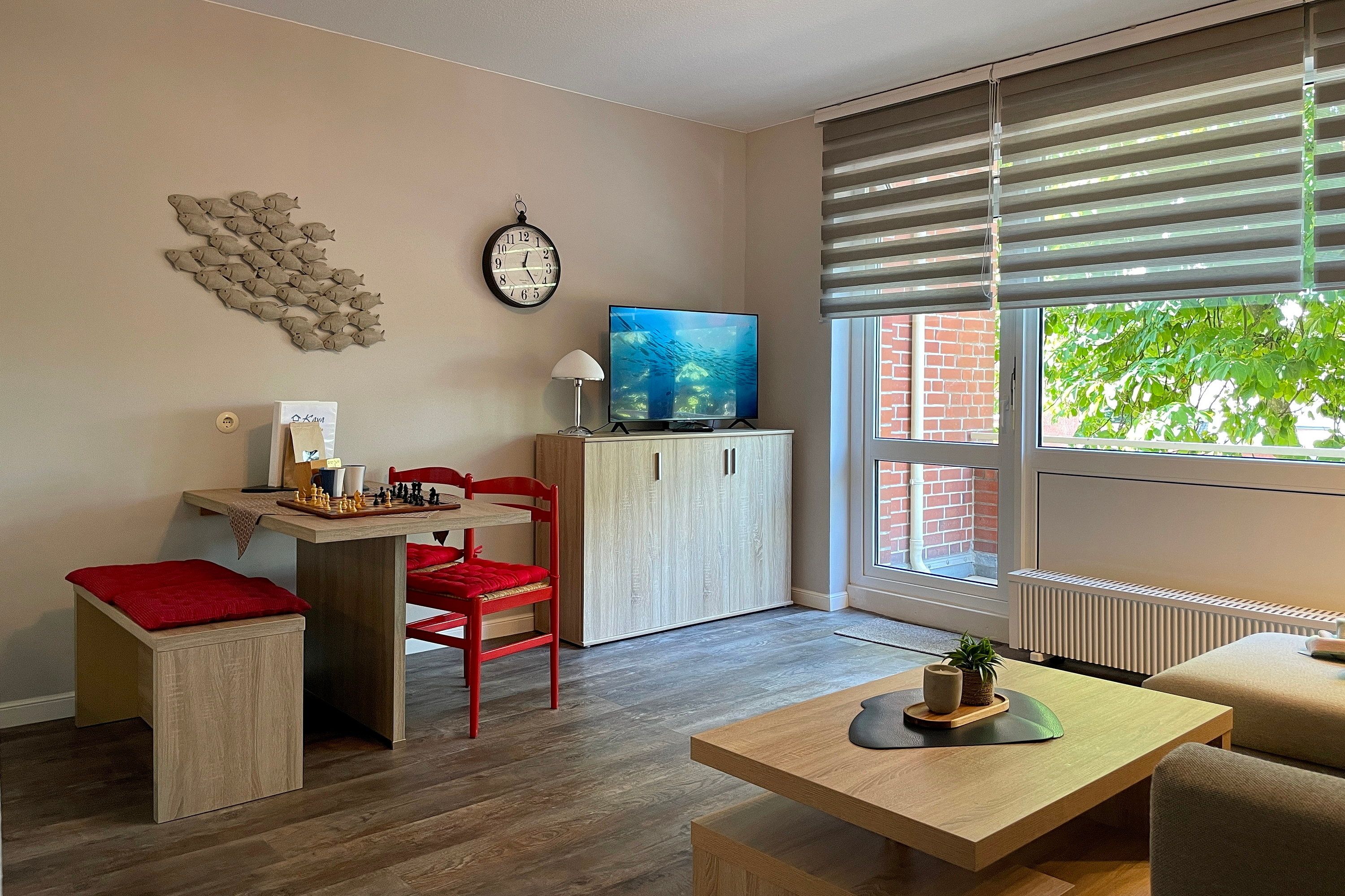 Das Haus Seeblick befindet sich in bester Lage direkt am Sandwall. Die Fußgängerzone mit den kleinen Geschäften, einladenden Cafés und Restaurants sowie der feinsandige Strand und die Nordsee sind nur einen Katzensprung entfernt...Willkommen in unserer charmanten Ferienwohnung Seeblick 16 direkt am Sandwall auf der wunderschönen Nordseeinsel Föhr! Mit einer Größe von ca. 46 m² bietet die Unterkunft den idealen Rückzugsort für zwei Gäste, die Erholung und Komfort suchen. Genießen Sie die Nähe zur Nordsee und lassen Sie sich von der einzigartigen Atmosphäre der Insel verzaubern. Unser gemütliches Wohnzimmer lädt zum Entspannen ein und bietet eine gemütliche Sitzecke sowie eine Essgruppe, an der Sie Ihre Mahlzeiten genießen können. Die gut ausgestattete Küchenzeile lässt keine Wünsche offen – ob Frühstück, Mittagessen oder Abendessen, hier können Sie nach Herzenslust kochen. Moderne Annehmlichkeiten wie WLAN und TV sorgen dafür, dass Sie auch im Urlaub immer bestens vernetzt bleiben. Das Badezimmer mit Fußbodenerwärmung ist mit einer komfortablen Dusche und einem Handtuchheizung ausgestattet und verfügt über eine Waschmaschine, den Sie kostenfrei nutzen können – ideal für längere Aufenthalte. Das separate Schlafzimmer bietet zwei bequeme Einzelbetten (90 x 200 cm), die für erholsame Nächte sorgen. Unser Seeblick 16 befindet sich in einer der besten Lagen auf Föhr: direkt am beliebten Sandwall, der Strandpromenade von Wyk. Von hier aus erreichen Sie den Strand, gemütliche Cafés, Restaurants und Einkaufsmöglichkeiten in wenigen Minuten zu Fuß. Genießen Sie den Blick auf das Meer oder unternehmen Sie ausgedehnte Spaziergänge entlang der Küste. Buchen Sie jetzt Ihre Auszeit auf Föhr und erleben Sie unvergessliche Tage in unserer liebevoll eingerichteten Ferienwohnung Seeblick 16! Wir freuen uns darauf, Sie bei uns willkommen zu heißen.