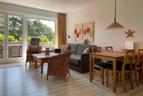 Unsere einladende Wohnung Watt'n Blick befindet sich nahe des Wyker Leuchtturms nur einen Katzensprung vom Strand entfernt und eignet sich für 2 Personen hervorragend für einen erholsamen Urlaub. Das Wohnzimmer mit hochwertiger Schlafcouch (170x190cm), integrierter Essecke und gut ausgestatteter Küchenzeile ist mit WLAN, Internet- TV und einer Stereoanlage sowie einer kleinen Auswahl an Büchern ausgestattet. Von hier aus gelangen Sie auf den Balkon mit einer automatisch ausfahrbaren Markise. Das kleine Duschbad mit Handtuchheizung ist funktional eingerichtet und im separaten Schlafzimmer mit Doppelbett (140 x 200 cm) können Sie ruhige Nächte erleben. Waschmaschine und Trockner stehen zur gemeinschaftlichen Nutzung gegen eine geringe Gebühr bereit und zur Wohnung gehört ein eigener PKW-Stellplatz.