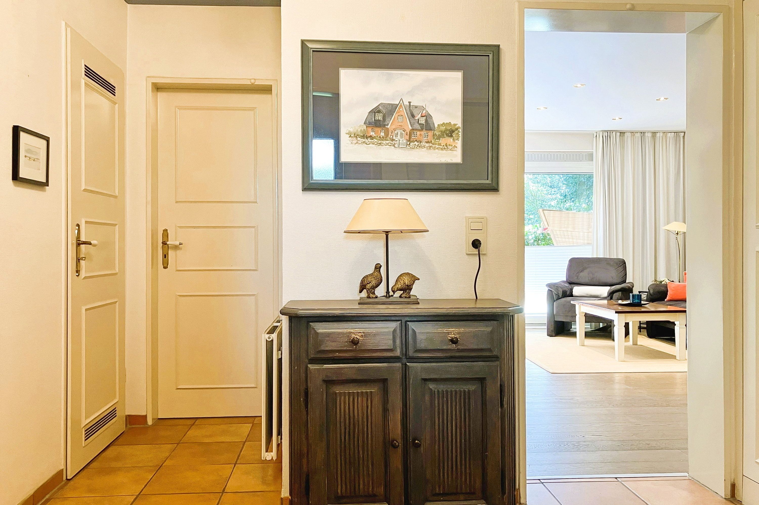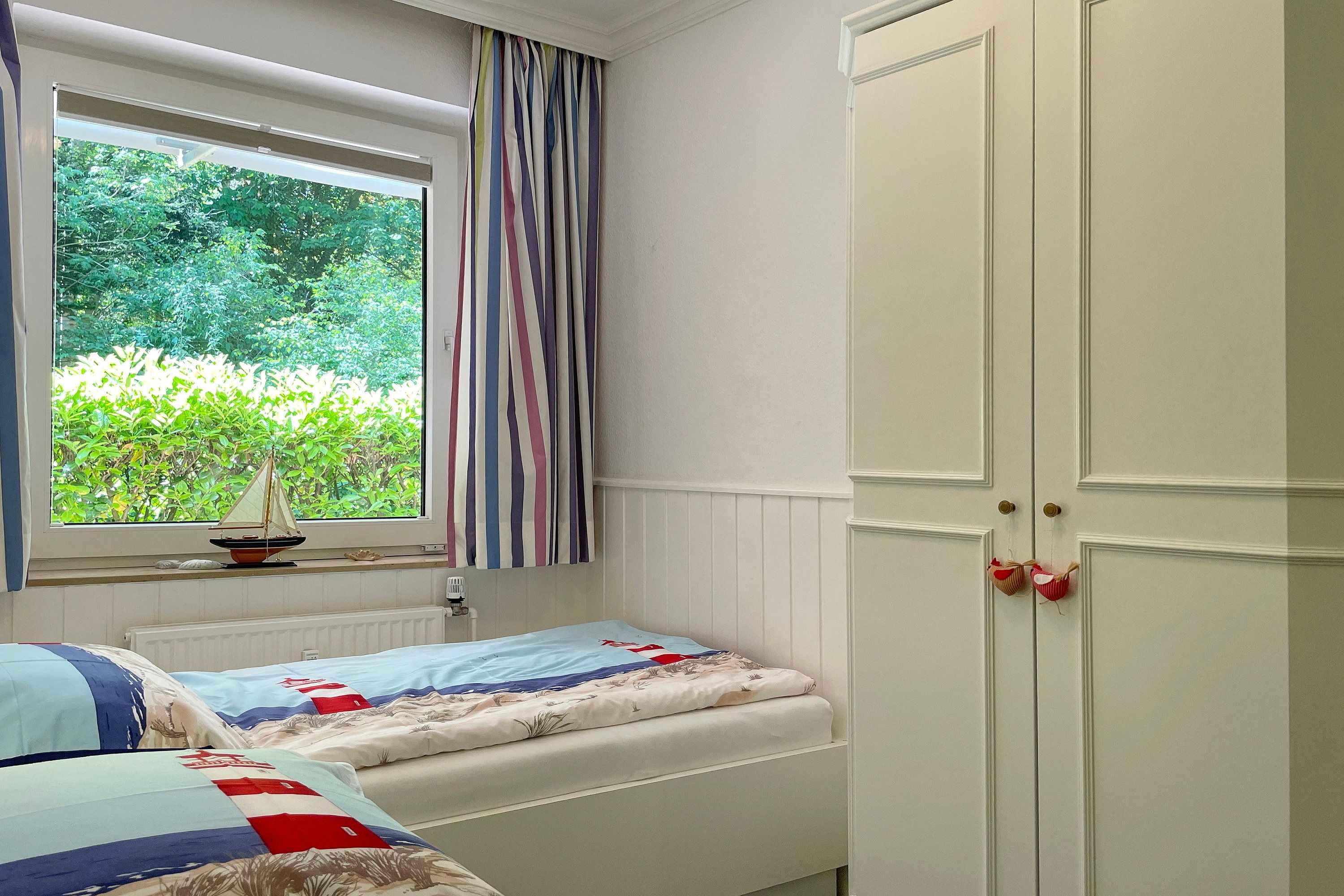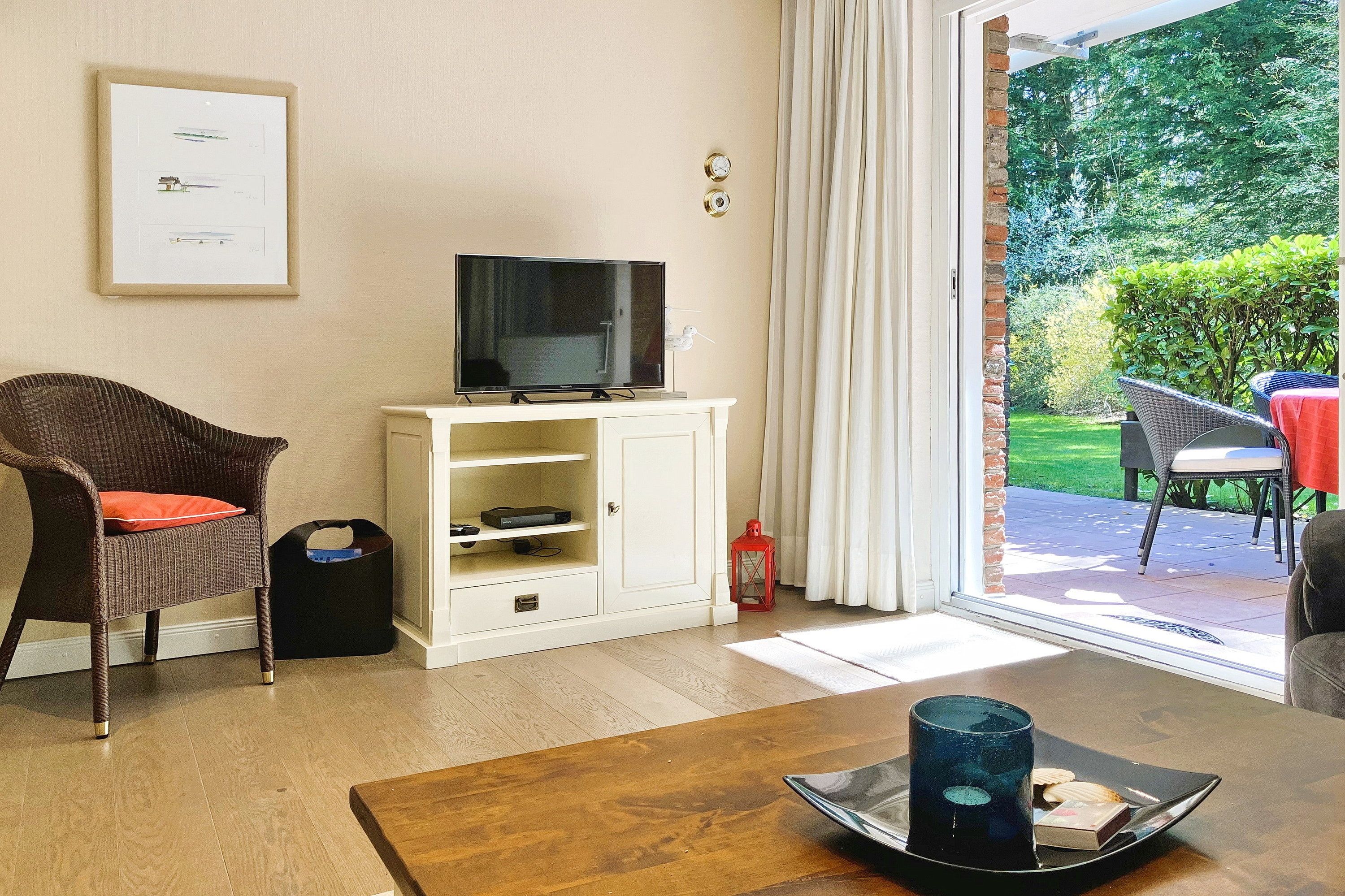 Früher war Föhr als die grüne Insel bekannt und in unserer Wohnung 12 am Südstrand wird man daran erinnert. Nur ca. 200m entfernt vom beliebten Wyker Südstrand liegt die Unterkunft mitten im alten Kurpark mit seinem vielseitigen Baumbestand. Hier können bis zu 4 Personen entspannen und vom stressigen Alltag abschalten. Genießen können Sie nicht nur die Lage inmitten der Natur, sondern auch Ihr Feriendomizil mit der hochwertigen und geschmackvollen Einrichtung, die keine Wünsche offen lässt. Zwei gemütliche Schlafzimmer, ein Bad mit ebenerdiger Dusche und der weitläufige Wohnbereich mit bequemer Sitzgruppe, Essecke und Küchenzeile sind charmant und gepflegt. Auf Ihrer Terrasse wartet in den Sommermonaten (ca. Mai bis ca. September) ein eigener Strandkorb auf Sie, der das Föhr-Urlaubs-Feeling vollendet. Buchen Sie gleich Ihren nächsten Föhr-Aufenthalt in unserer Wohnung 12 am Südstrand.
