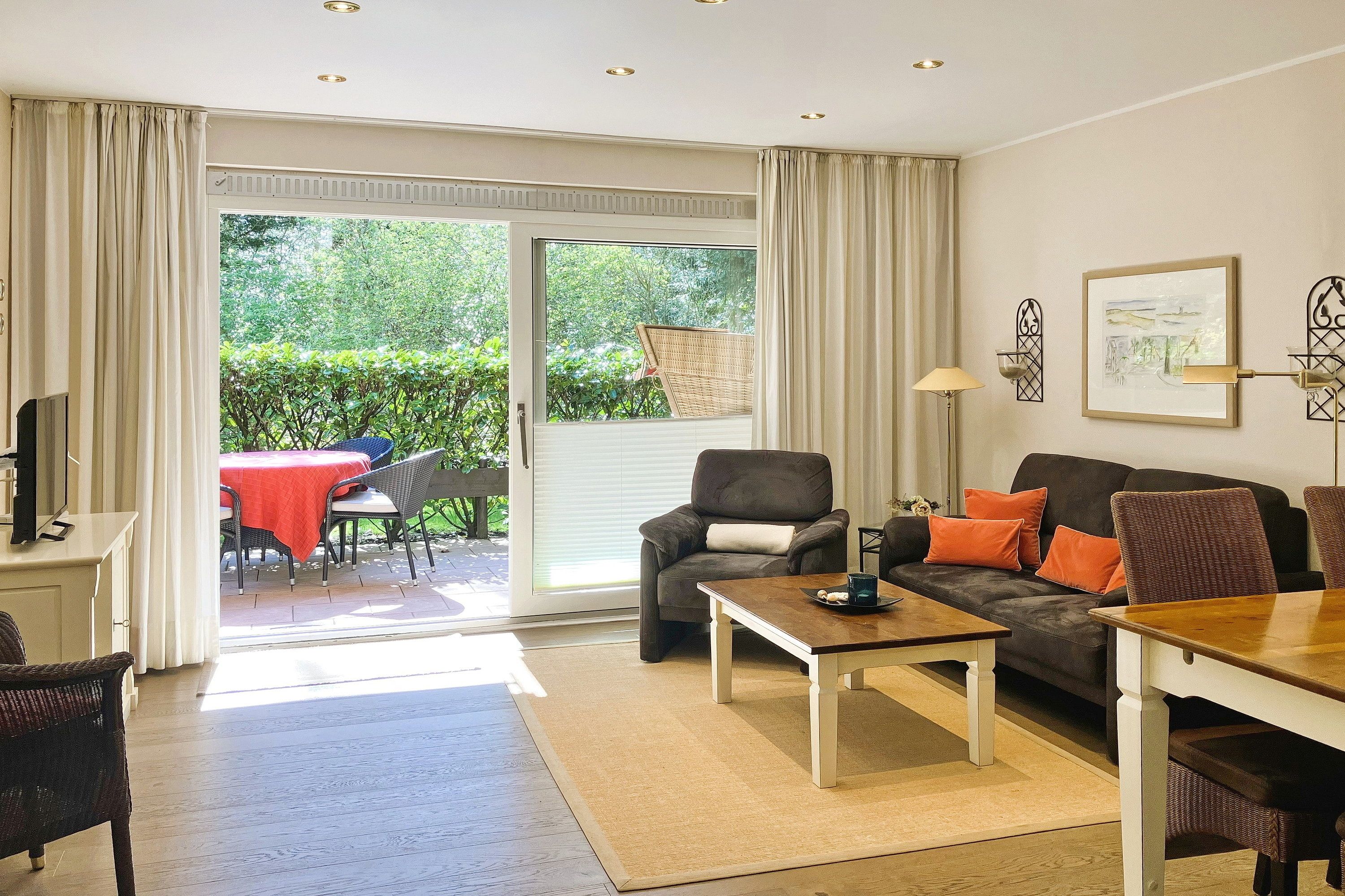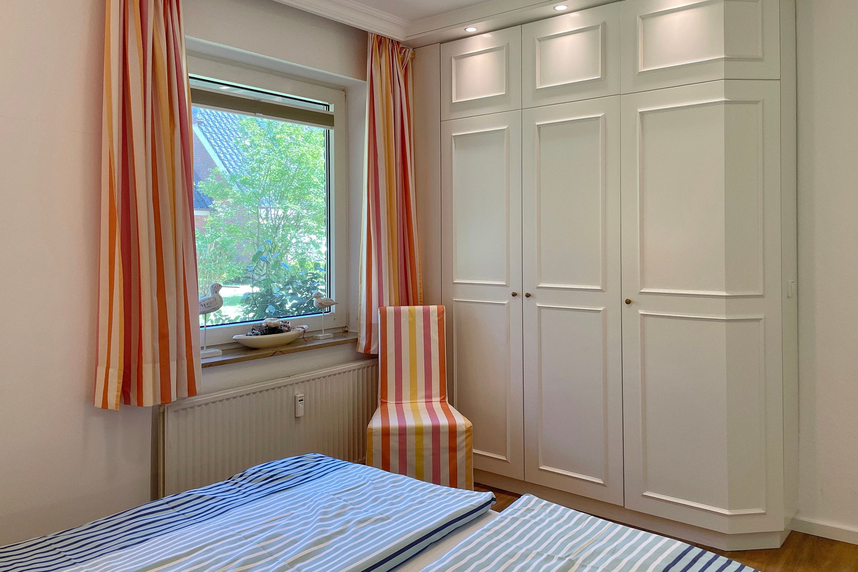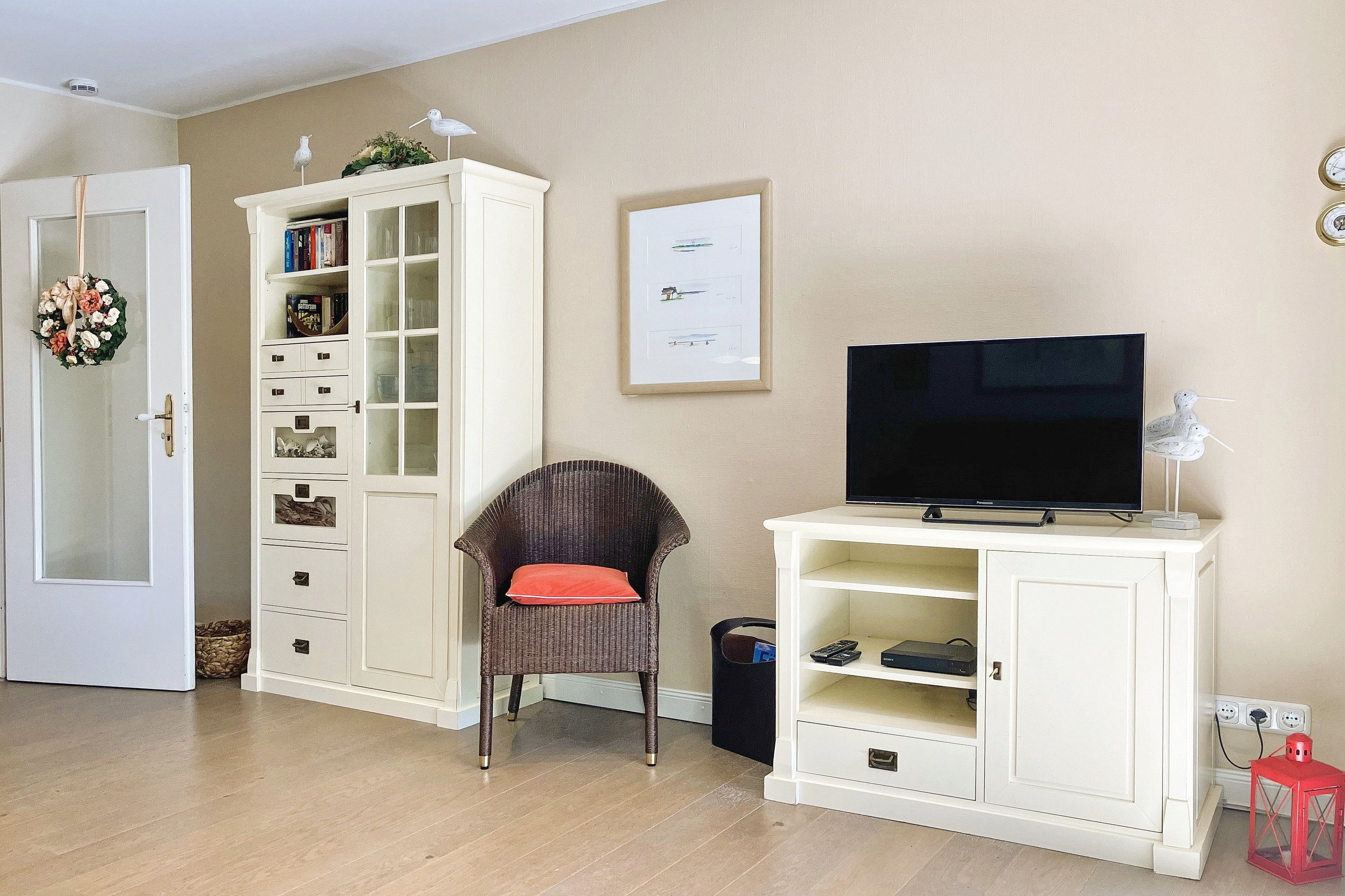 Früher war Föhr als die grüne Insel bekannt und in unserer Wohnung 12 am Südstrand wird man daran erinnert. Nur ca. 200m entfernt vom beliebten Wyker Südstrand liegt die Unterkunft mitten im alten Kurpark mit seinem vielseitigen Baumbestand. Hier können bis zu 4 Personen entspannen und vom stressigen Alltag abschalten. Genießen können Sie nicht nur die Lage inmitten der Natur, sondern auch Ihr Feriendomizil mit der hochwertigen und geschmackvollen Einrichtung, die keine Wünsche offen lässt. Zwei gemütliche Schlafzimmer, ein Bad mit ebenerdiger Dusche und der weitläufige Wohnbereich mit bequemer Sitzgruppe, Essecke und Küchenzeile sind charmant und gepflegt. Auf Ihrer Terrasse wartet in den Sommermonaten (ca. Mai bis ca. September) ein eigener Strandkorb auf Sie, der das Föhr-Urlaubs-Feeling vollendet. Buchen Sie gleich Ihren nächsten Föhr-Aufenthalt in unserer Wohnung 12 am Südstrand.