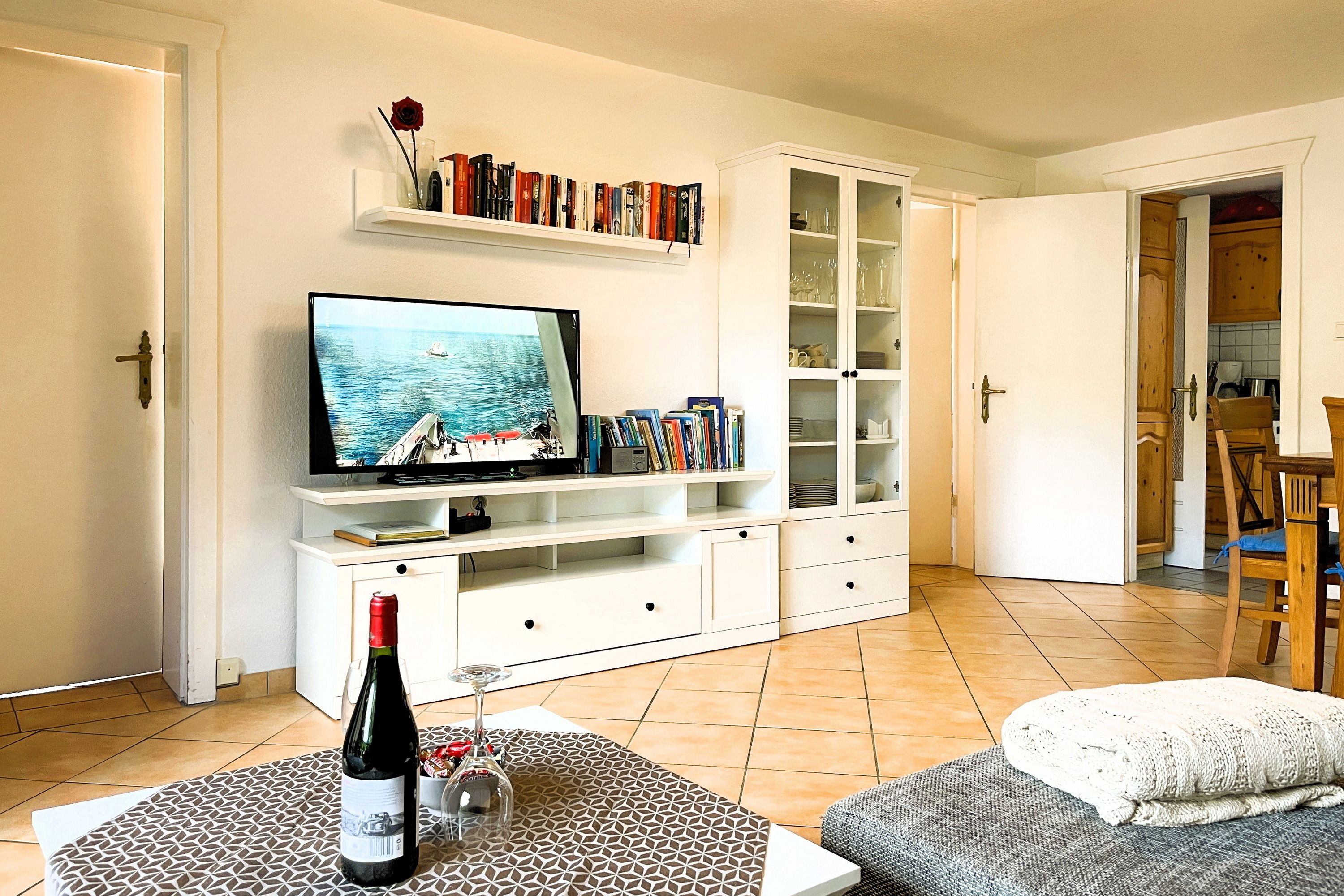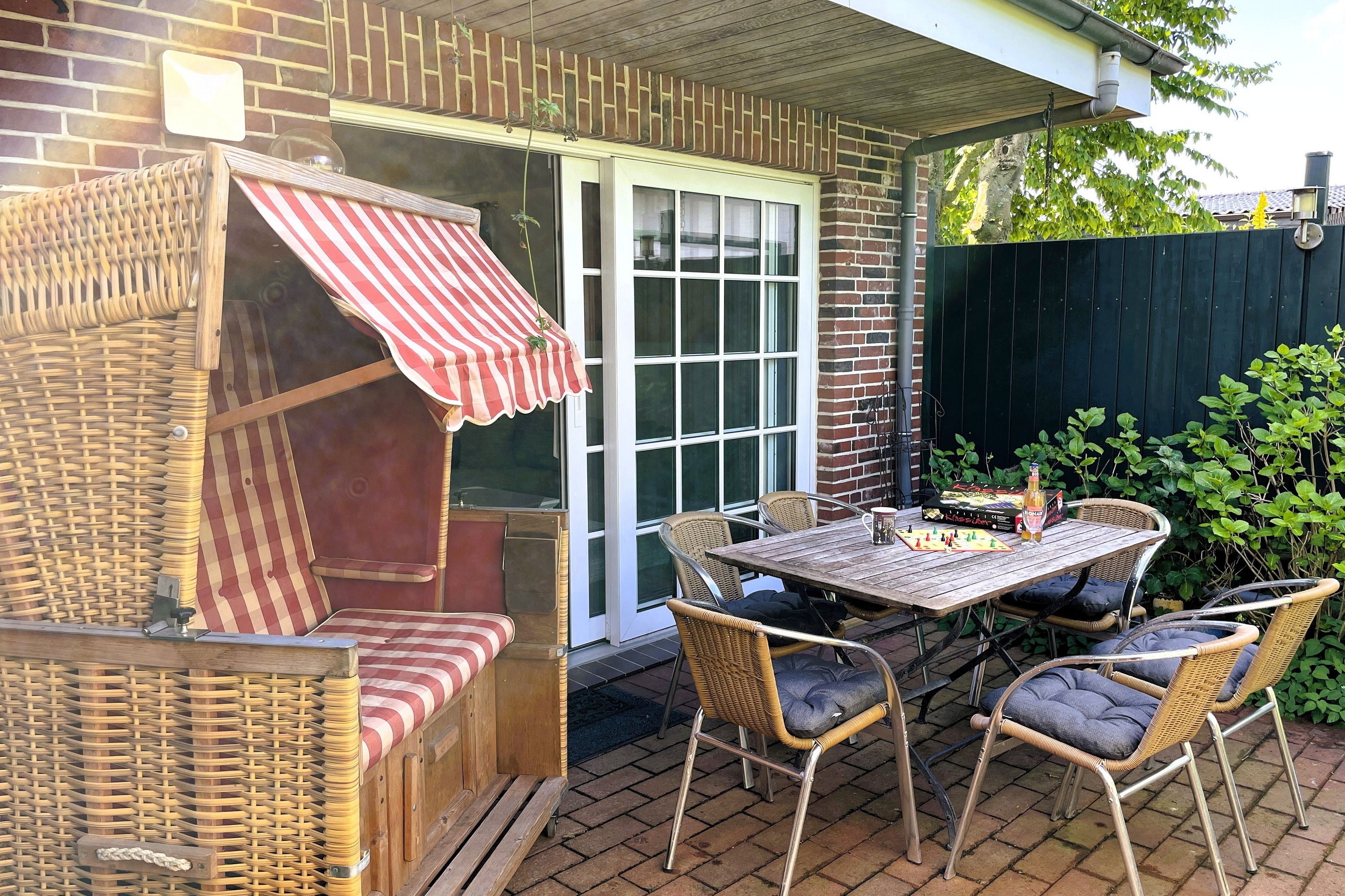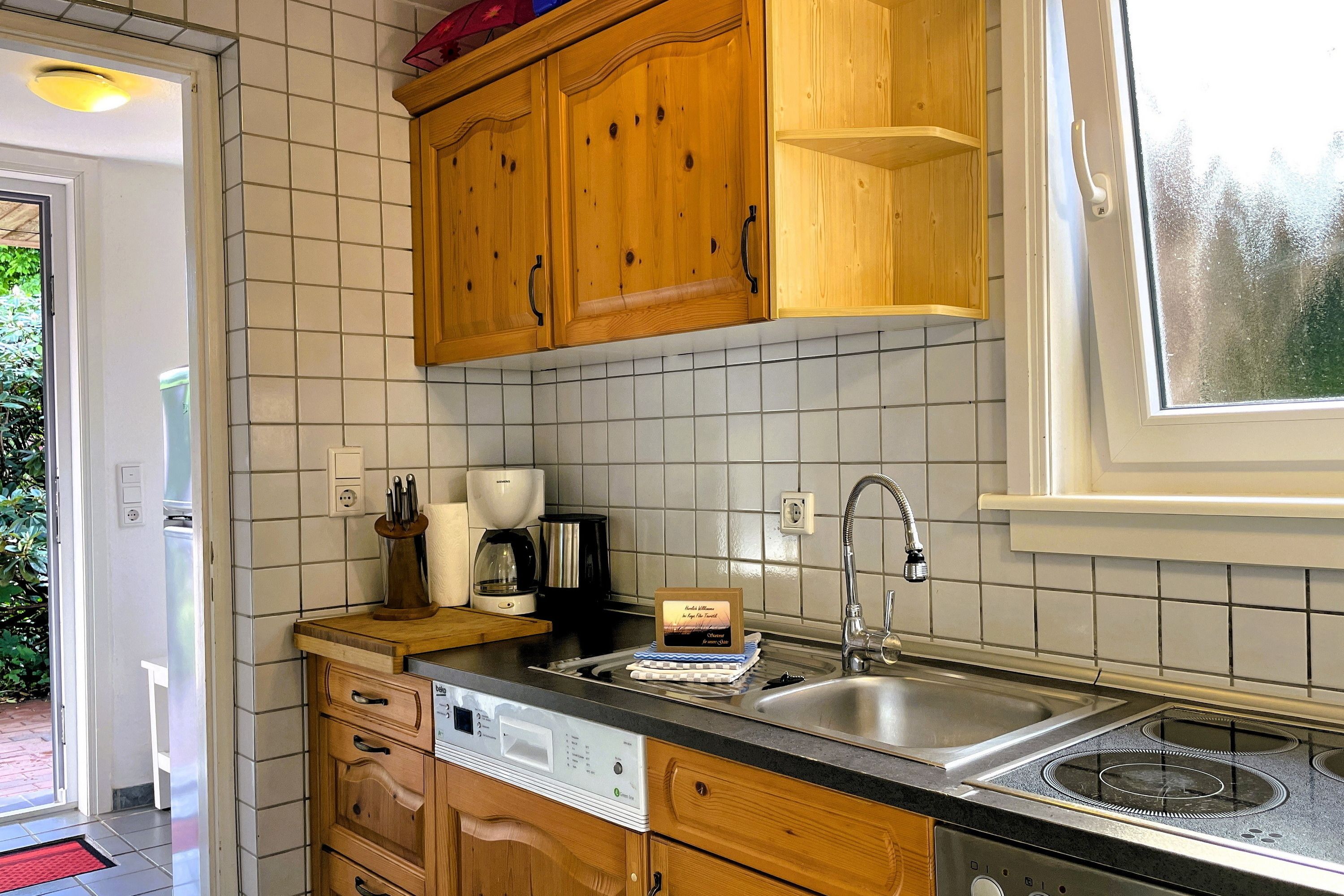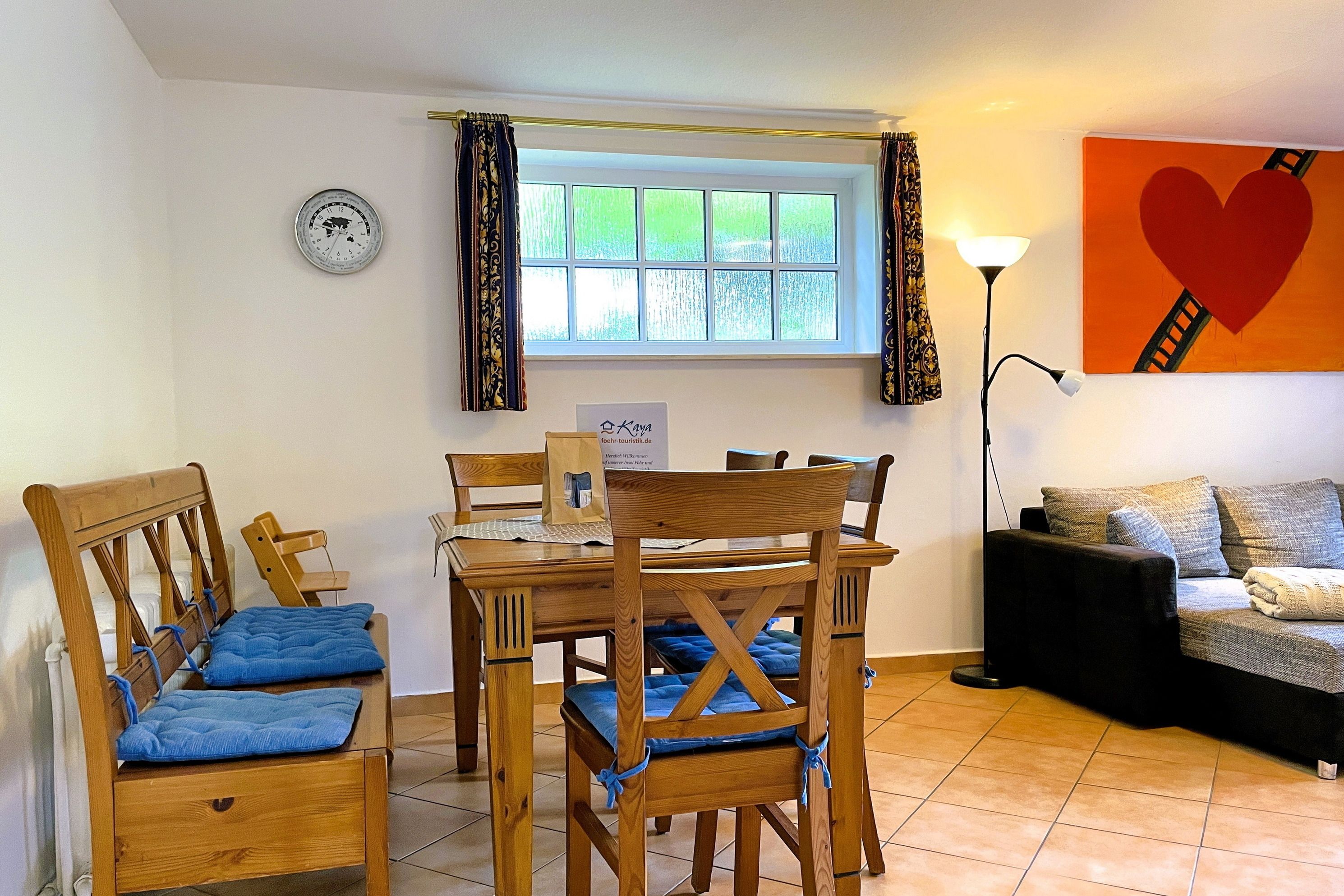 Unsere ca. 64 qm große Ferienwohnung Hannah betreten Sie über den Küchenbereich, der mit 4- Plattenherd und Backofen, Kühlschrank mit Gefrierfach, Wasserkocher und Kaffeemaschine gut ausgestattet ist. Des Weiteren verfügt die Wohnung über zwei Schlafzimmer, eines mit einem Doppelbett (180 x 200) und eines mit zwei Einzelbetten (80 x 200), welche geruhsame Nächste versprechen. Der helle Wohnraum mit W-Lan, Flachbild-TV, Gesellschaftsspielen und einer Auswahl an Büchern integriert einen gemütlichen Essplatz und ist durch die große Terrassentür lichtdurchflutet. Von hier aus gelangen Sie auf die wohnungseigene Terrasse, auf der Sie einen erlebnisreichen Urlaubstag entspannt ausklingen lassen oder einfach nur im Strandkorb relaxen können. Der beliebte Föhrer Südstrand ist fußläufig erreichbar und ein beliebtes Ausflugsziel. Ebenfalls in fußläufiger Entfernung befinden sich einige Restaurants, ein Bäcker und ein Schlachter, ein kleiner Edeka Markt und für die Kinder ein Wasserspielplatz (Badestraße) und unsere beliebte Löwenhöhle, ein Waldspielplatz für kleine Abenteurer.