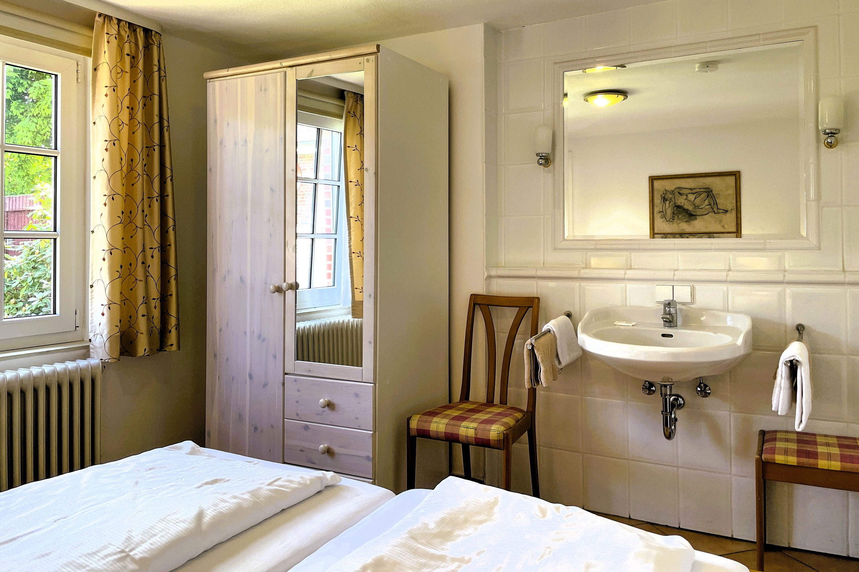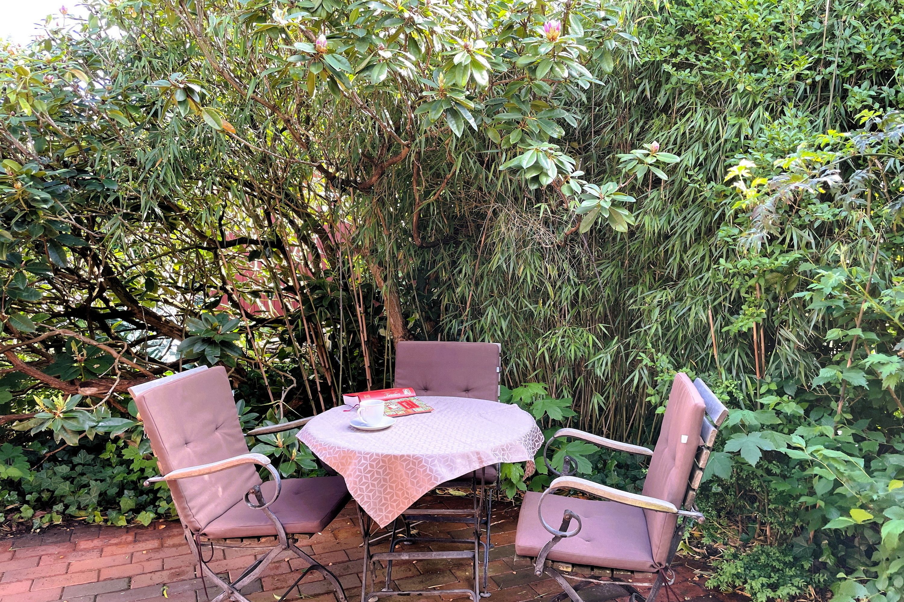 Auf dem ökologisch-natürlich angelegten Grundstück befindet sich unsere hübsche Ferienwohnung Hannah im Anbau mit eigener Terrasse hinter dem Haupthaus in ruhiger Lage. Die guten Einkaufsmöglichkeiten und Restaurants in der näheren Nachbarschaft bieten die Möglichkeit alles fußläufig zu erreichen.