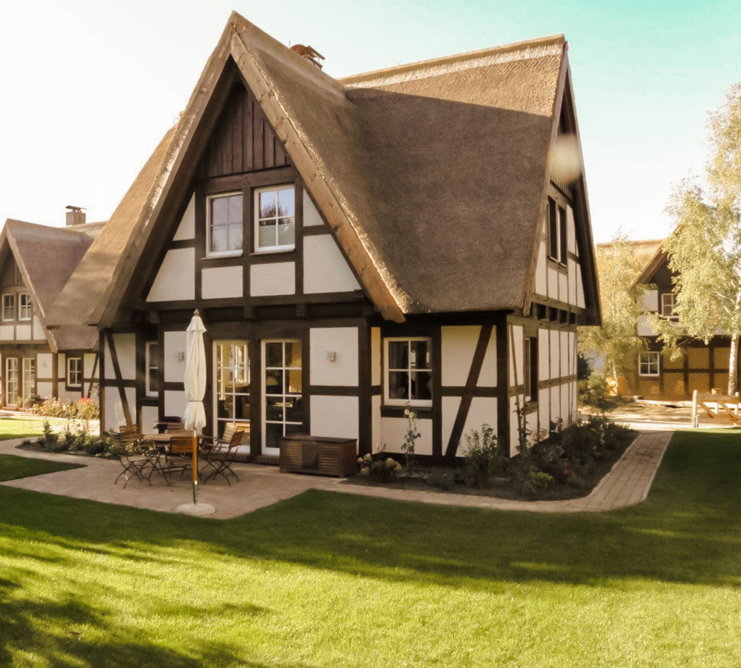 Das ökologisch errichtete Eichenfachwerkhaus verbindet exklusive Ausstattung mit ländlichem Charme.