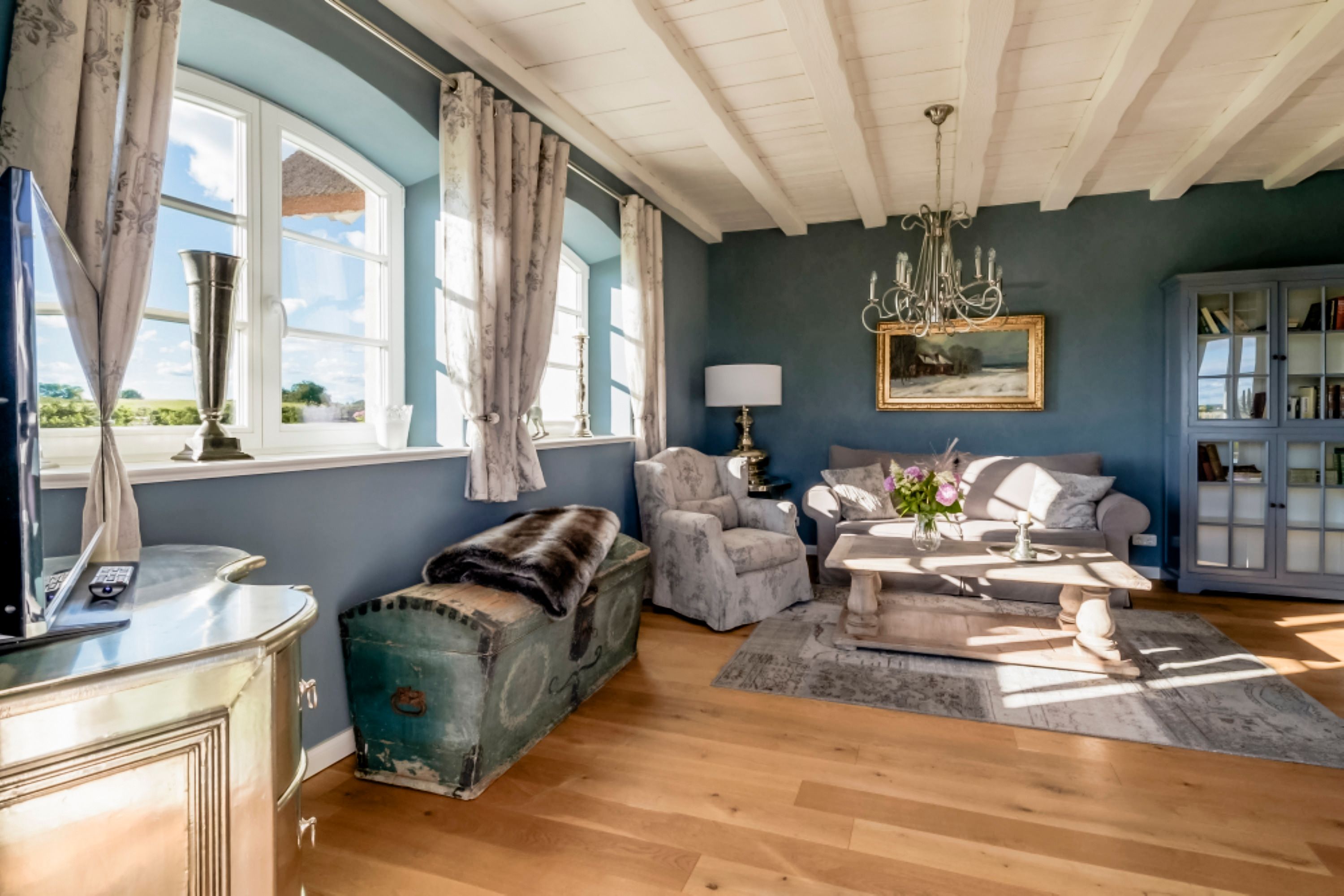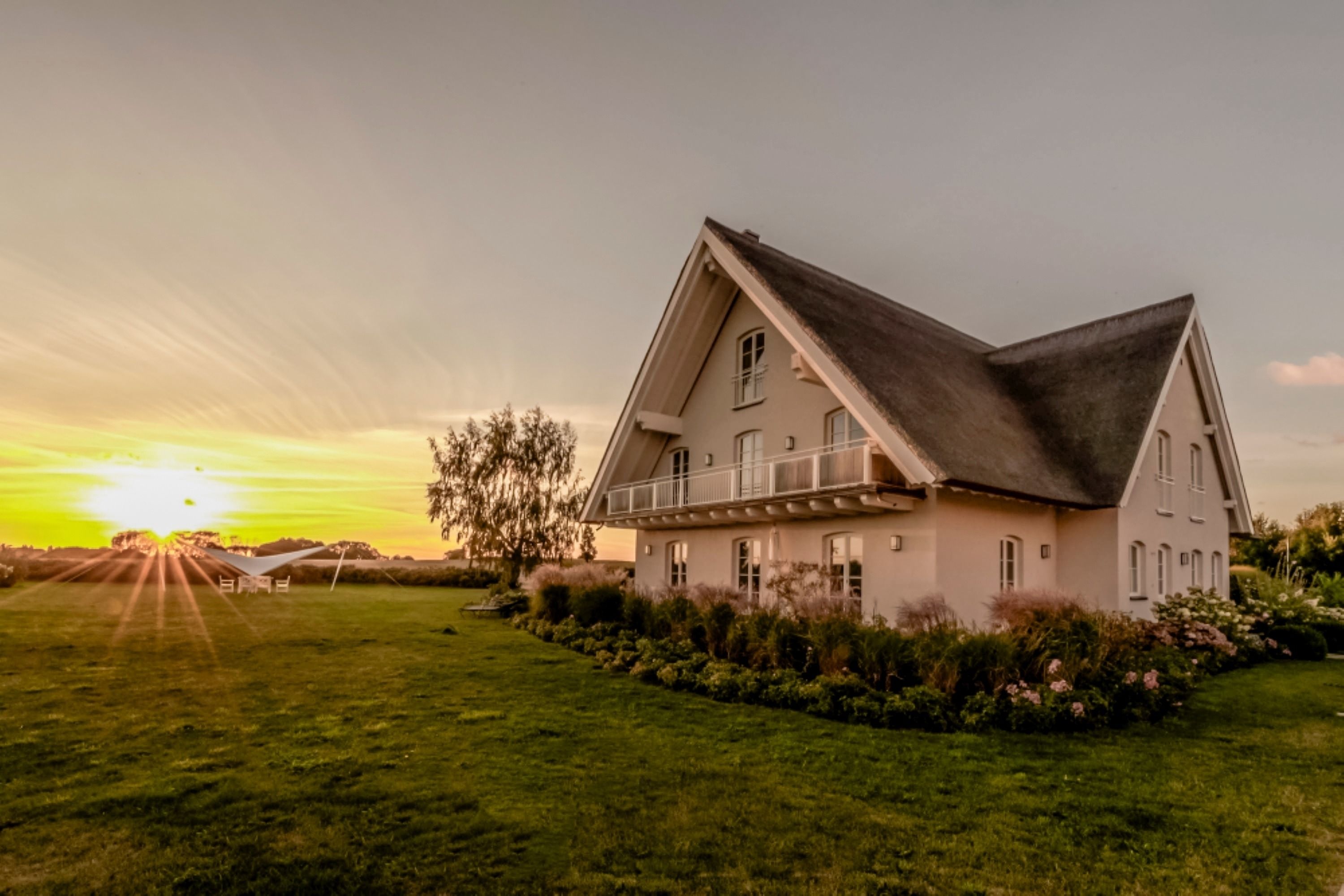 Erleben Sie einen unvergesslichen Aufenthalt in diesem stilvollen 2-Personen-Appartement im Erdgeschoss des herrschaftlichen weißen Reetdachhauses auf der weitläufigen Anlage des Lerchenhofs in Reestow. Mit seiner geschmackvollen Möblierung im gehobenen Landhausstil und einer hochwertigen Ausstattung ist dieses Domizil der ideale Ort für einen romantischen Urlaub oder eine Auszeit vom Alltag.