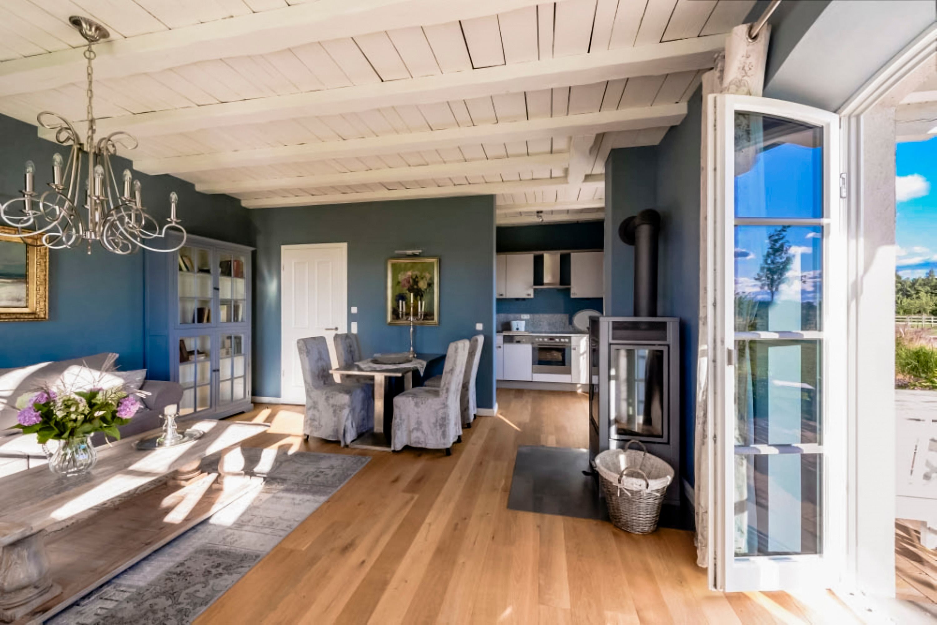 Voll ausgestattete Küche: Die Komfortküche verfügt über Spülmaschine, Backofen, Kaffeemaschine, Wasserkocher und Toaster. Der Essbereich bietet Platz für bis zu 4 Personen.