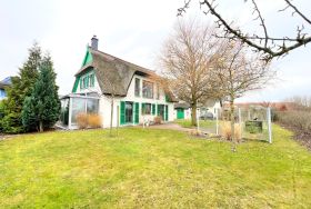 Das freistehende Ferienhaus steht auf einem rund 600 m² großen, nutzbaren Grundstück und erstreckt sich über zwei Etagen. Eine Terrasse mit Gartenmöbeln, ein separater Grillplatz sowie eine Essecke im Garten laden zum Verweilen im Freien ein. Der Garten kann aktiv genutzt werden und bietet ausreichend Platz für Erholung und gemeinsame Mahlzeiten.
