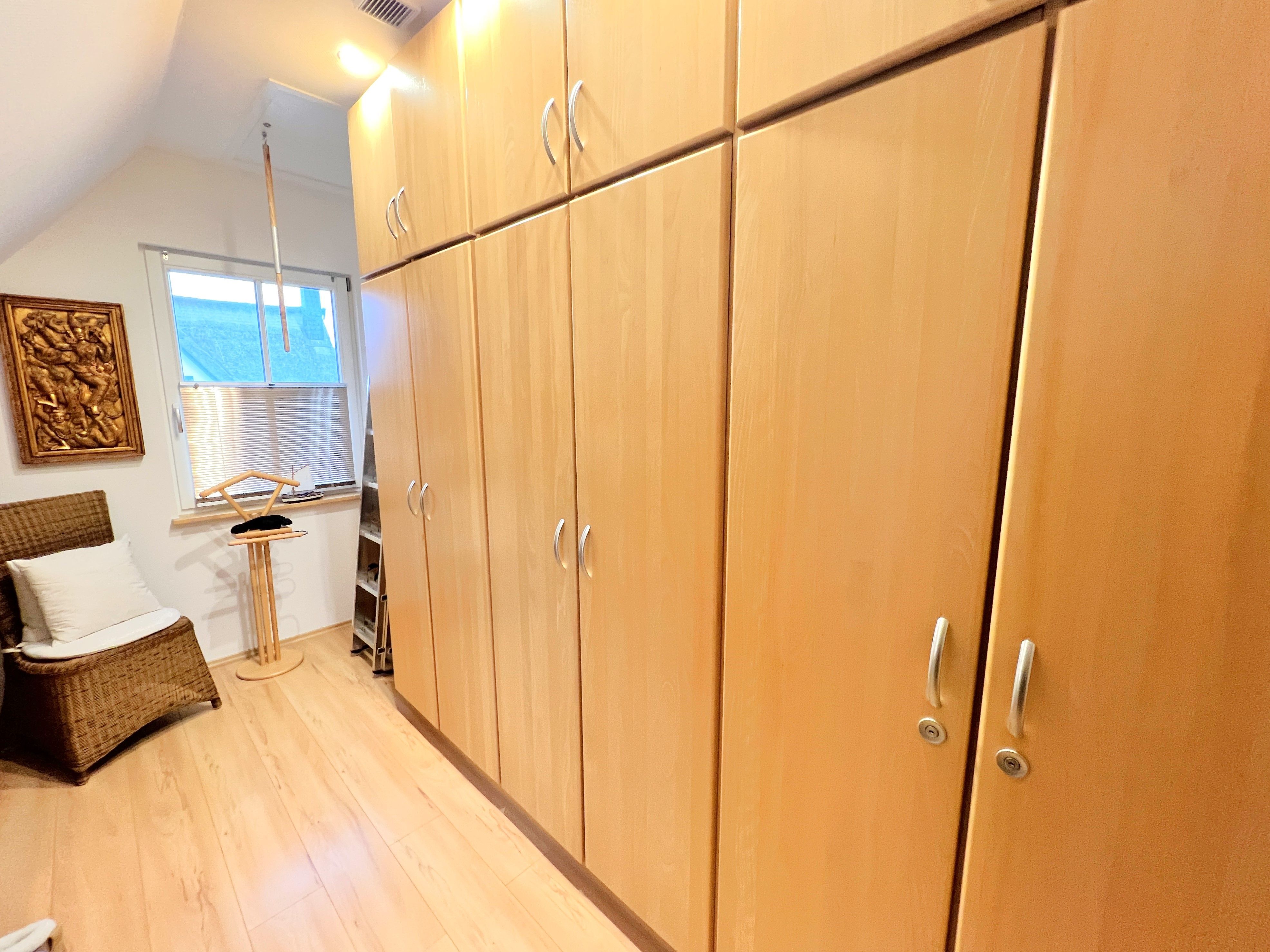 Mit ca. 165 m² Wohnfläche bietet das Haus großzügigen Raum für einen komfortablen Aufenthalt. Im Obergeschoss befinden sich zwei Schlafzimmer eines mit großem Doppelbett, das zweite mit französischem Doppelbett sowie ein separates Ankleidezimmer. Ebenfalls im Obergeschoss liegt das große Badezimmer mit amerikanischem Whirlpool, moderner Glasdusche und hochwertiger Ausstattung.