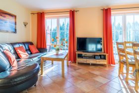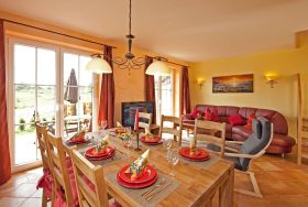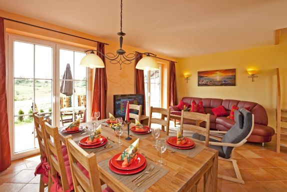 Im Erdgeschoss erwartet Sie ein heller, offen gestalteter Wohn- und Essbereich mit integrierter, voll ausgestatteter Küche. Der gemütliche Wohnbereich lädt mit Flachbild-TV, DVD-Player, Stereoanlage sowie Radio/CD-Player zum Entspannen ein. Eine Fußbodenheizung sorgt ganzjährig für ein angenehmes Wohnklima.