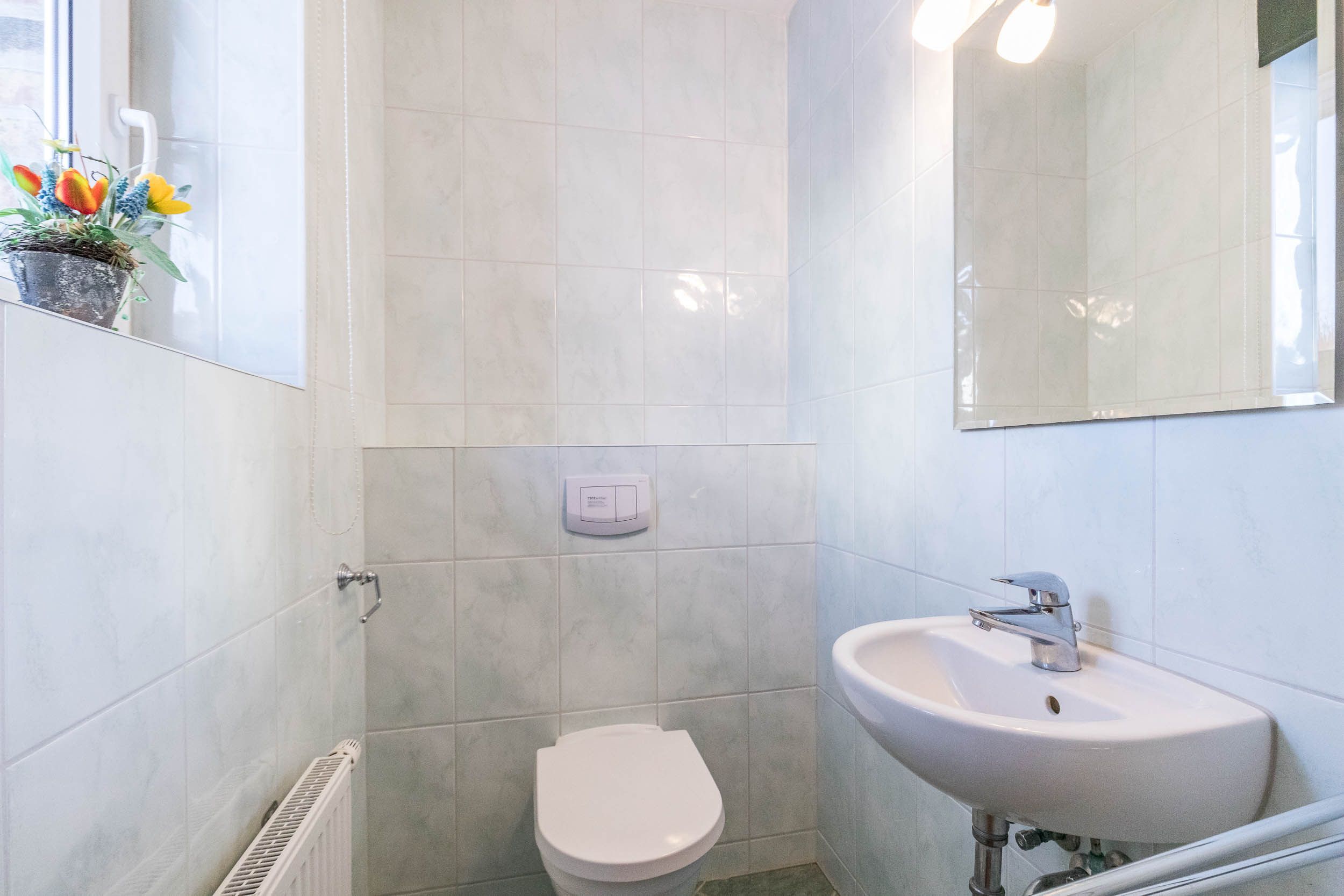 Im Erdgeschoss befindet sich ein Schlafzimmer mit Flachbild-TV sowie ein separates Gäste-WC.