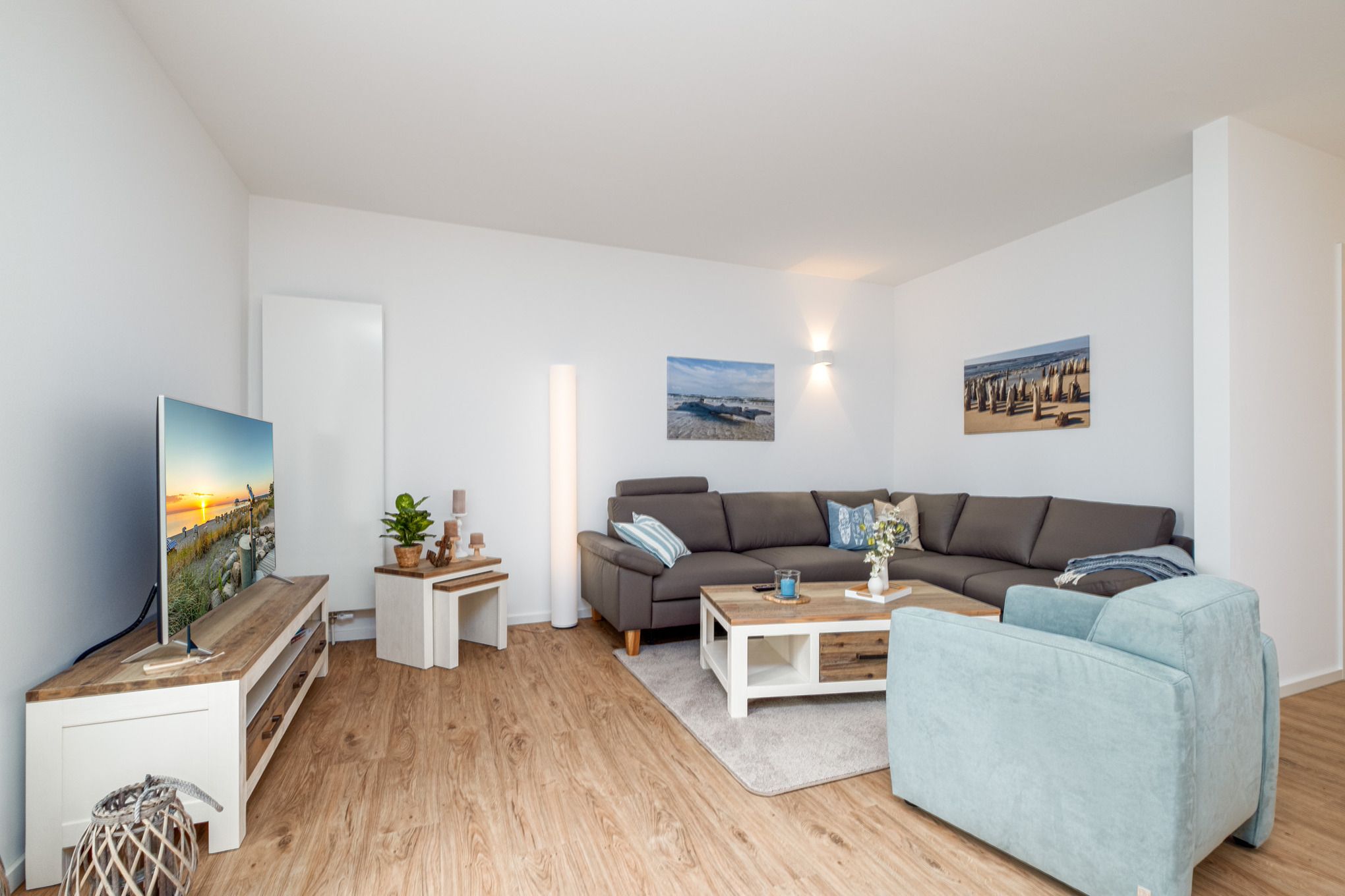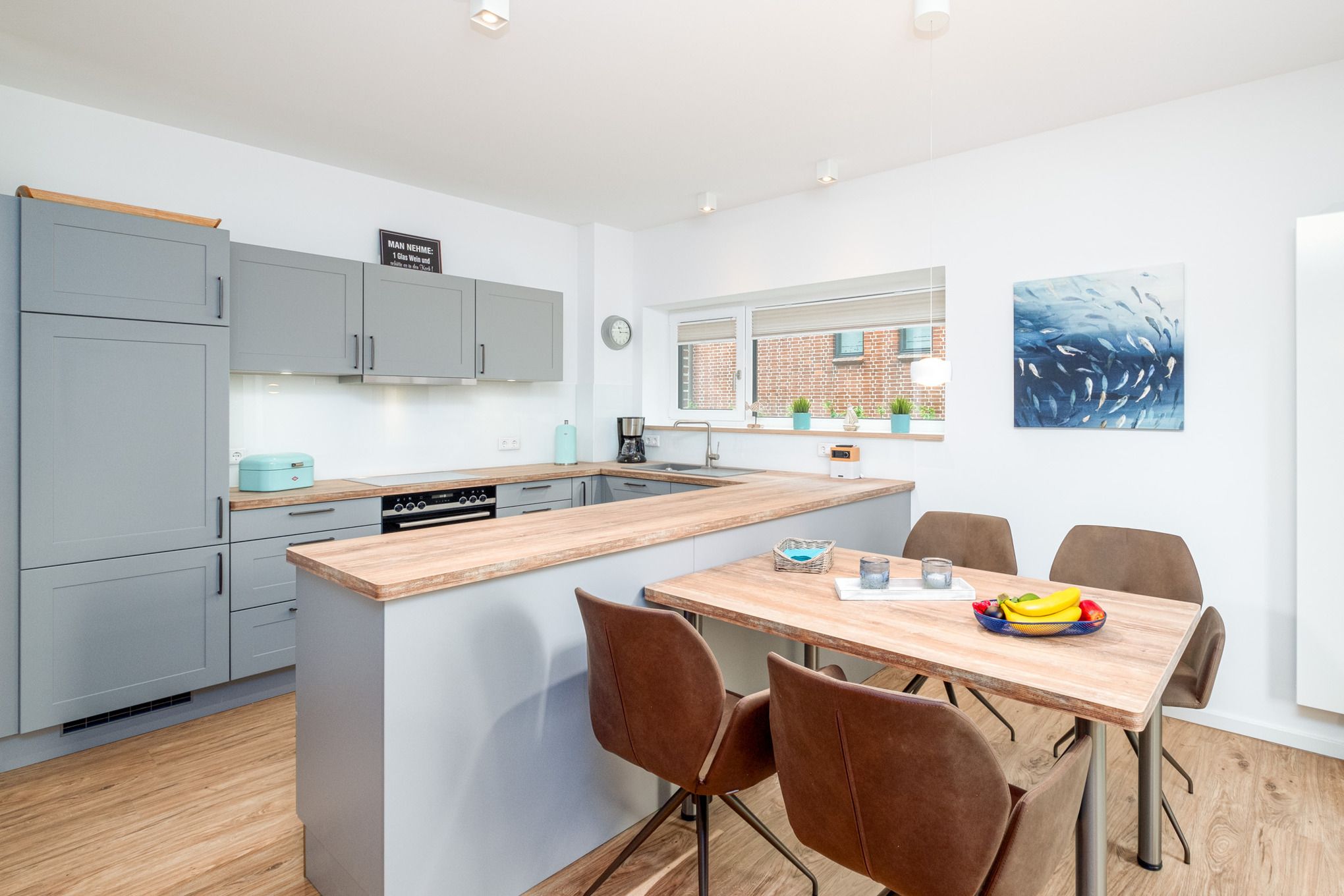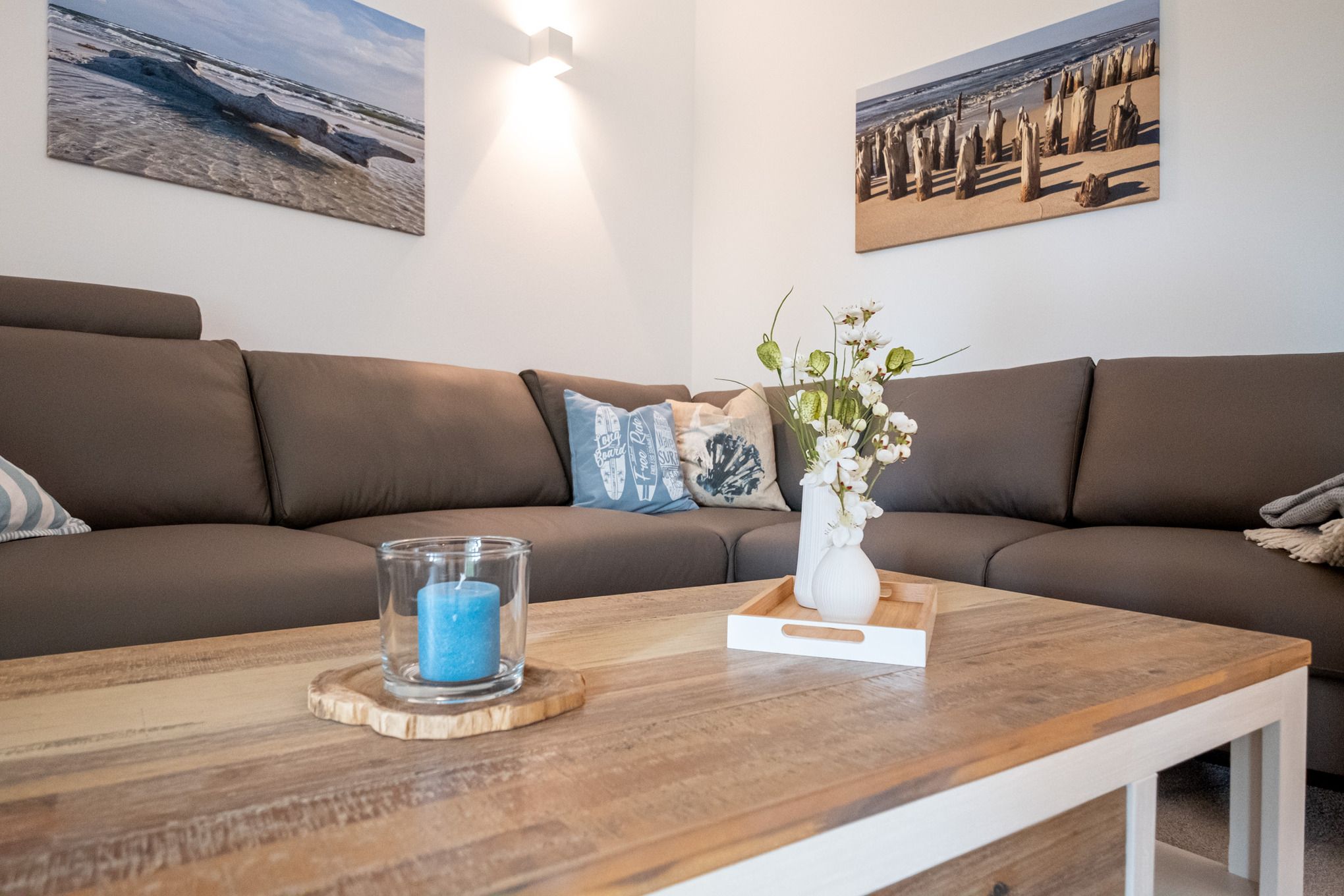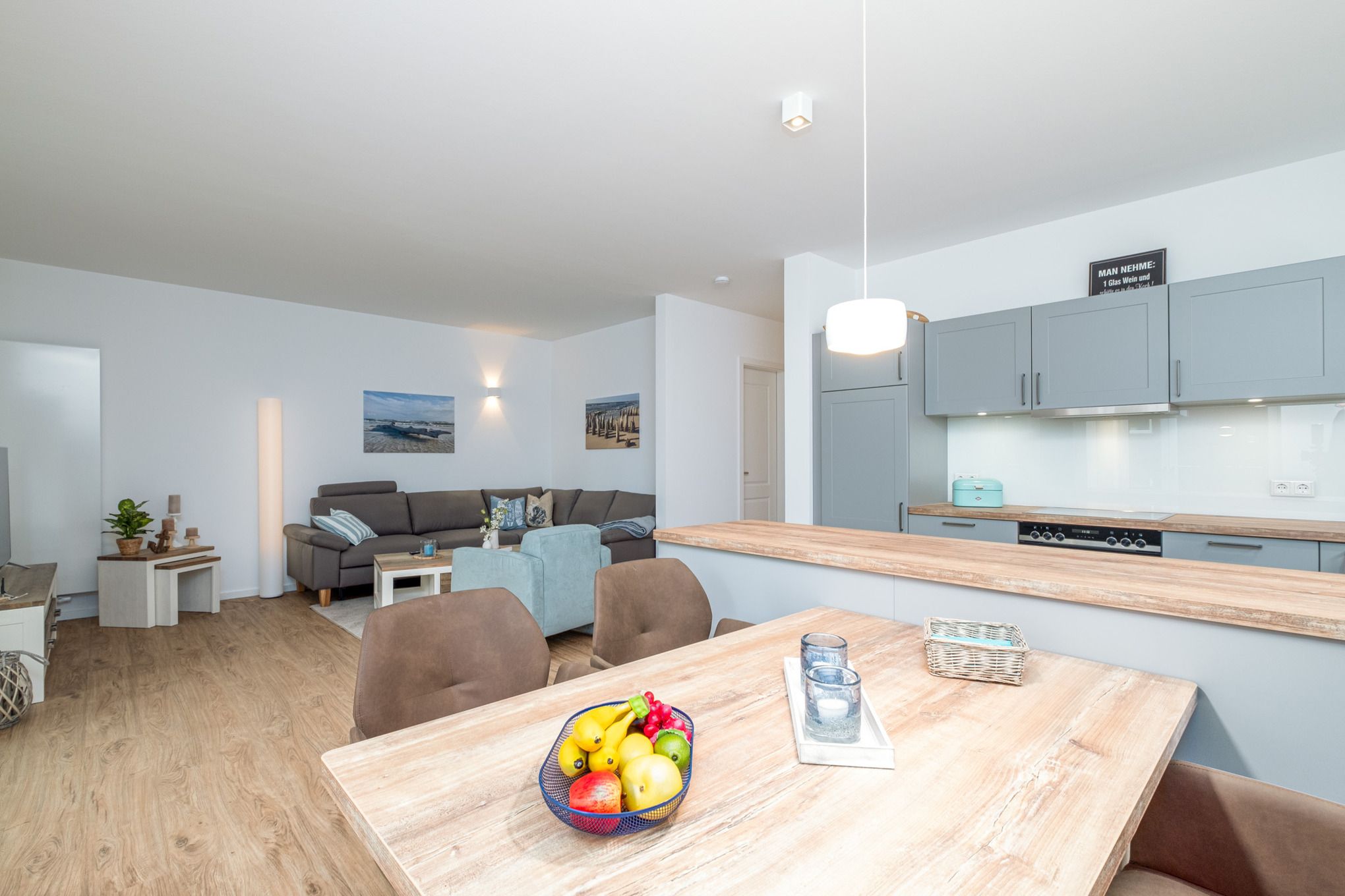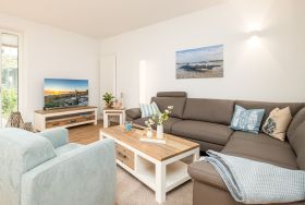 Die Ferienunterkunft verfügt über einen offen gestalteten Wohn-Essbereich mit angrenzender, offener Küche. Das direkt angrenzende und ebenfalls offene Wohnzimmer ist mit einer hochwertigen Couchgarnitur sowie Sitzgruppe ausgestattet und verfügt zudem über einen Flatscreen-TV mit Smartfunktion. Darüber hinaus steht Ihnen eine Musikanlage für CD, Internetradio, Streamingdienste und Bluetooth zur Verfügung. Des Weiteren wird Ihnen das Sky-Komplett-Paket kostenfrei zur Verfügung gestellt mit dem Sie u.a. Bundesliga schauen können.