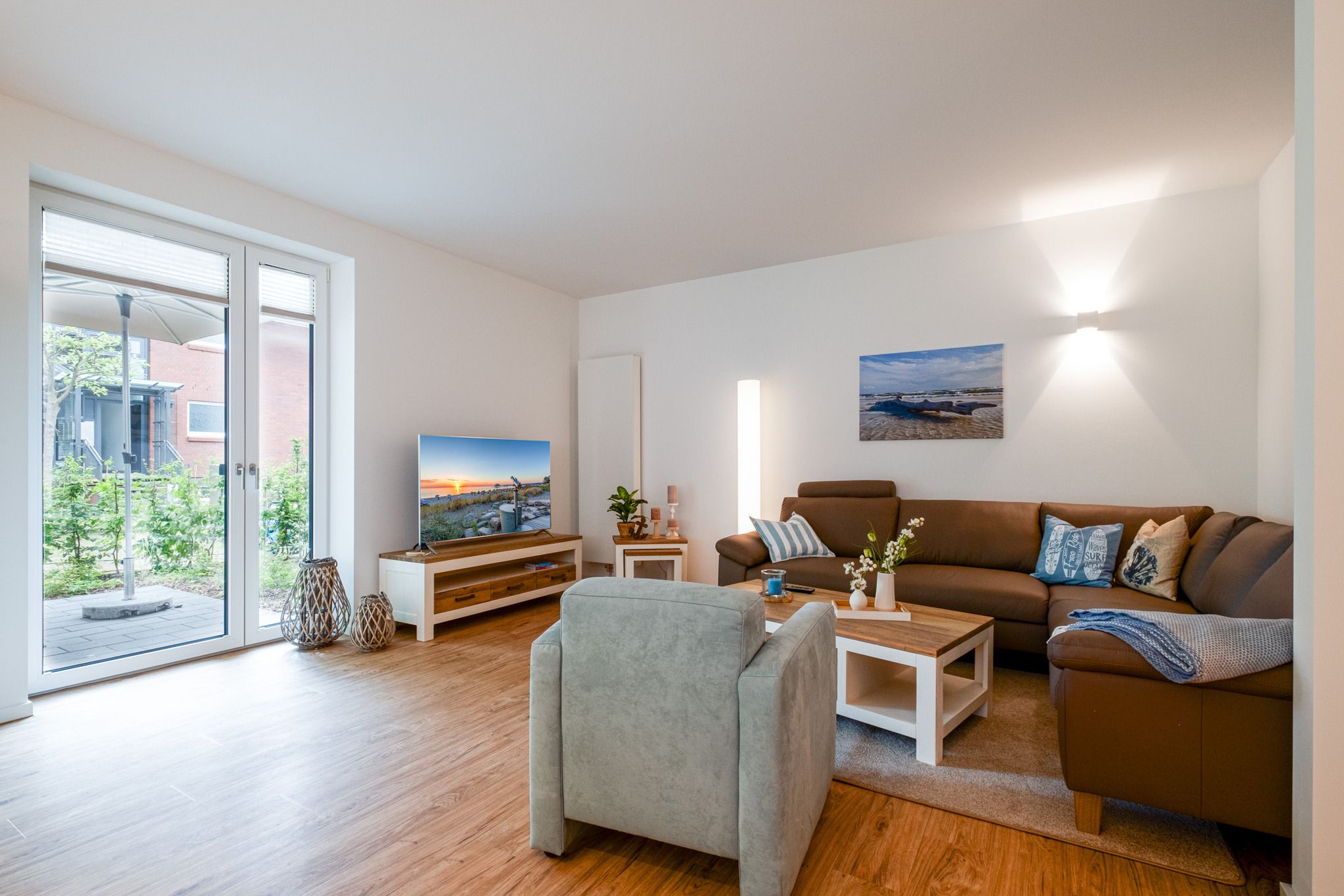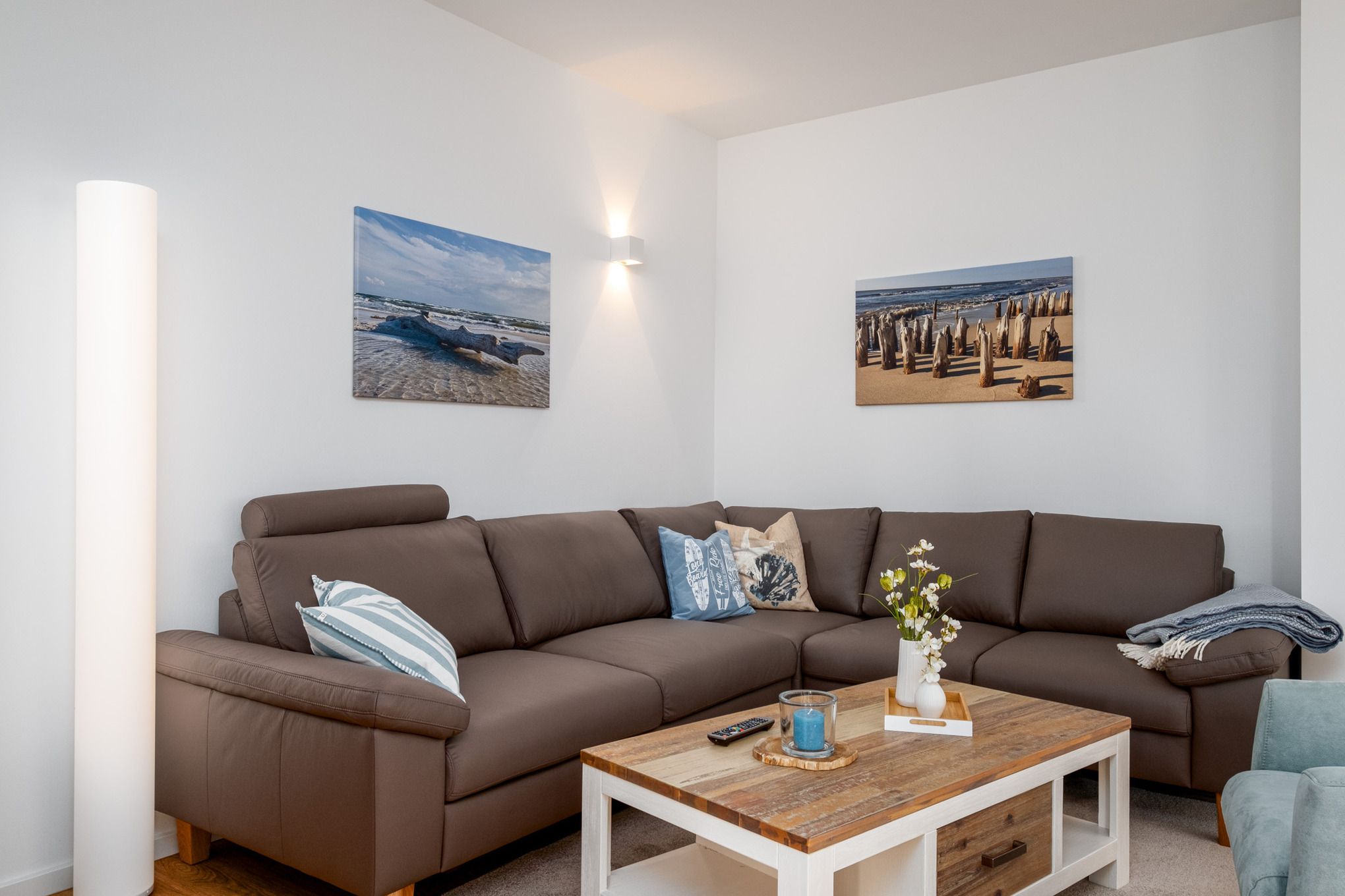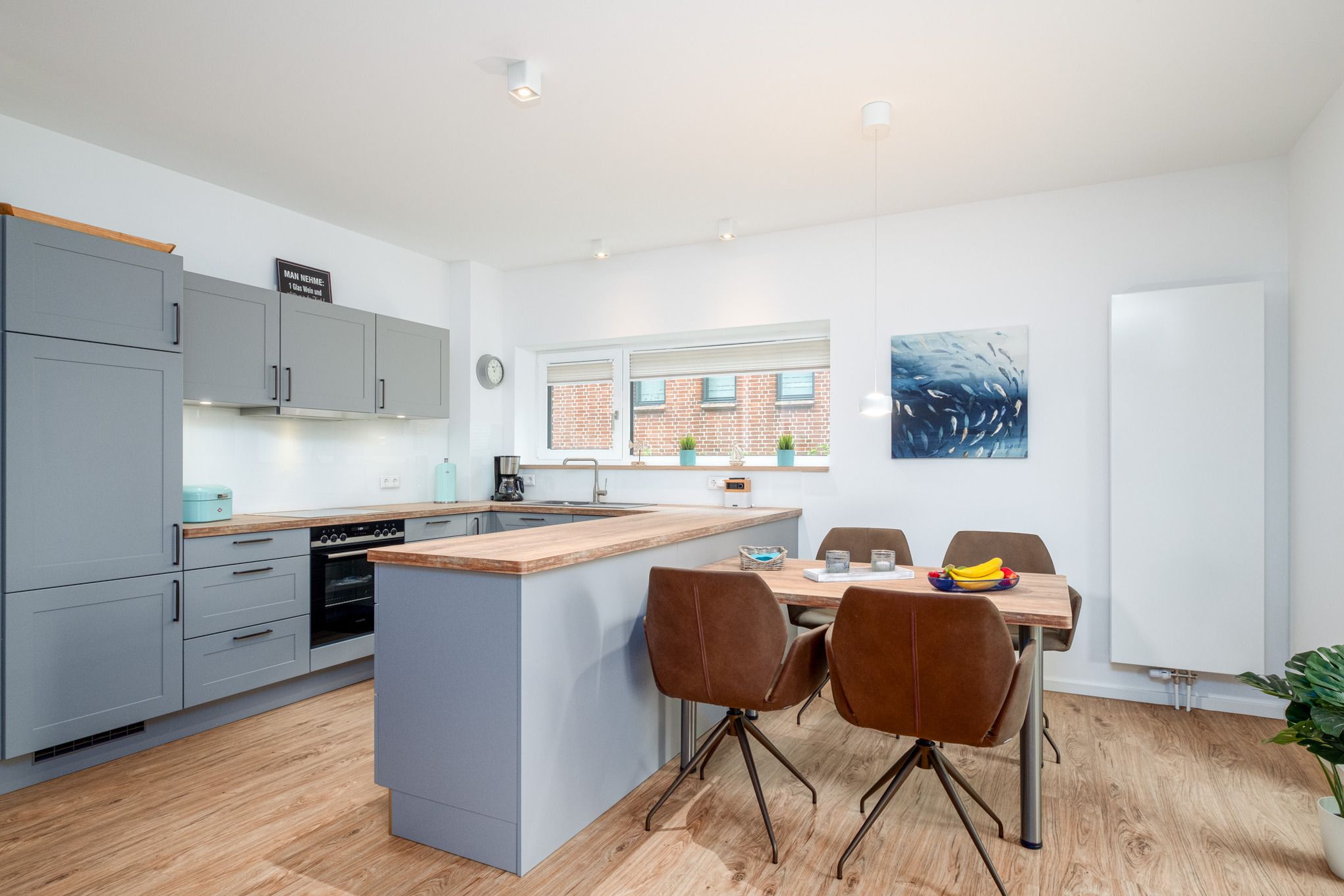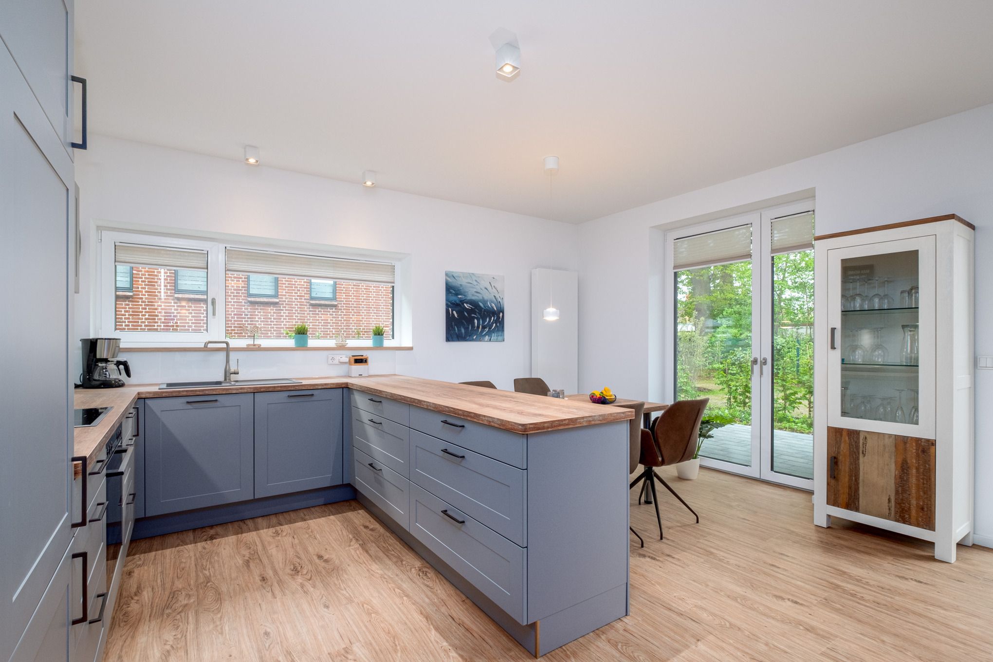 Die Ferienunterkunft verfügt über einen offen gestalteten Wohn-Essbereich mit angrenzender, offener Küche. Das direkt angrenzende und ebenfalls offene Wohnzimmer ist mit einer hochwertigen Couchgarnitur sowie Sitzgruppe ausgestattet und verfügt zudem über einen Flatscreen-TV mit Smartfunktion. Darüber hinaus steht Ihnen eine Musikanlage für CD, Internetradio, Streamingdienste und Bluetooth zur Verfügung. Des Weiteren wird Ihnen das Sky-Komplett-Paket kostenfrei zur Verfügung gestellt mit dem Sie u.a. Bundesliga schauen können.