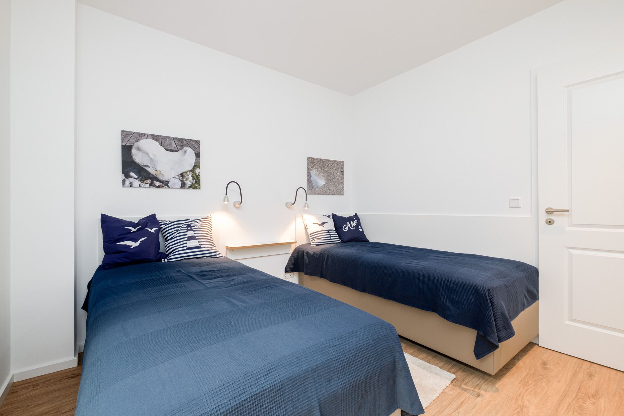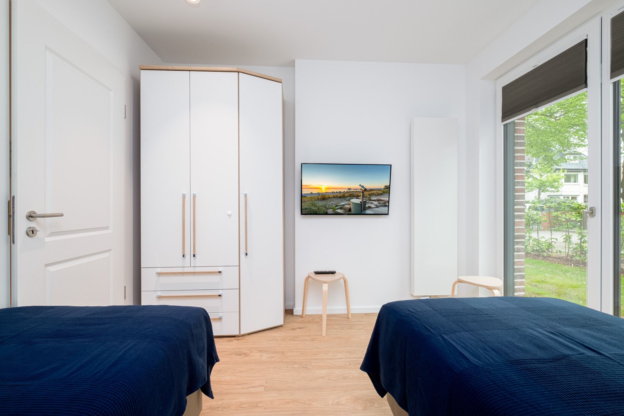 Das Schlafzimmer I bietet Ihnen mit einem hochwertigen Boxspringbett (180x200cm) sowie einem zusätzlichen 2. TV mit Smartfunktion eine Ruheoase für erholsame Stunden. Im Schlafzimmer II erwarten Sie zwei komfortable Einzelbetten (je 90x200cm) sowie ein 3. TV mit Smartfunktion. In beiden Schlafräumen haben Sie die Möglichkeit Ihr Gepäck in entsprechenden Kleiderschränken zu verstauen.