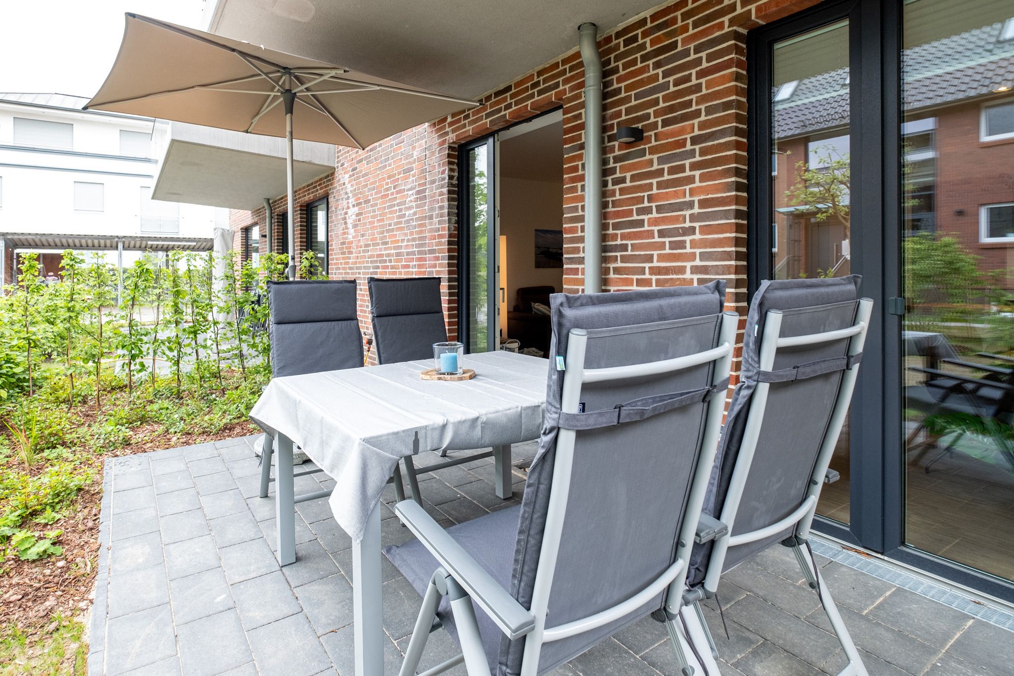Abgerundet wird diese Ferienunterkunft durch eine Terrasse in Süd-Ausrichtung - hier lässt sich die Mittagssonne super genießen.