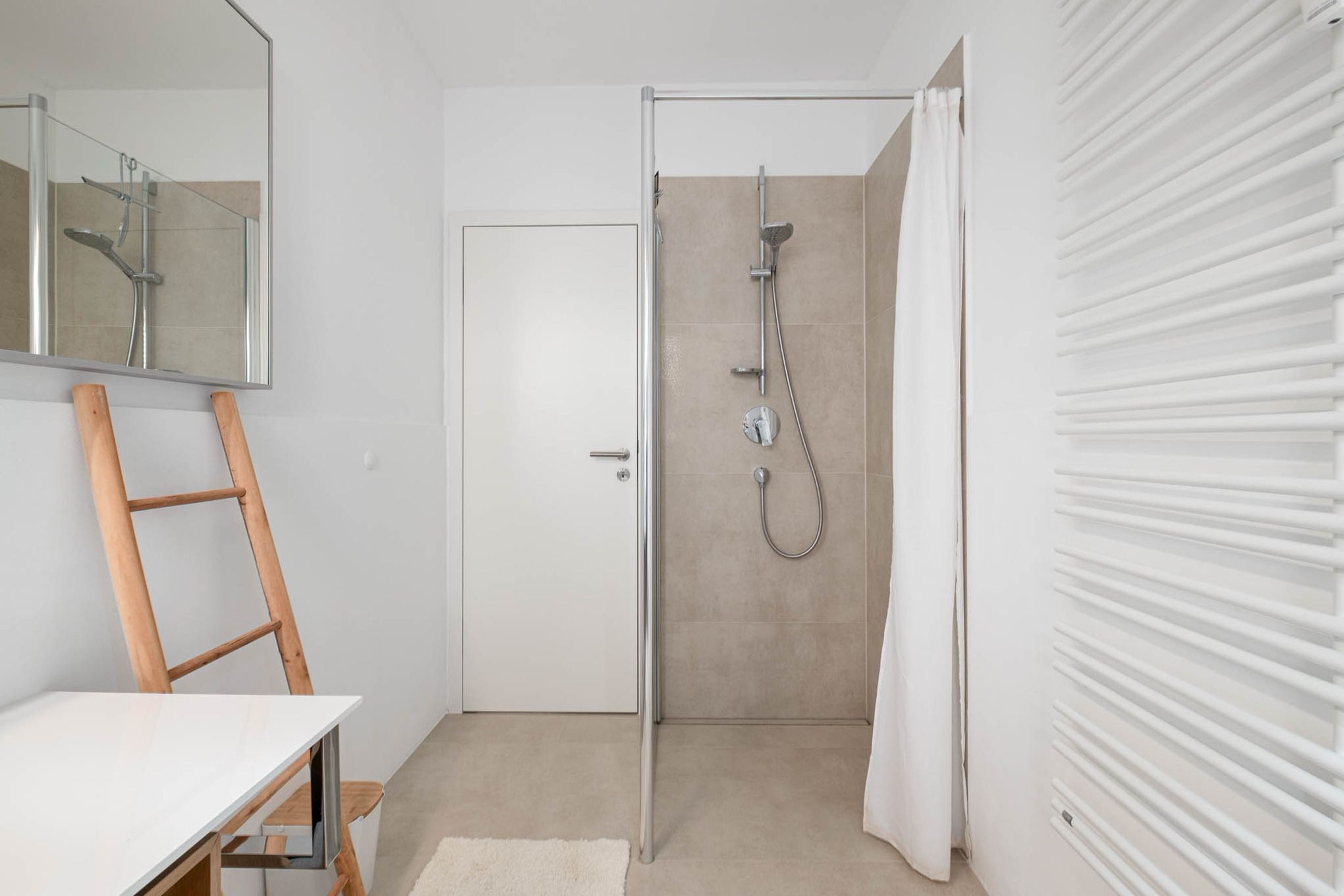 Ein Bad mit ebenerdiger Dusche rundet das moderne und liebevoll gestaltete Timmendorfer Strand Appartement ab.