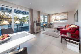 In dem Penthouse The View erwartet Sie ein hochwertiges Penthouse auf etwa 100qm mit 2 separaten Schlafzimmern für maximal 4 Personen. Der Eingang der Timmendorfer Strand Ferienwohnung befindet sich in der 3. Etage und ist bequem mit einem Fahrstuhl zu erreichen.