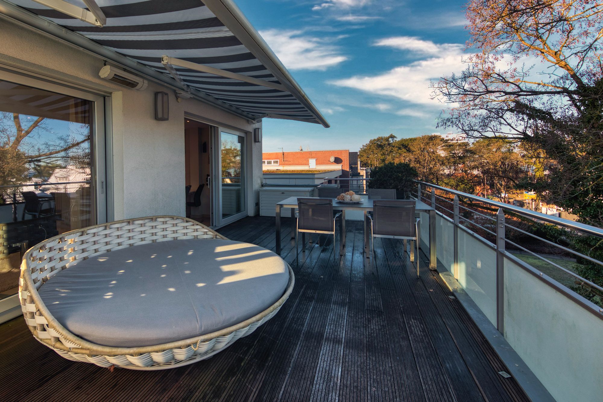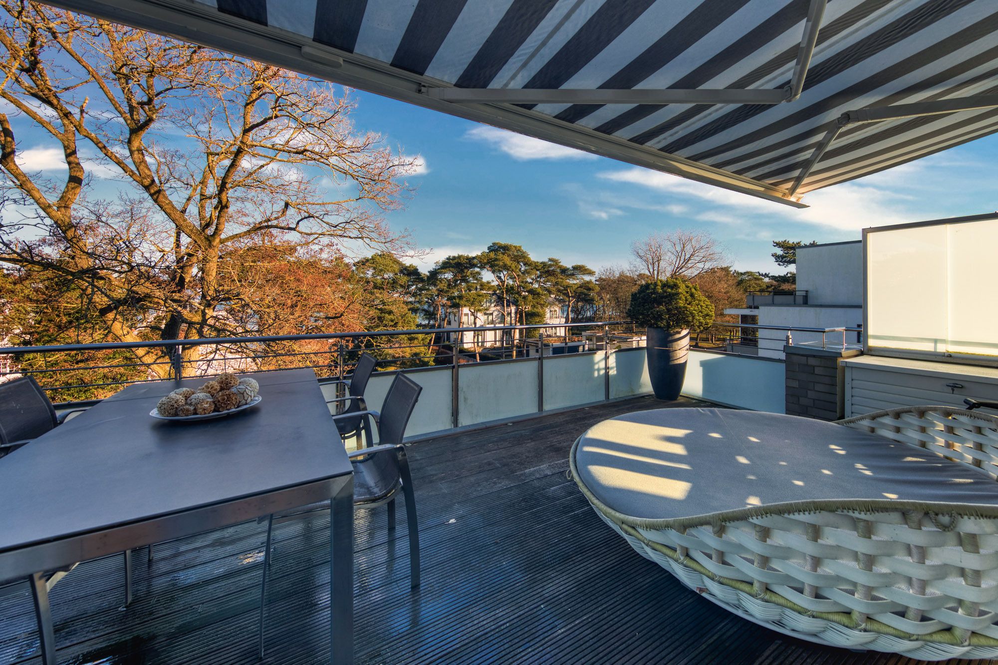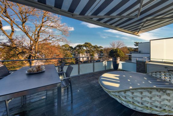 Die circa 28qm große Dachterrasse mit Markise in Nord-Ostlage und einer Lounge-Liegefläche runden dieses traumhafte Urlaubsdomizil im Herzen von Timmendorfer Strand ab.