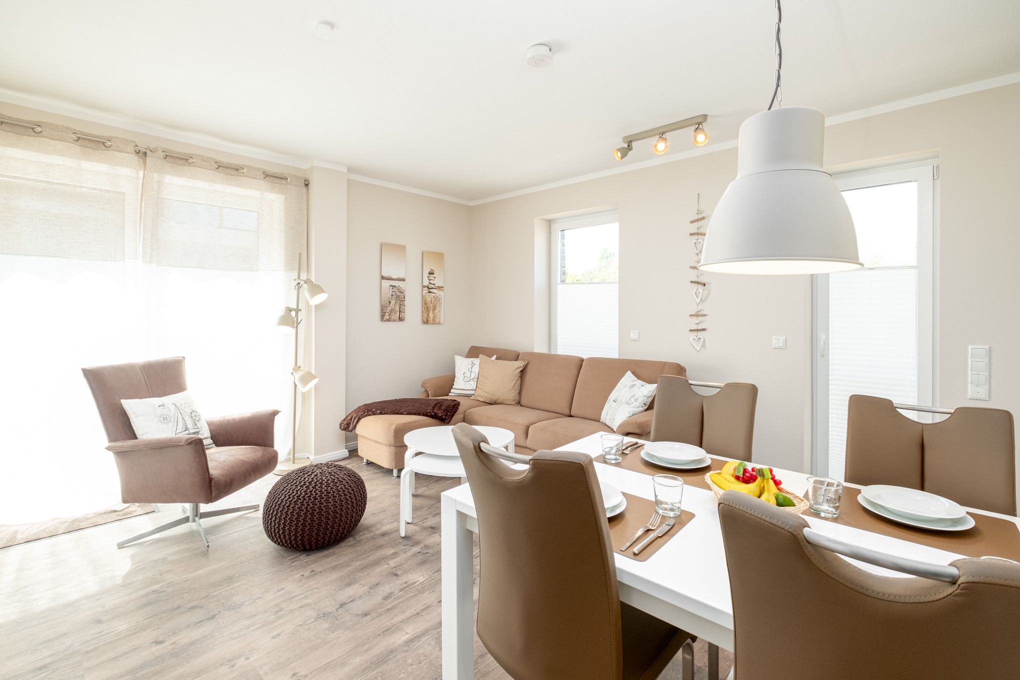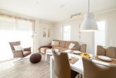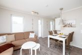 Das Herzstück des geschmackvoll und hochwertig eingerichteten Hauses bietet das moderne Wohnzimmer mit Couchgarnitur, Internetradio, Flatscreen-TV und Essbereich.