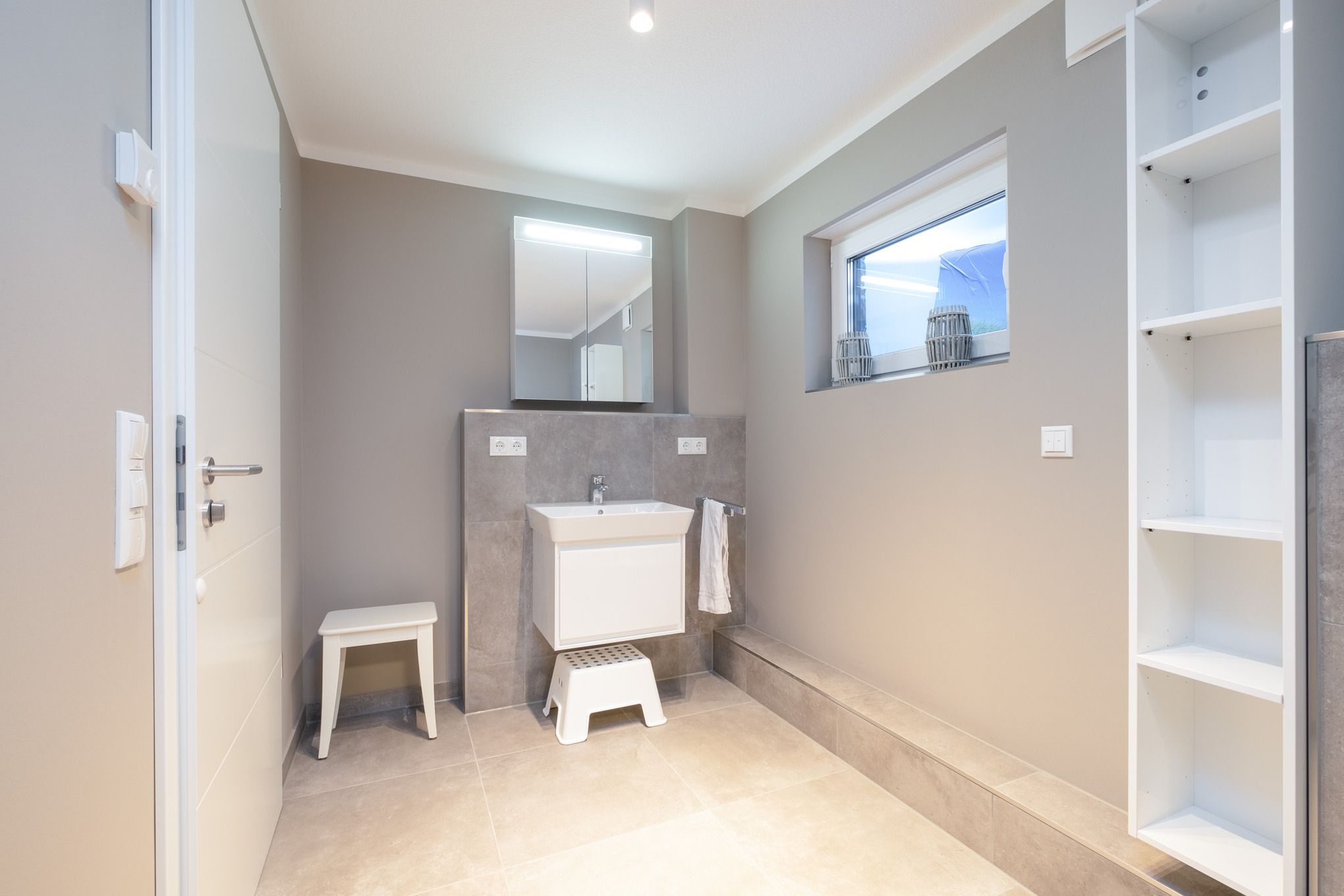 Zudem steht Ihnen im Untergeschoss des Appartements ein zweites Badezimmer ebenfalls mit WC und Dusche zur Verfügung.
