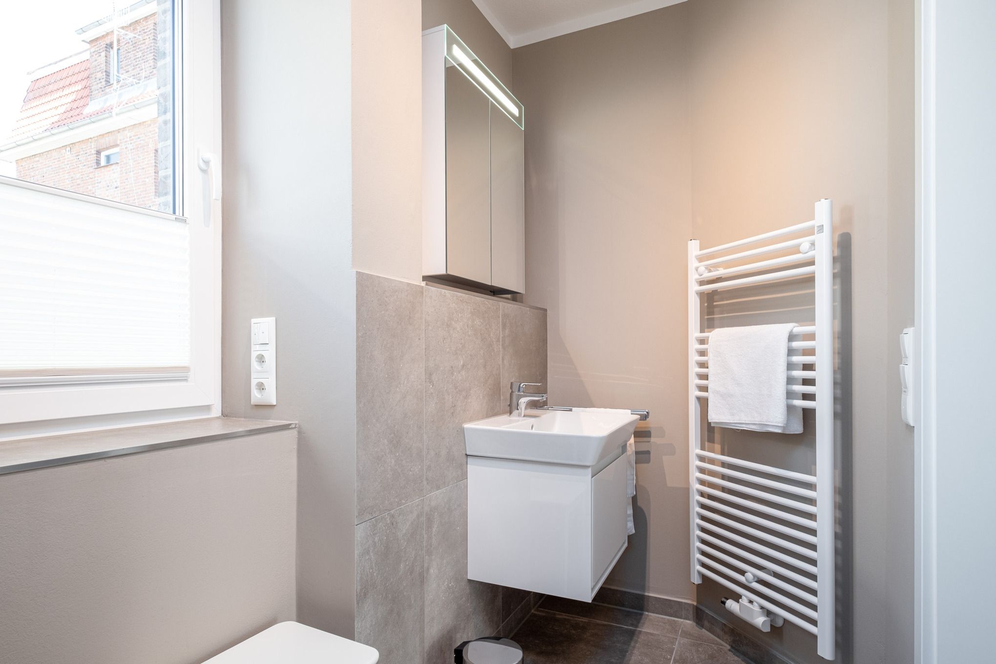 Darüber hinaus wird das Erdgeschoss der Niendorf Ferienwohnung durch ein Bad mit Dusche/WC abgerundet.