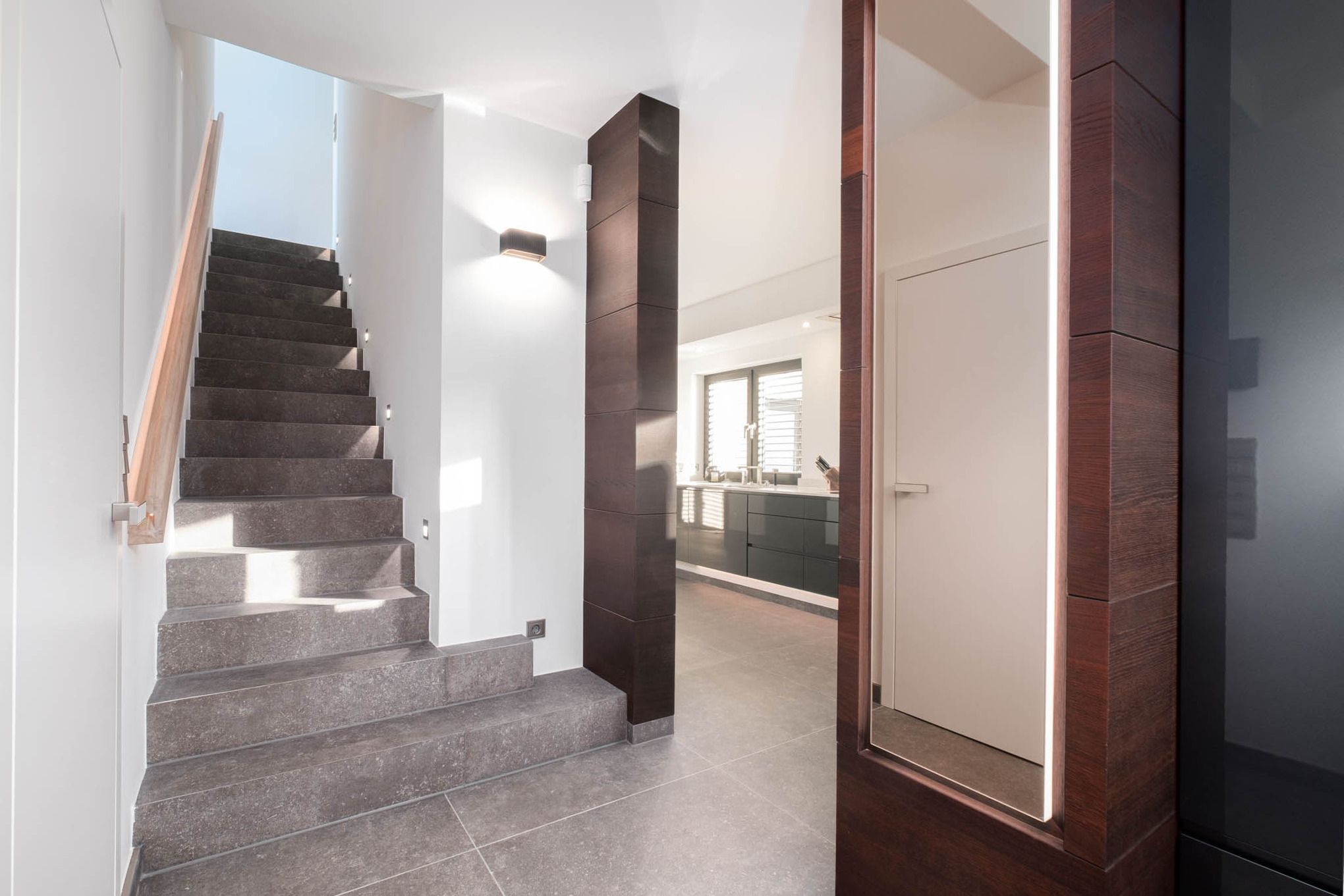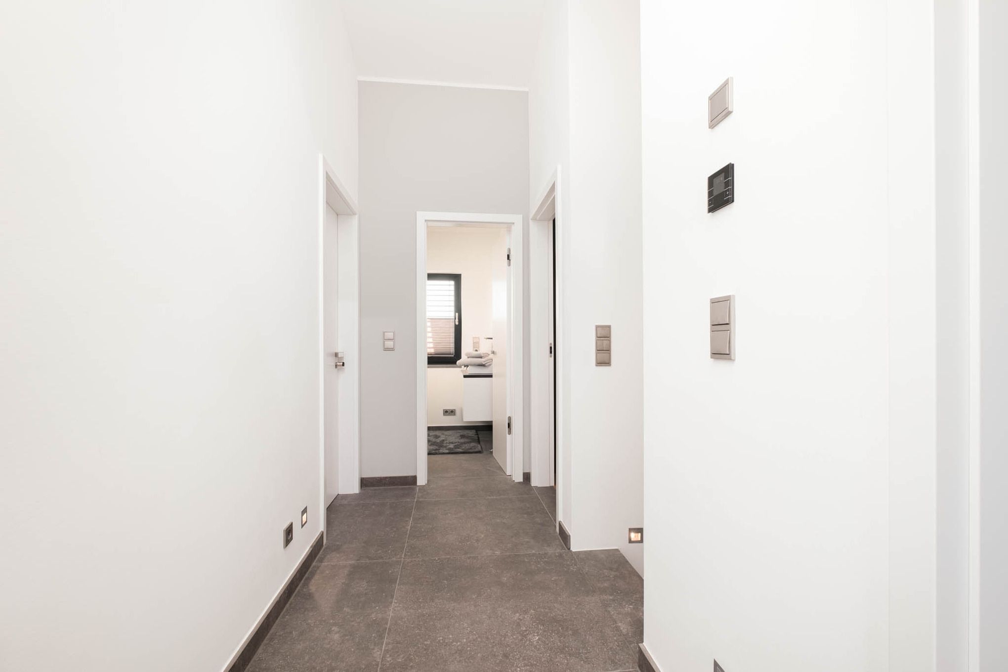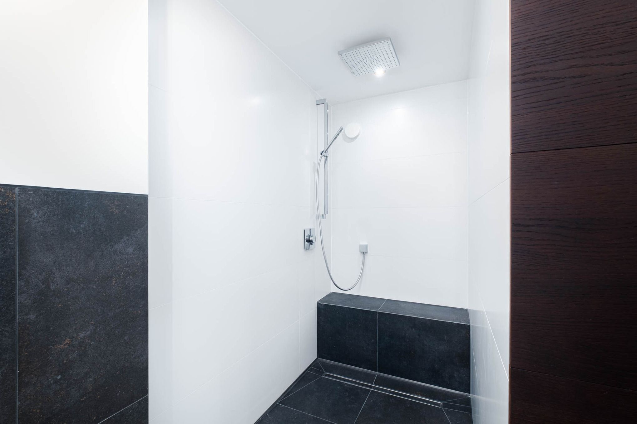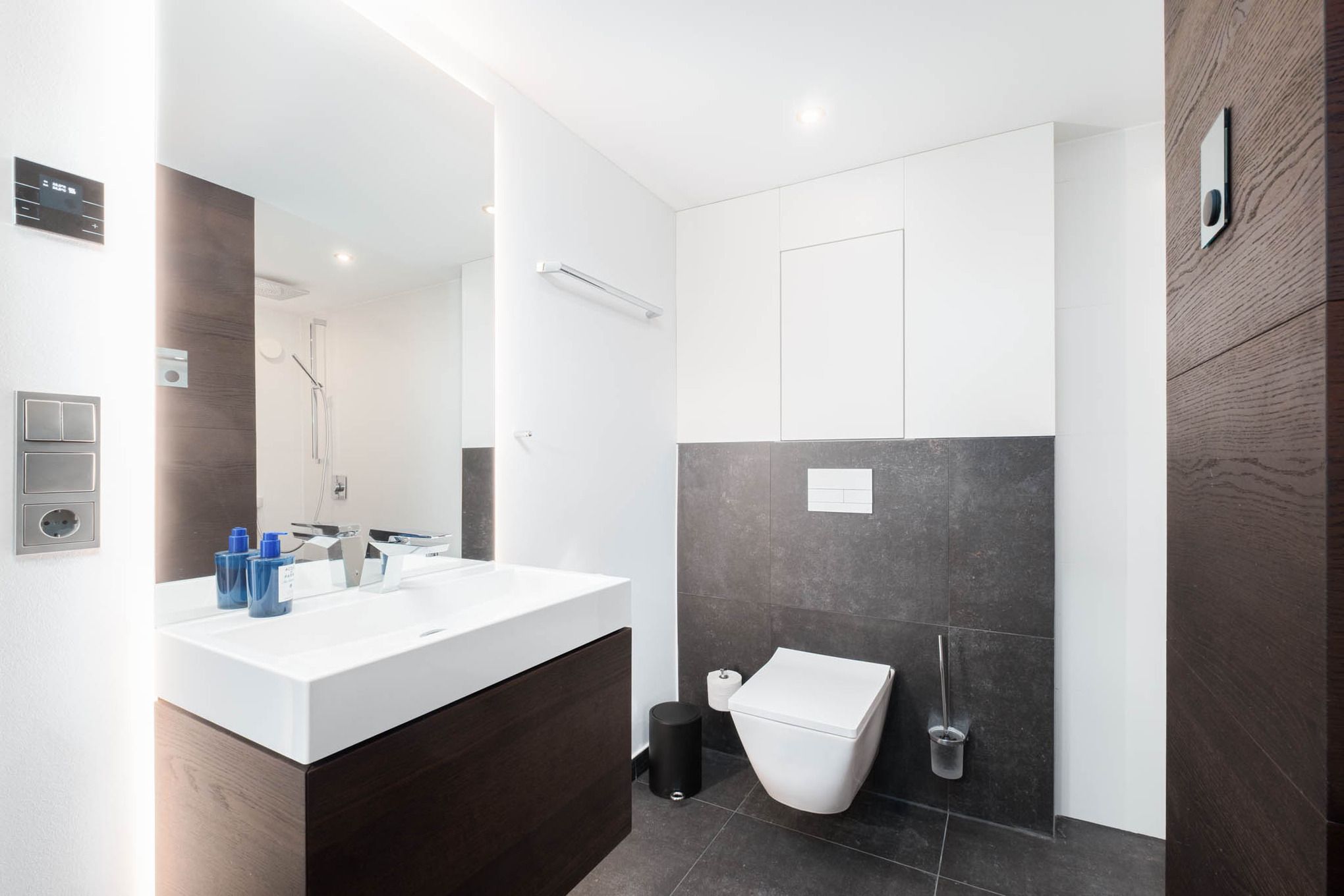 Zusätzlich laden ein direkt vom Wohnbereich zugängliches Bad mit Dusche sowie ein weiteres, drittes modernes Badezimmer mit Dusche im Obergeschoss zum Relaxen und zu Wellness-Momenten ein.