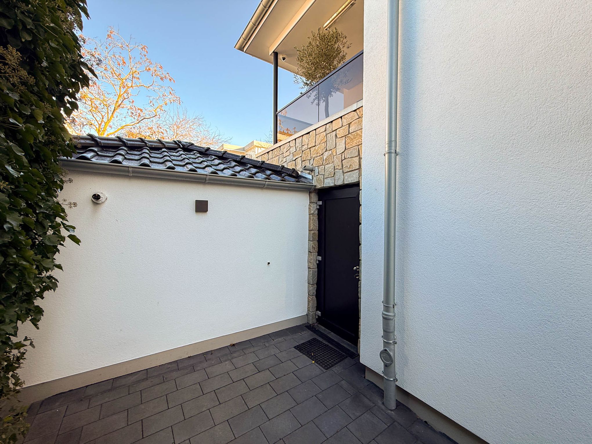 Der Außenbereich begeistert mit einer überdachten Terrasse, komfortabel möbliert und mit Heizstrahlern ausgestattet – perfekt für lange Abende zu jeder Jahreszeit. Der eingezäunte Garten bietet viel Raum zum Entspannen und ist ideal für vierbeinige Gäste.