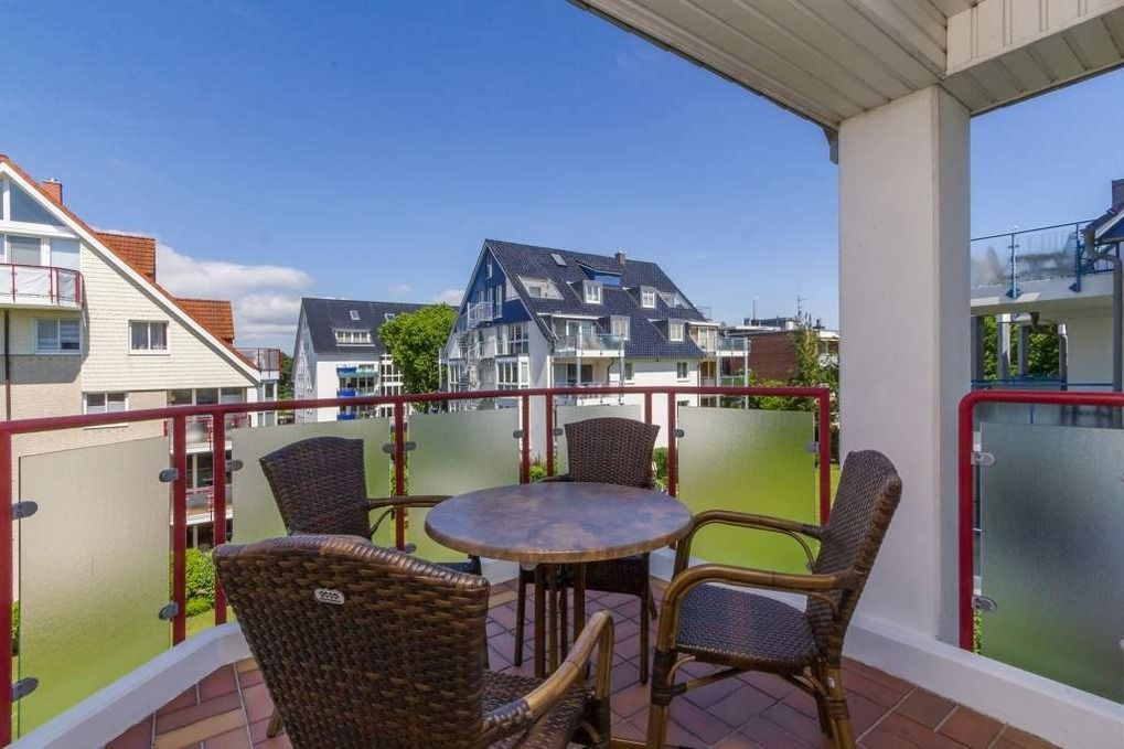 Der möblierte Balkon in West-Lage mit Blick in den Innenhof rundet diese wunderschöne Scharbeutz Ferienwohnung ab. Hier können Sie nach einem ereignisreichen Strandtag die Abendsonne genießen und den Tag gemütlich ausklingen lassen.
