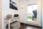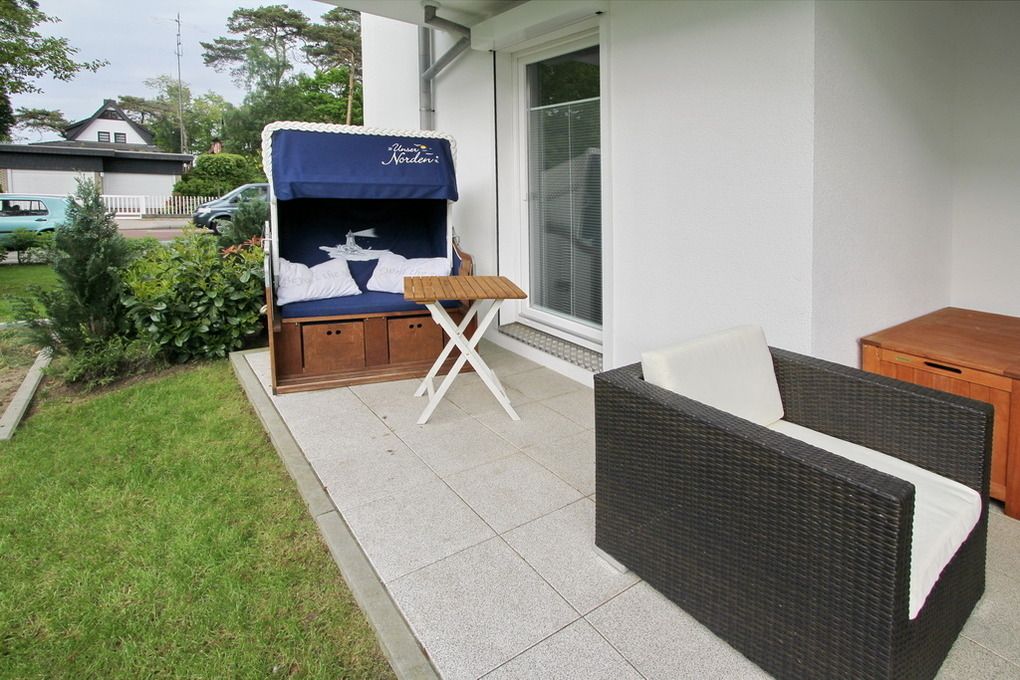 Das Schlafzimmer ist mit einem Boxspringbett (180x200cm), einem zusätzlichen Flatscreen-TV sowie einem Kleiderschrank eingerichtet. Um Ihnen einen erholsamen Schlaf zu garantieren, lassen sich die Schlafräume der Ferienwohnung verdunkeln. Das Badezimmer ist mit einer großen Dusche und Waschtisch ausgestattet. Die möblierte Terrasse in Nord-Lage mit Loungebereich und Strandkorb und der angrenzende Garten runden dieses traumhafte Urlaubsdomizil im Herzen von Timmendorfer Strand ab.