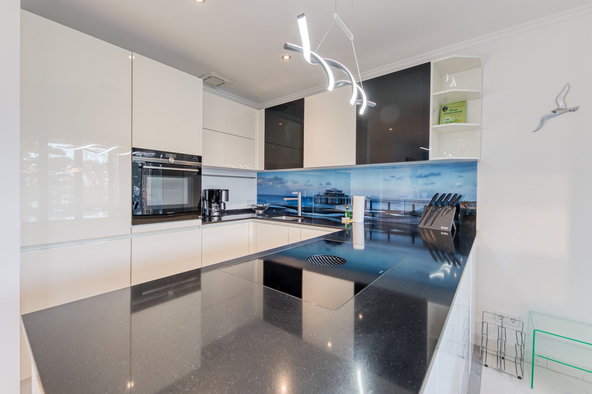 In der Timmendorfer Strand Ferienwohnung erwartet Sie ein großzügig geschnittenes 2-Zimmer-Appartement in der 3. Etage für bis zu 4 Personen. Das große Wohnzimmer verfügt über eine Leder-Couchgarnitur, eine Doppelbett-Schlafcouch, Flatscreen-TV, Stereoanlage, gemütliche Essecke, sowie eine separate Einbauküche, die mit Induktionskochfeld und Geschirrspüler eingerichtet ist. Zustätzlich steht Ihnen eine Senseo Kaffeemaschine zur Verfügung.