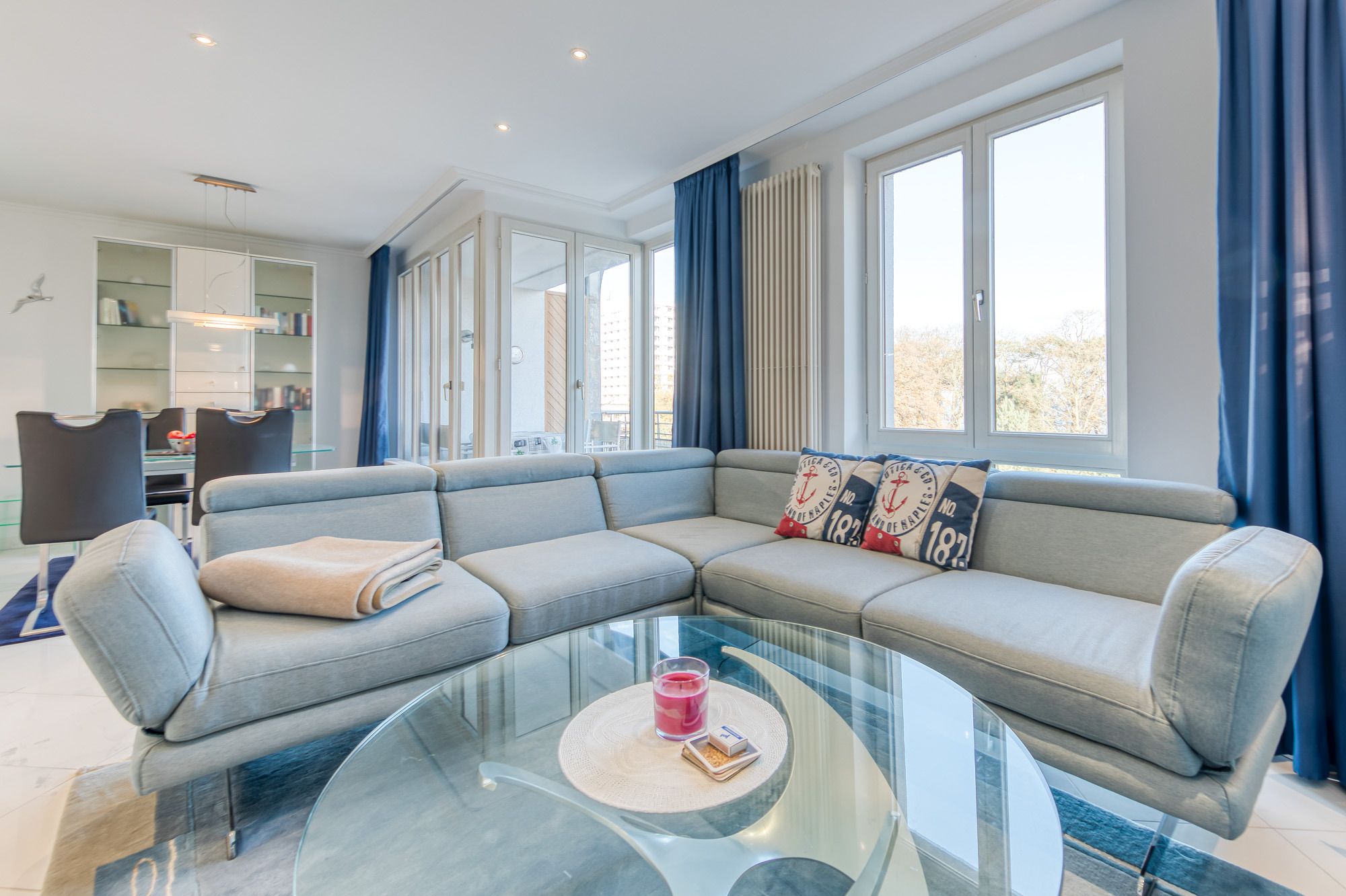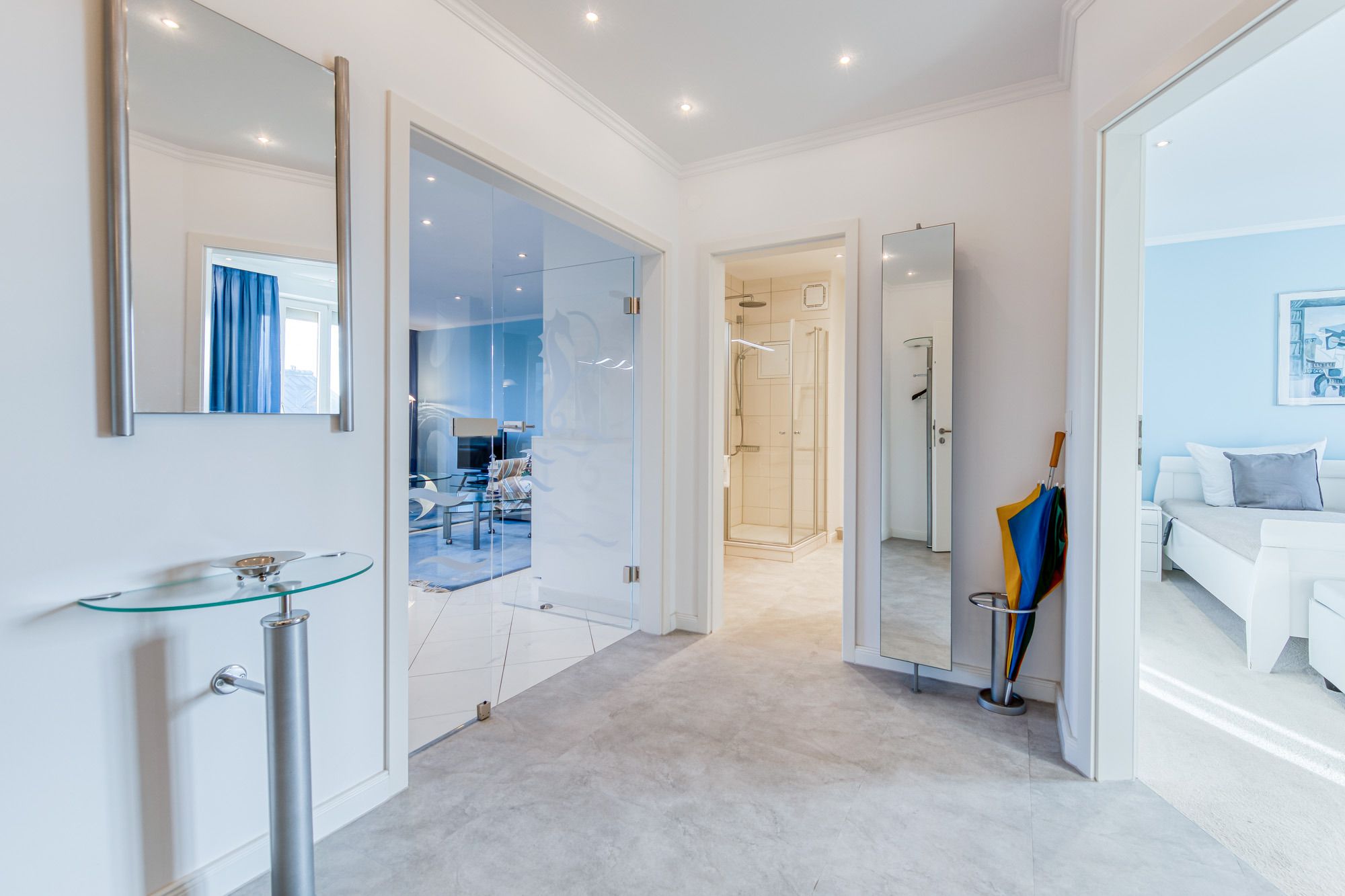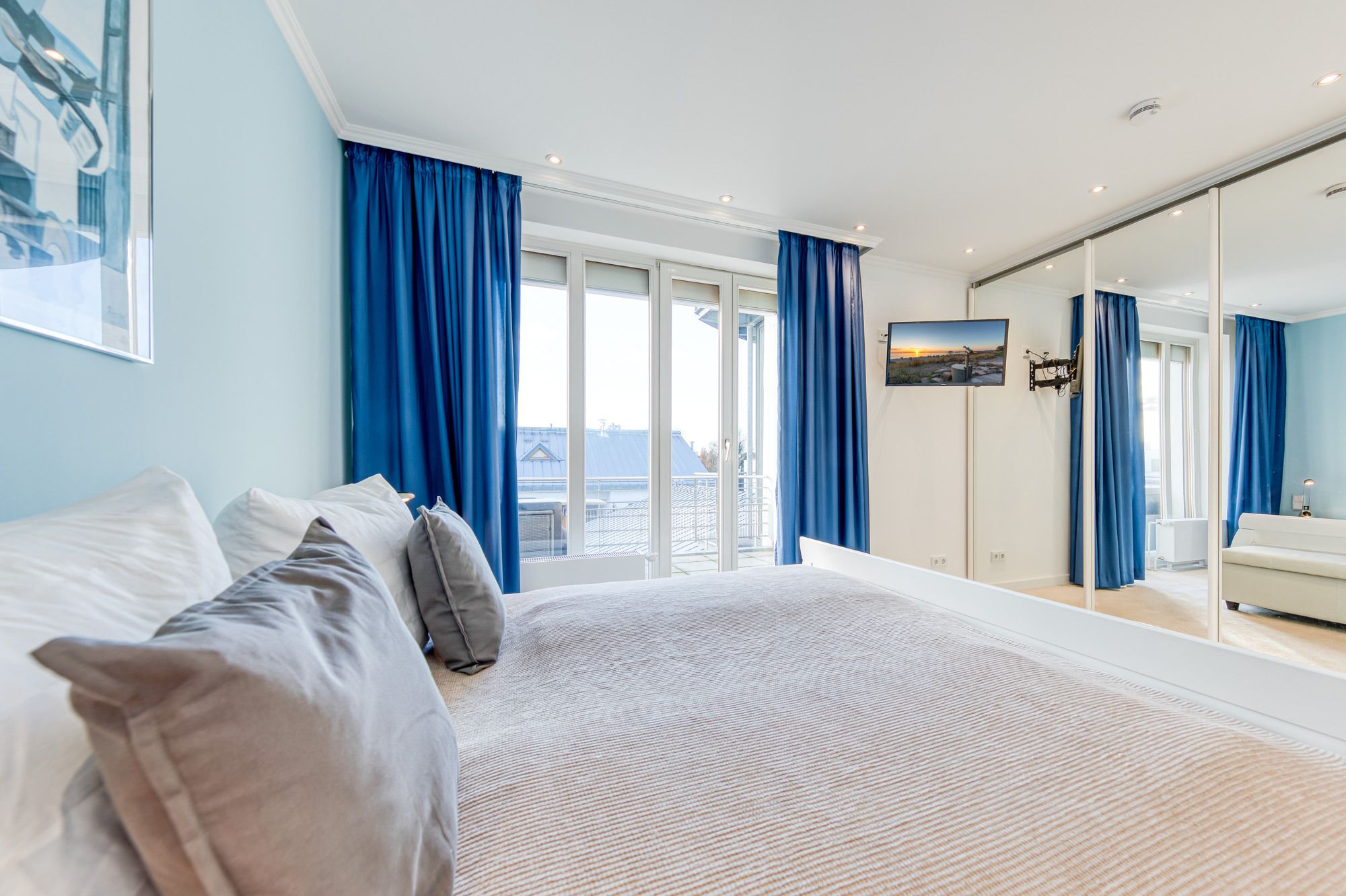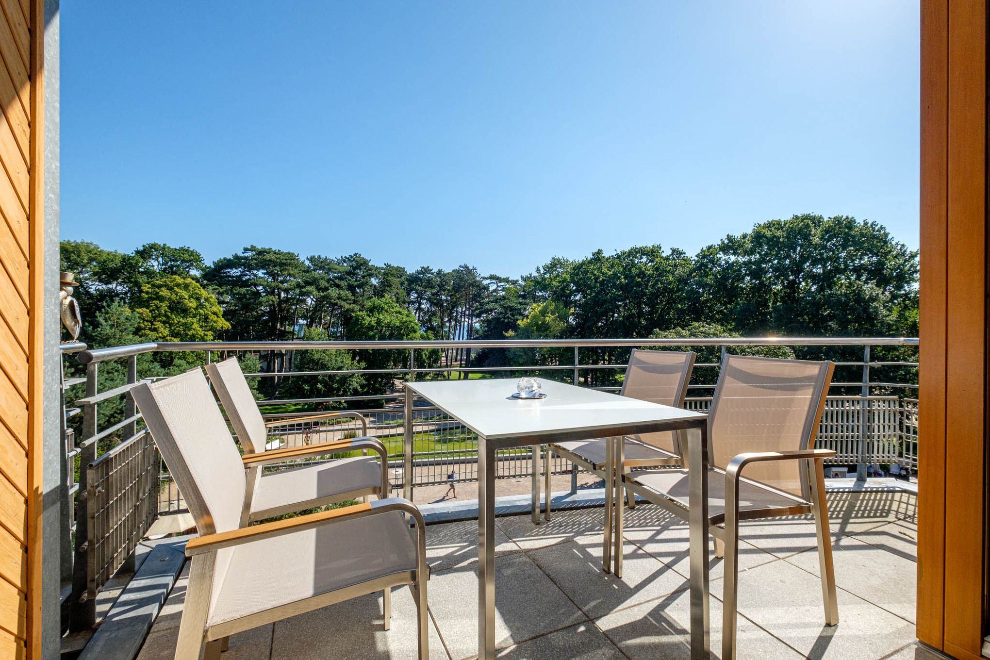 Die Ferienwohnung Timmendorfer Strand verfügt über zwei Balkone, ein Balkon geht vom Wohnzimmer ab, dieser ist nach Osten ausgerichtet und verfügt teilweise über Meerblick (Jahreszeitenabhängig). Der zweite Balkon befindet sich am Schlafzimmer und ist in Richtung Atrium zur Sonnenseite (West) ausgelegt. Hier können Sie in aller Ruhe die Sonne genießen und den Tag entspannt ausklingen lassen.
