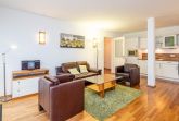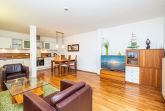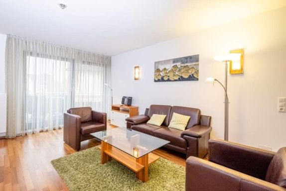 Darüber hinaus verfügt die Timmendorfer Strand Ferienwohnung über ein großzügig geschnittenes Wohnzimmer mit Leder-Couchgarnitur, Flachbild-TV, DVD-Player, Stereo-Anlage, offene Einbauküche mit Ceranfeld, Backofen, Mikrowelle und Geschirrspüler sowie eine gemütlichen Essecke.