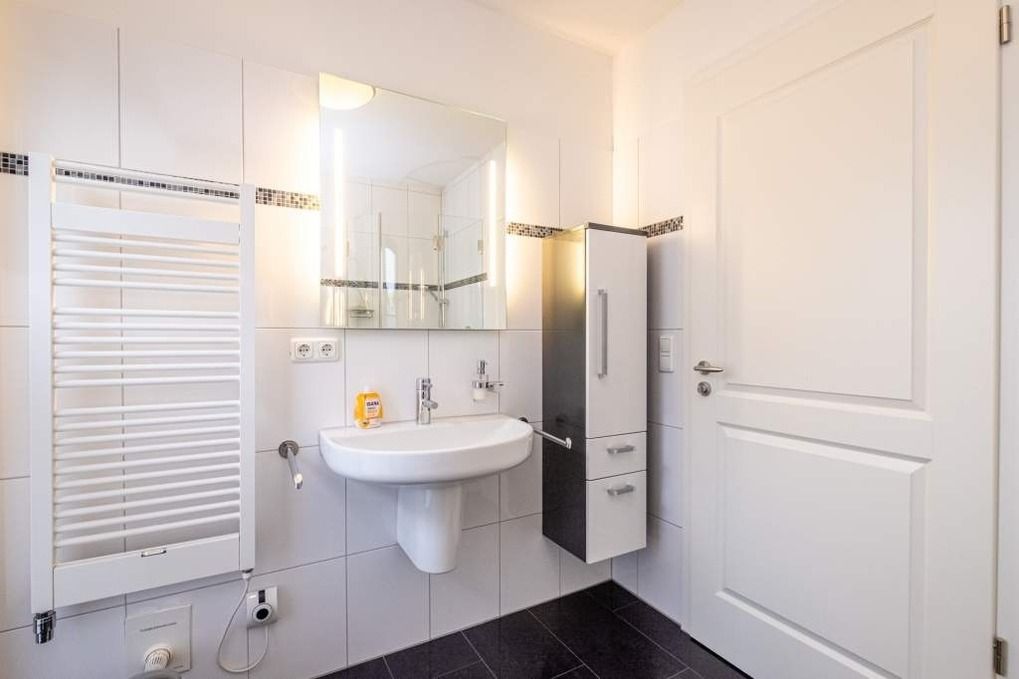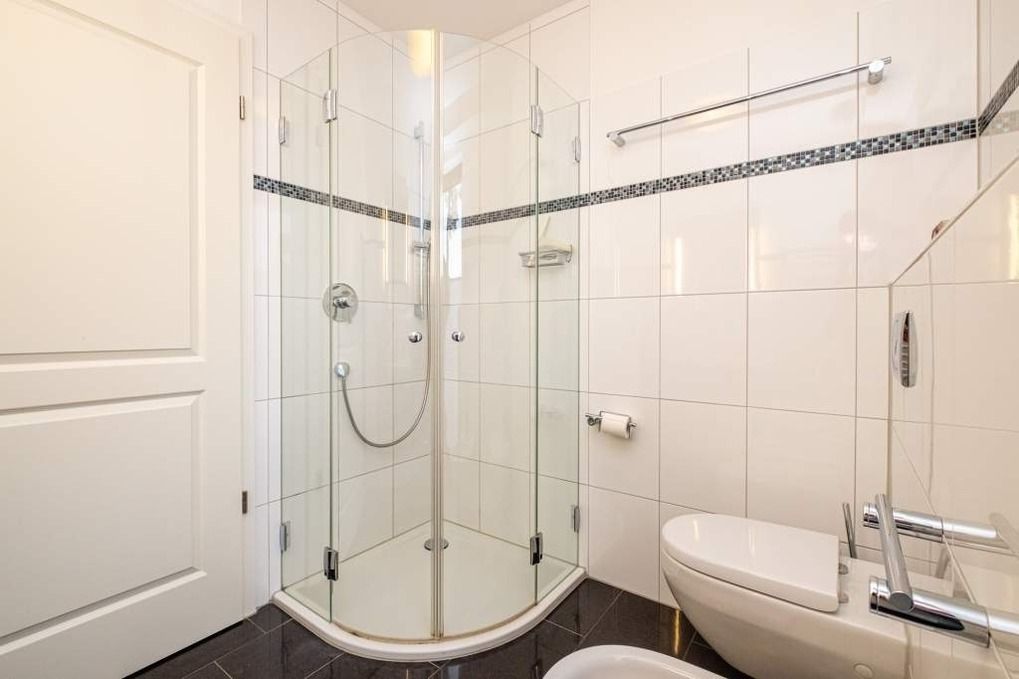 Ein großes Duschbad mit Bidet und ein separates Gäste-WC sind vorhanden.