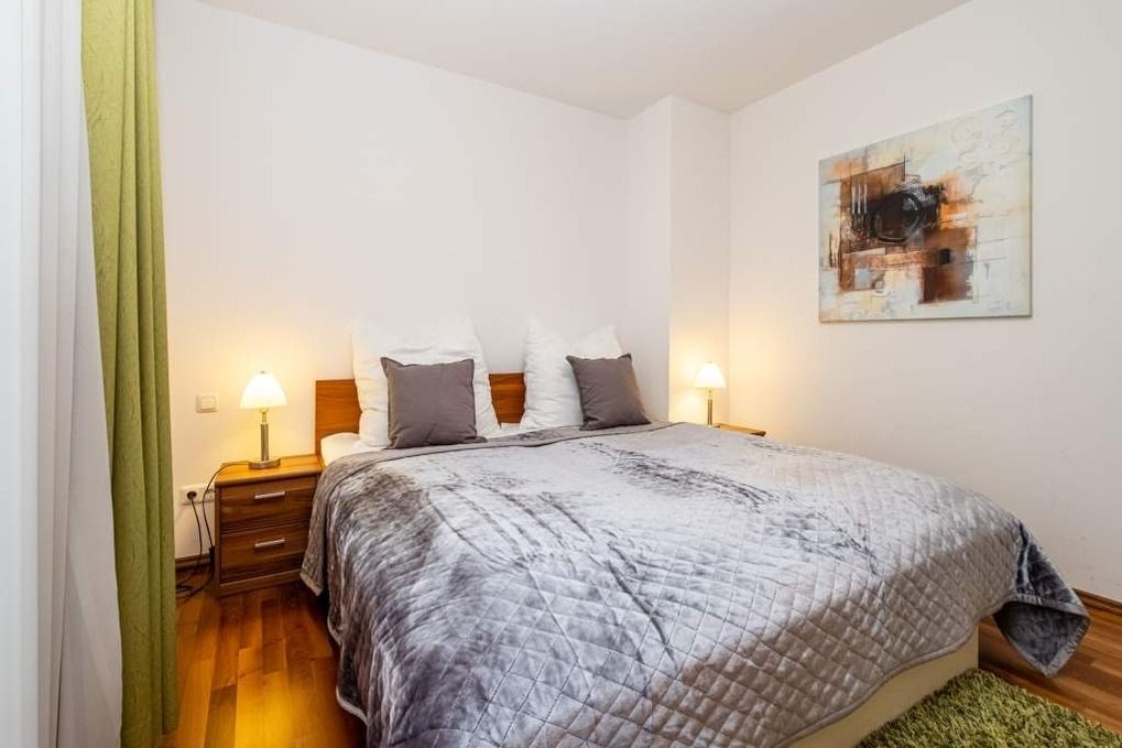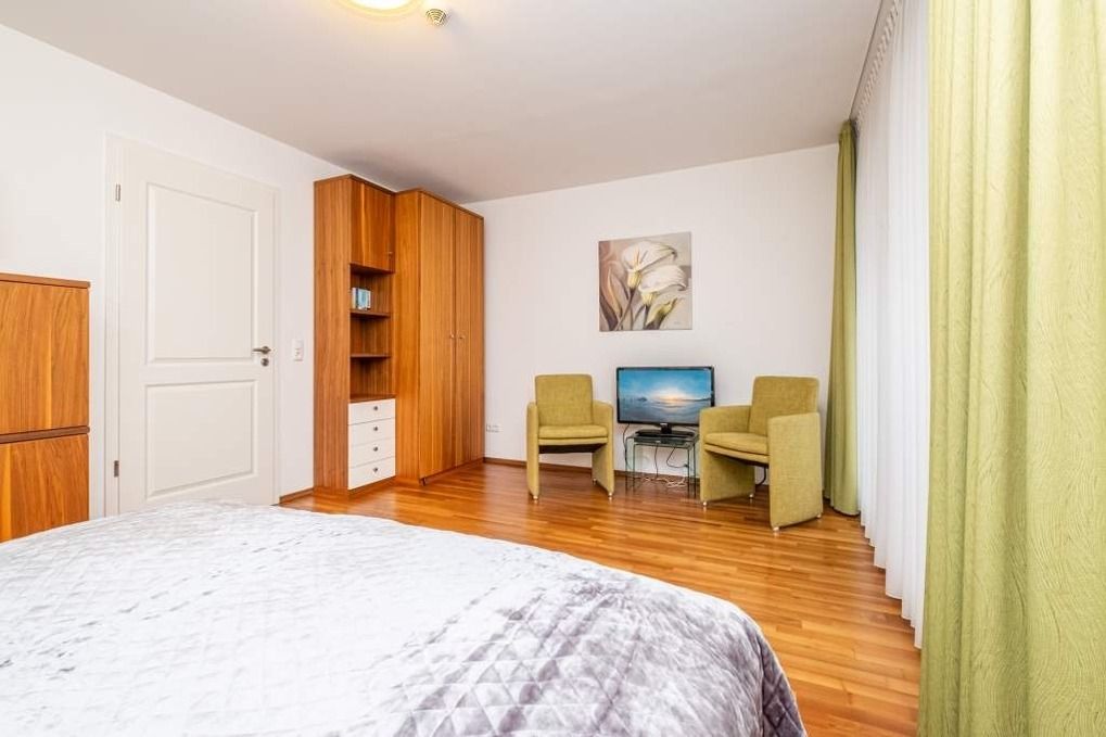 Das 3-Zimmer-Appartement Nr. 1 liegt in der 1. Etage und hat 2 separate Schlafzimmer, die jeweils mit Doppelbetten (je 180x200cm) ausgestattet sind.