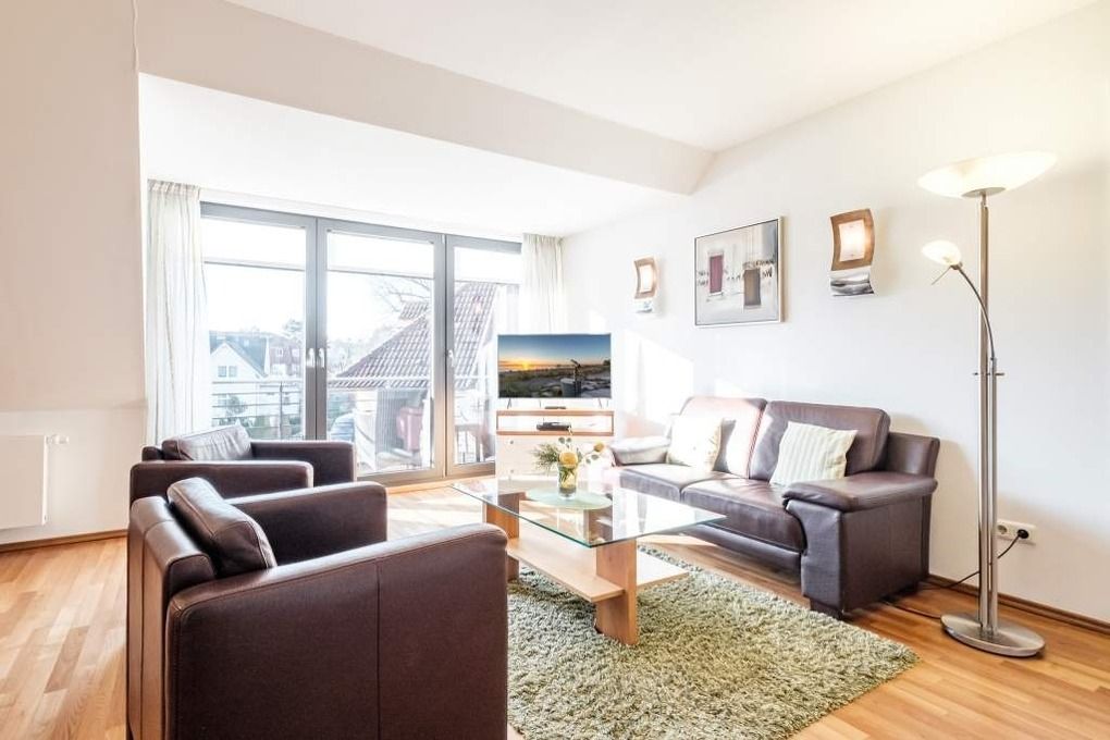 Die Timmendorfer Strand Ferienwohnung Nr. 2 im Kaufmannshof erwartet Sie in der 2. Etage. Dieses Urlaubsdomizil verfügt über 2 Zimmer und ist sehr modern ausgestattet. Das Appartement bietet ein separates Schlafzimmer mit Doppelbett (180x200cm), ein großzügig geschnittenes Wohnzimmer mit Leder-Couchgarnitur, Flachbild-TV, DVD-Player, Stereo-Anlage, Essecke, sowie eine offene Einbauküche mit Ceranfeld, Backofen, Mikrowelle und Geschirrspüler. Zudem ist die Ferienwohnung Timmendorfer Strand mit einem großen Duschbad mit Bidet und einem separatem Gäste-WC ausgestattet. Der schöne und möblierte Balkon in Süd-West-Ausrichtung rundet dieses zentral gelegene Feriendomizil an der Ostsee ab.