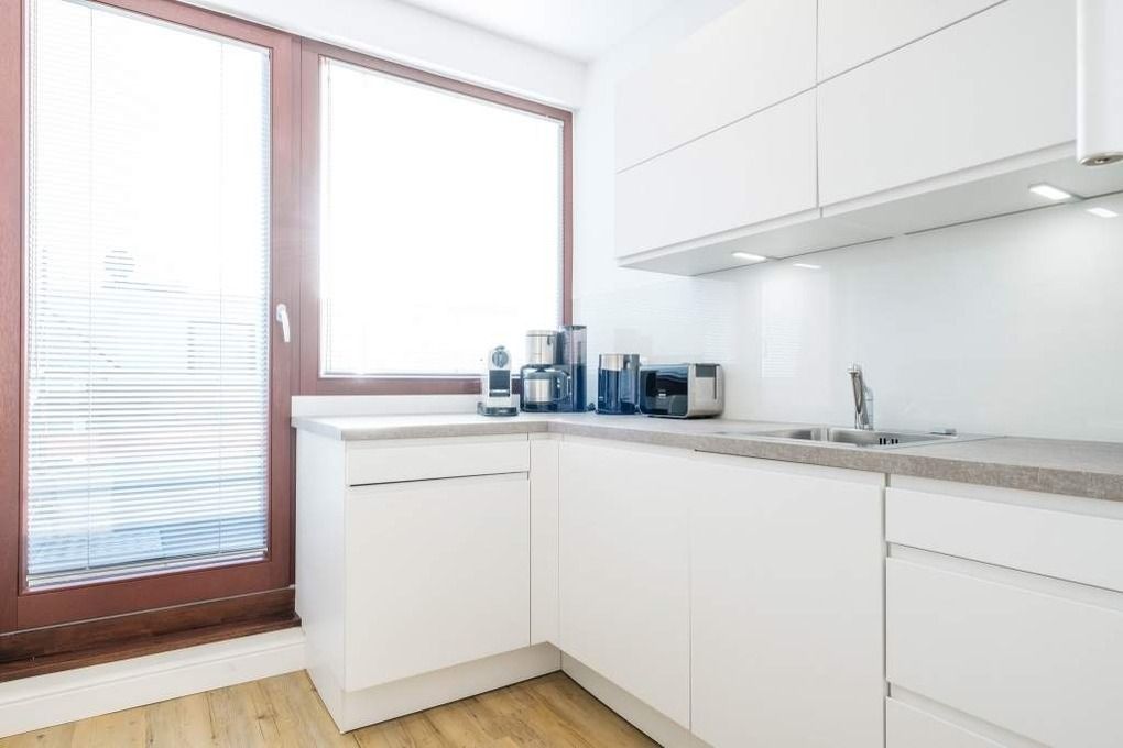Die separate Küche ist hochmodern ausgestattet. Hier stehen Ihnen ein Herd mir Cerankochfeld, ein Backofen und ein Geschirrspüler zur Verfügung. Darüber hinaus finden Sie eine Filter Kaffeemaschine und eine Nespresso-Kapselmaschine vor.