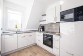 Die offene Küche ist mit allem Komfort ausgestattet u.a. sind Ceranfeld, Backofen, Mikrowelle und Geschirrspüler vorhanden.
