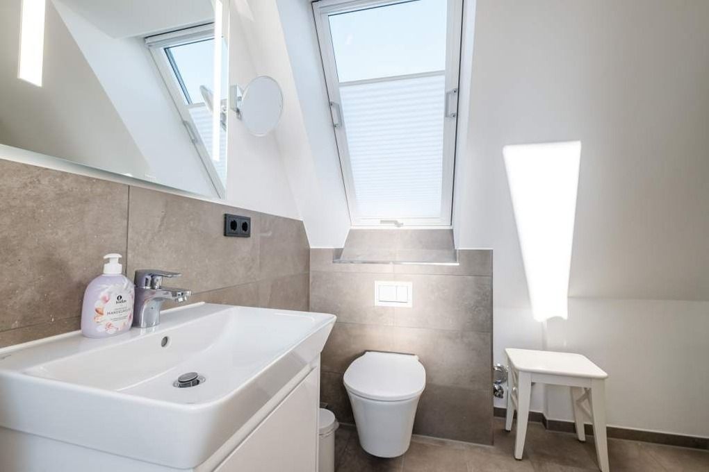 Das moderne großzügige 3-Zimmer Appartement Nr. 3 im Haus Strandperle erstreckt sich auf ca. 70qm Wohnfläche über 2 Ebenen und bietet ausreichend Platz für bis zu 4 Personen. Jedes Appartement verfügt über einen eigenen Eingang über eine Außentreppe. Die Raumaufteilung ist wie folgt: