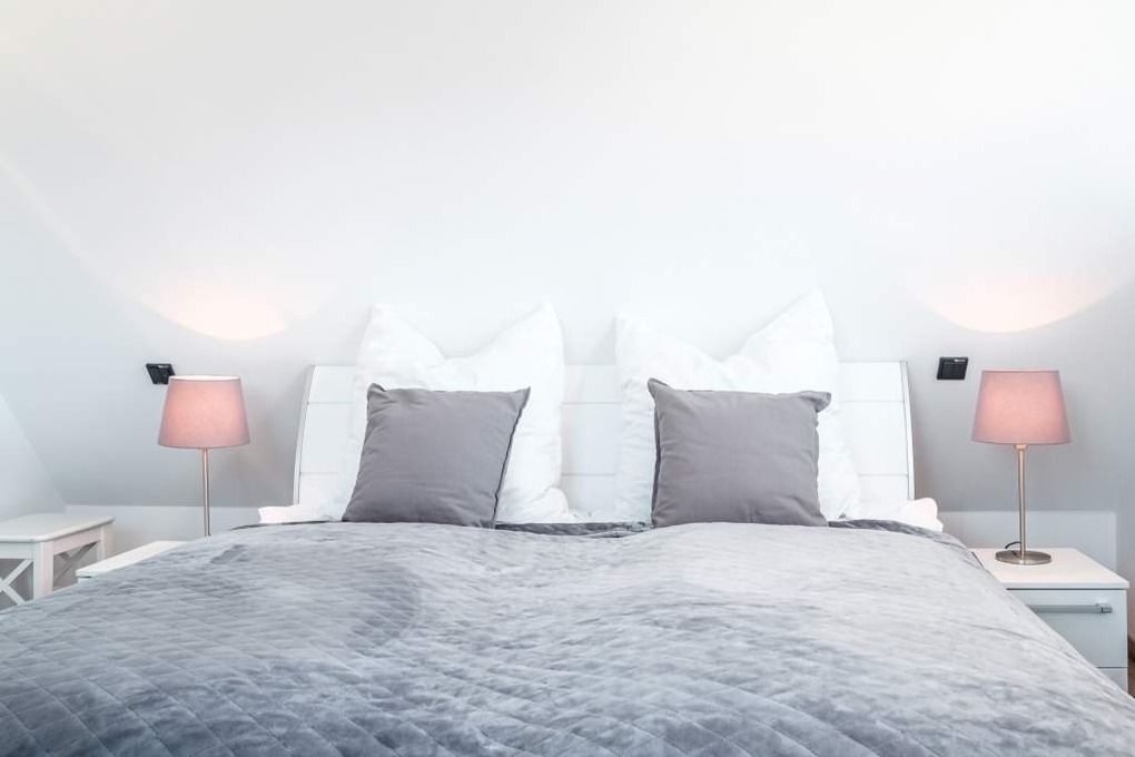 Beide Schlafräume der Ferienwohnung sind mit elektrischen Außenjalousien ausgestattet, welche Ruhe und einen erholsamen Schlaf garantieren. Darüber hinaus lassen sich sämtliche Räume komplett abdunkeln, inklusive der Dreiecksfenster mit elektrischen Außenjalousien.