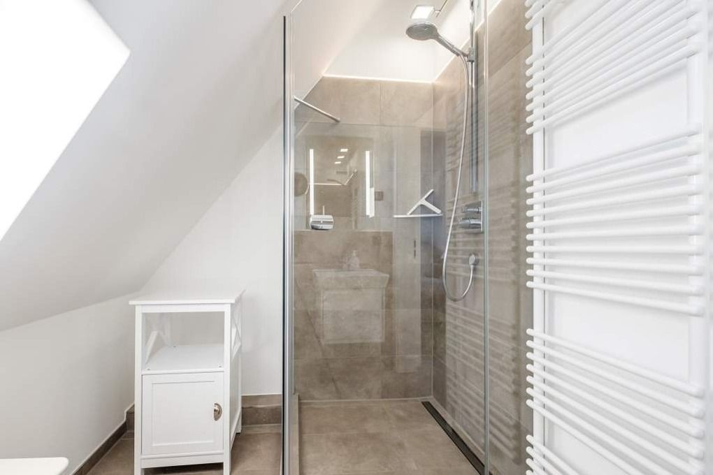 Darüber hinaus wird das Obergeschoss durch ein Bad mit Dusche/WC abgerundet.