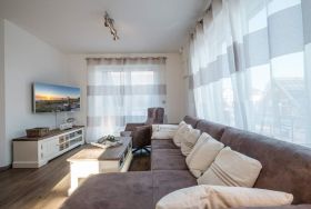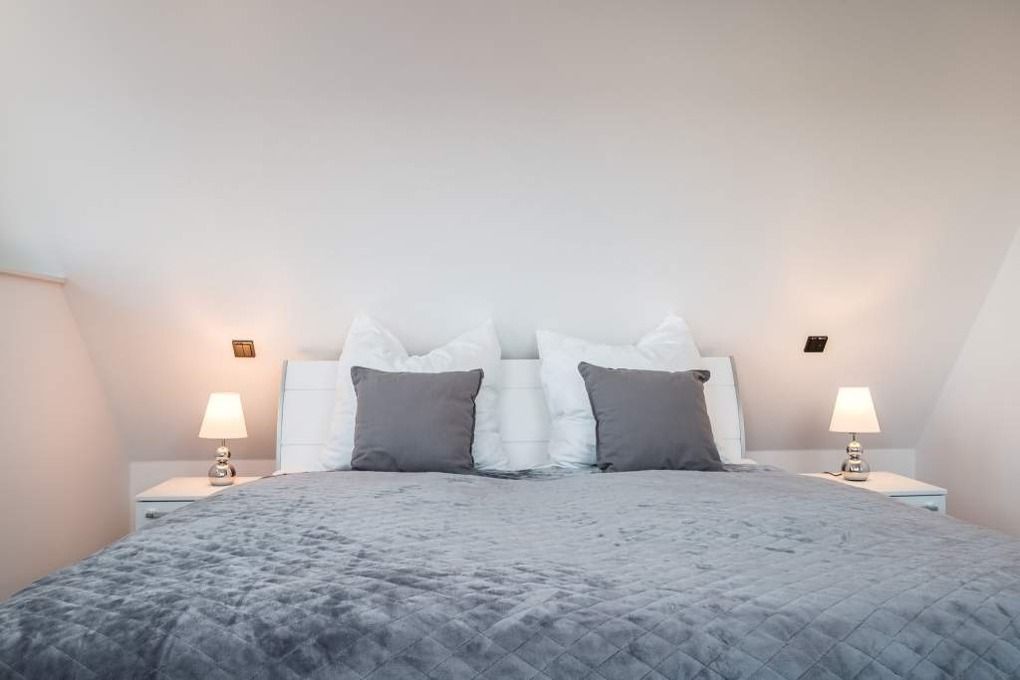 Beide Schlafräume der Ferienwohnung sind mit elektrischen Außenjalousien ausgestattet, welche Ruhe und einen erholsamen Schlaf garantieren. Darüber hinaus lassen sich sämtliche Räume komplett abdunkeln, inklusive der Dreiecksfenster mit elektrischen Außenjalousien.