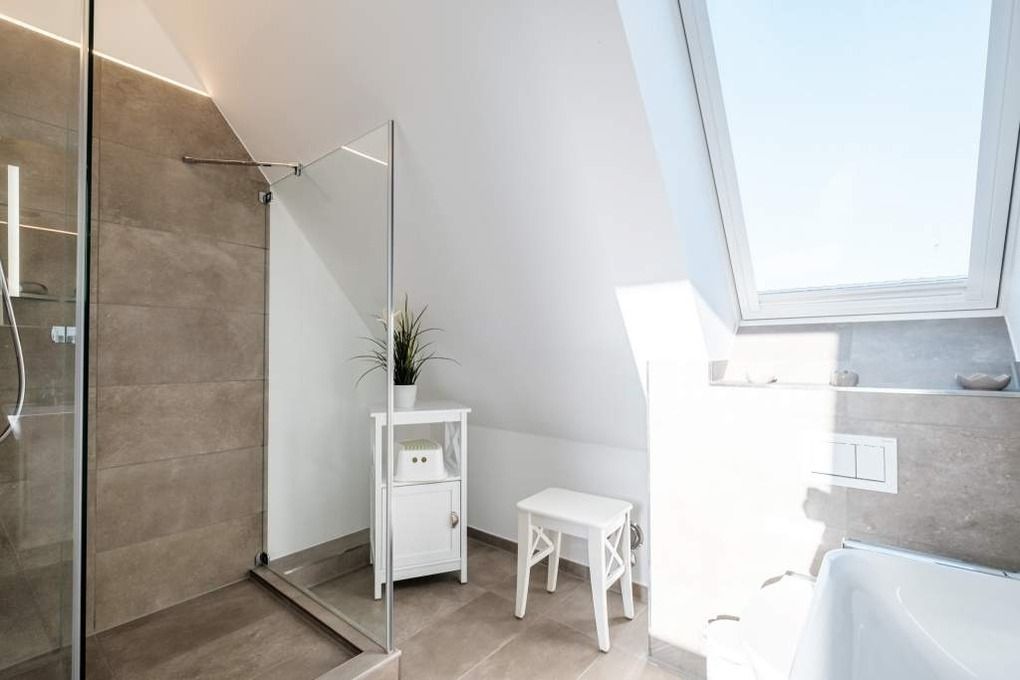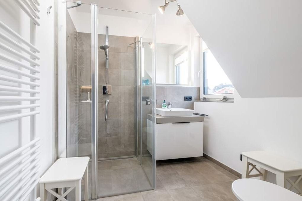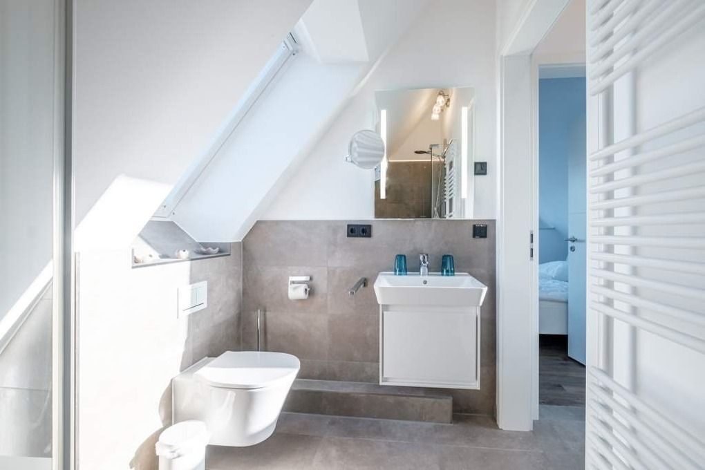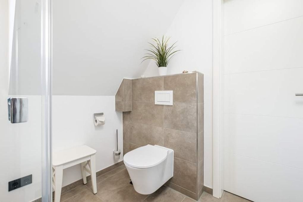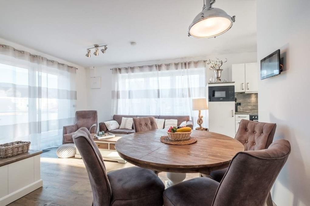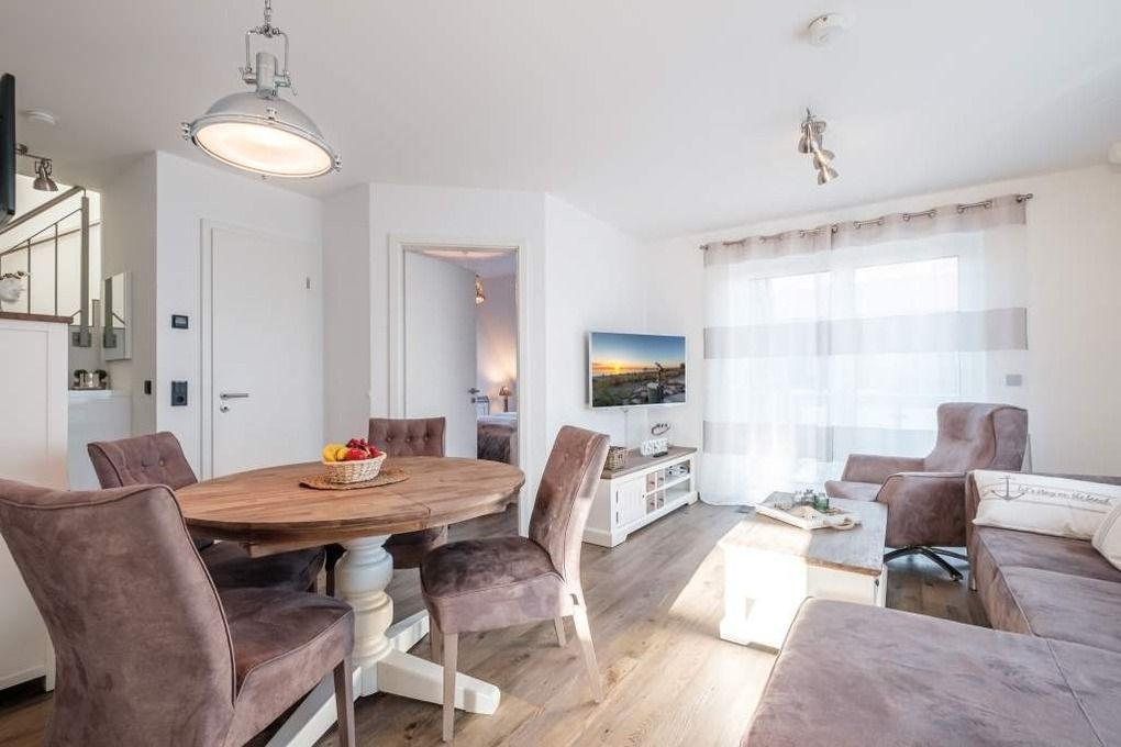 Das moderne großzügige 3-Zimmer Appartement Nr. 5 im Haus Strandperle mit Meerblick erstreckt sich auf ca. 70qm Wohnfläche über 2 Ebenen und bietet ausreichend Platz für bis zu 4 Personen. Jedes Appartement verfügt über einen eigenen Eingang über eine Außentreppe. Die Raumaufteilung ist wie folgt: