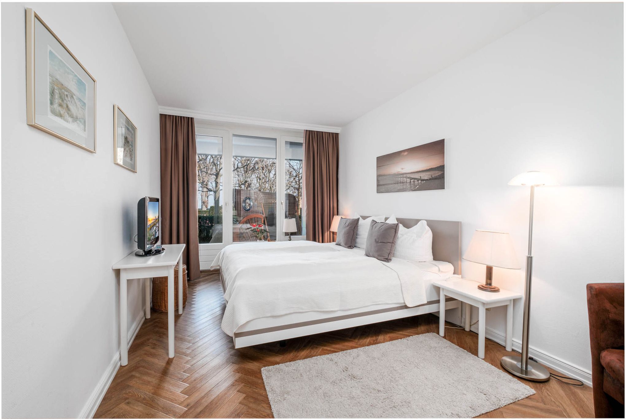 Das gemütliche 2-Zimmer-Appartement Nr. 107 ist für maximal 4 Personen ausgestattet und liegt im Erdgeschoss mit Süd-Ost-Terrasse und Meerblick. Das Wohn-/Schlafzimmer der Timmendorfer Strand Ferienwohnung ist mit einer Ausziehcouch (140x190cm), Flatscreen-TV und einer Essecke ausgestattet. Die Küchenzeile verfügt über ein Ceranfeld, Backofen, Mikrowelle und Geschirrspüler sowie einen Toaster, eine Kaffeemaschine und einen Wasserkocher.