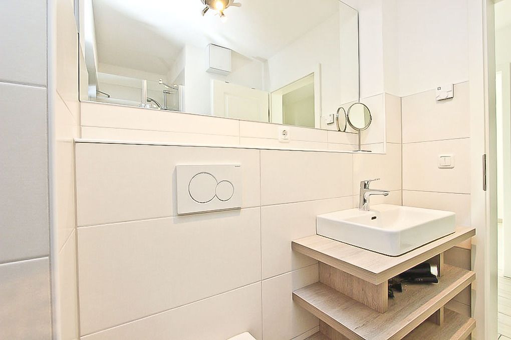 Das geschmackvolle Badezimmer mit Dusche und Föhn und der möblierte Balkon zur Sonnenseite (Süd-Lage) runden dieses wunderschöne Urlaubsdomizil im Herzen von Scharbeutz ab.