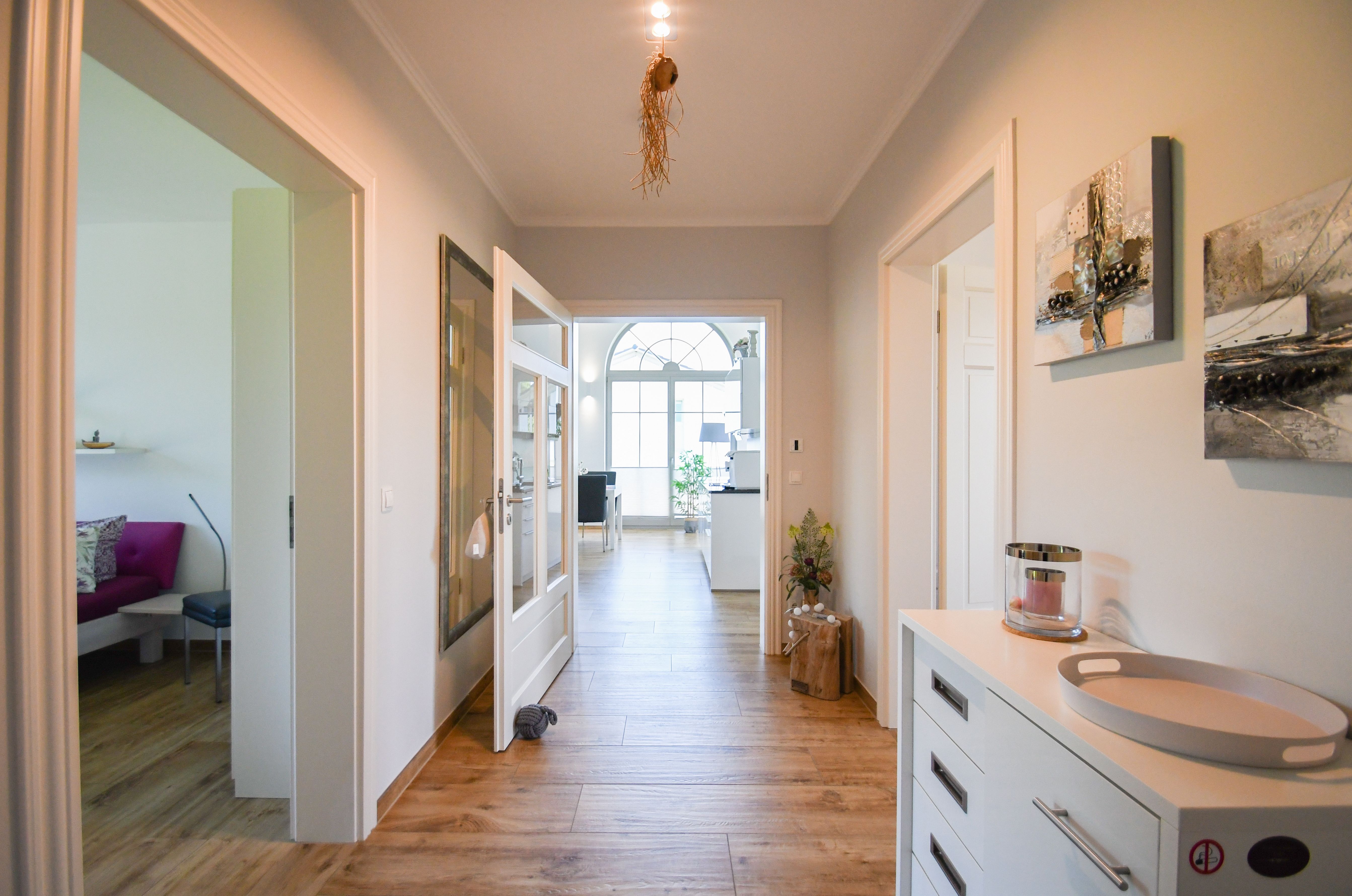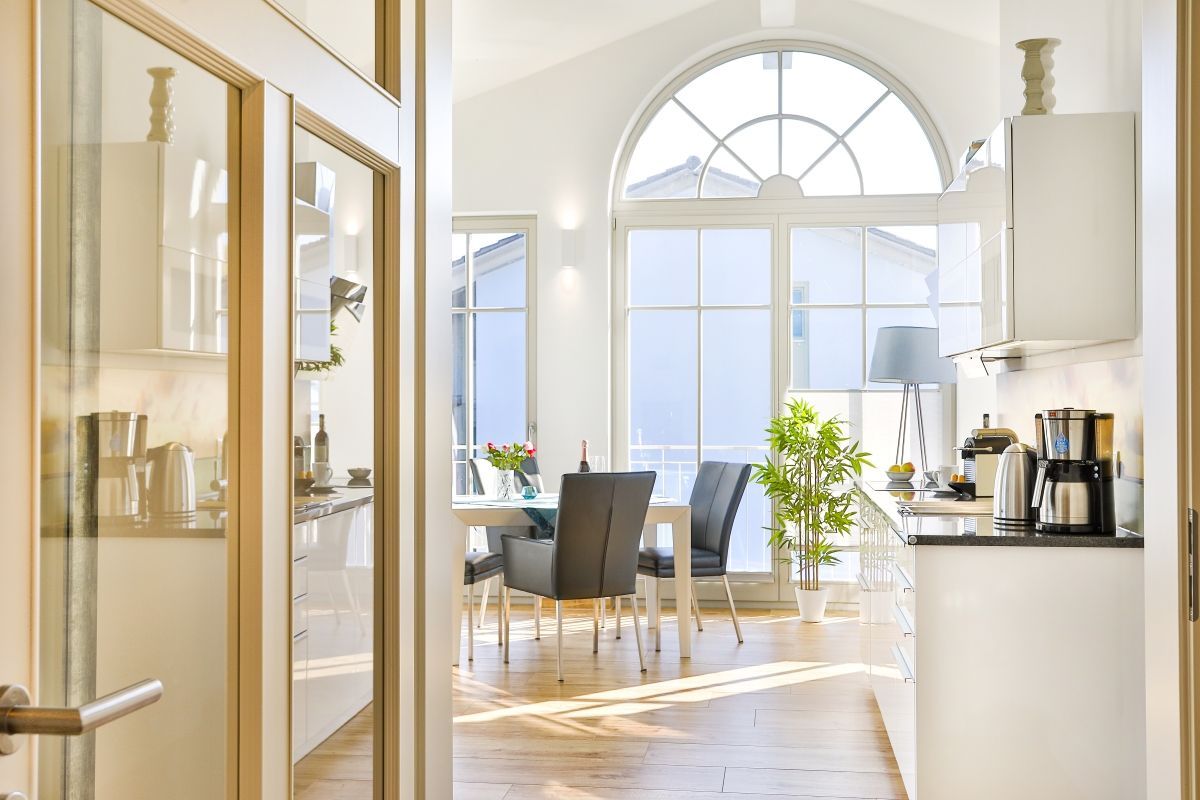 Die Wohnung besticht durch ihren hochwertigen, modernen und gemütlichen hellen Wohnraum, der durch einen Kamin für eine wohlige Atmosphäre sorgt. Die voll ausgestattete Markenküche mit Geschirrspüler, Mikrowelle, Backofen, Cerankochfeld, Kühl-und Gefrierkombination, Wasserkocher und Kaffeevollautomat lässt keine Wünsche offen. Auch hier befindet sich ein großer LED-Smart TV mit einem Blu Ray-Player und für vollendeten Musikgenuss eine Bose Sound Touch. Anlage
