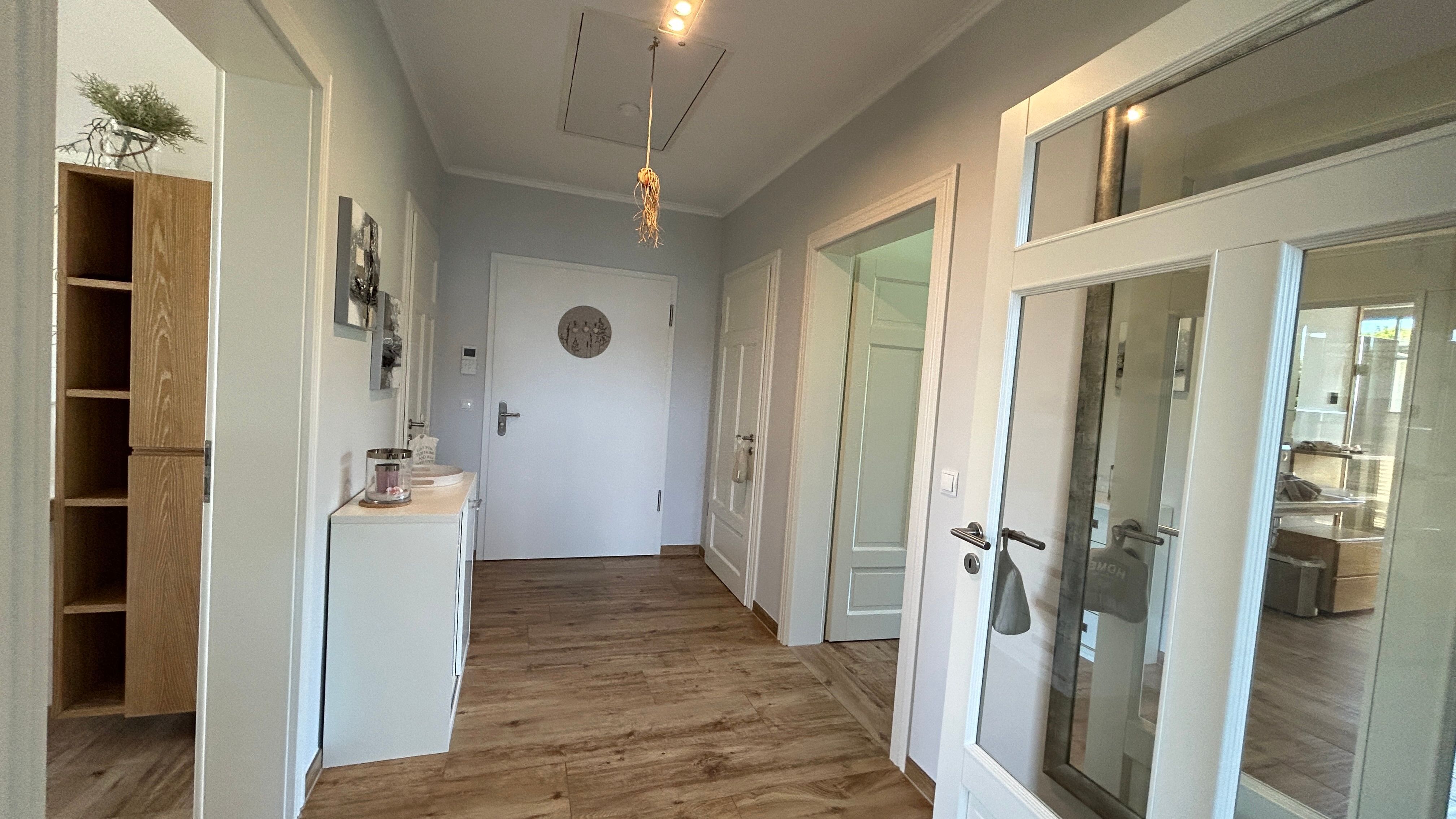 Bücher, DVD's und Spiele für die ganze Familie stehen Ihnen ebenfalls zur Verfügung. Auch hier befinden sich an den Türen zum Balkon Insektenschutztüren.