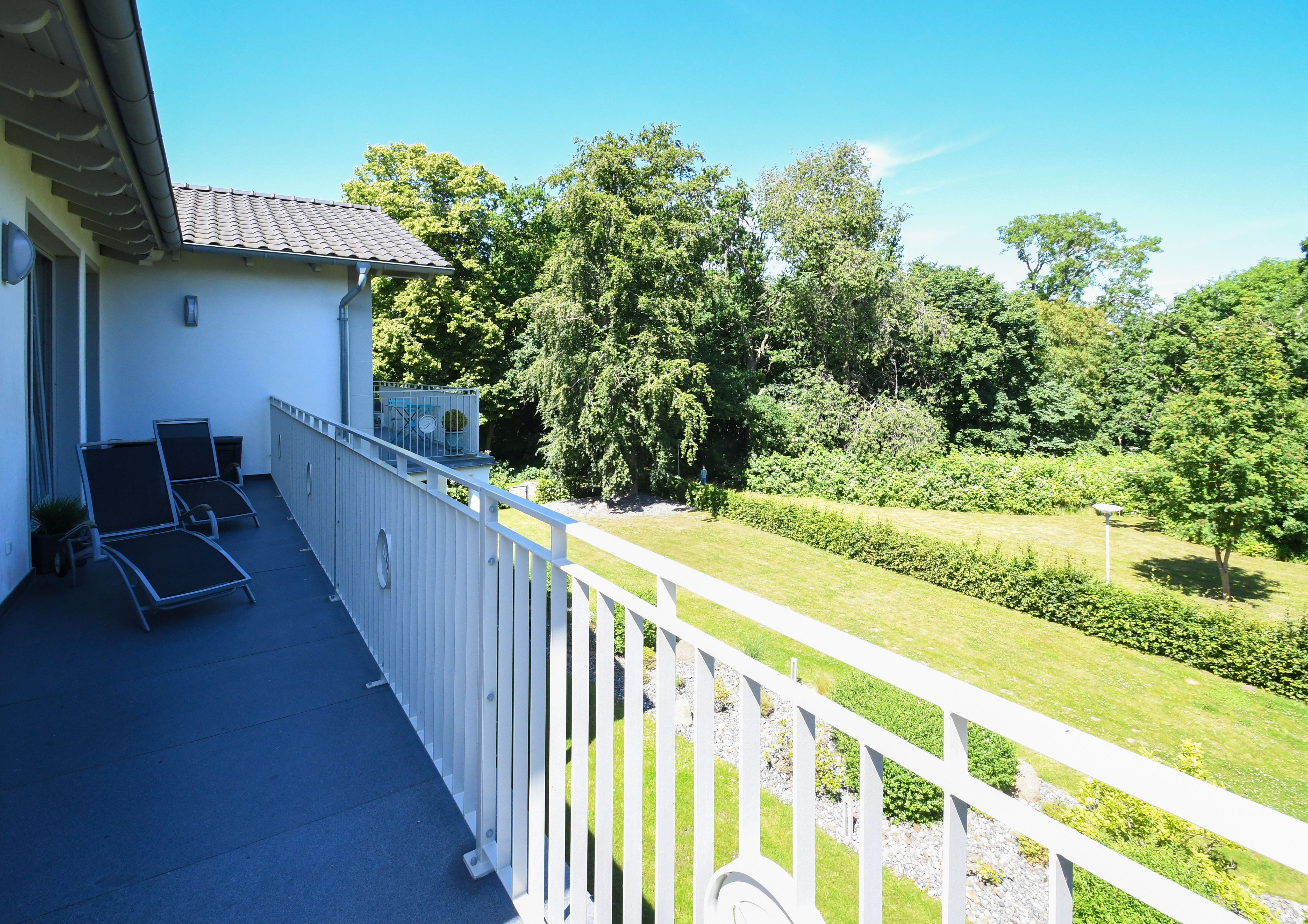 Genießen Sie Ihren Rügen Urlaub in dieser wunderschönen, exklusiv eingerichteten Nichtraucher Penthouse-Ferienwohnung. Freuen Sie sich auf einen L- förmigen großen Balkon zur Meerseite, der mit 2 Relaxliegen und Sitzgelegenheiten zu einem entspannten Frühstück einlädt und einem kleinen Balkon. Beide sind von fast allen Zimmern begehbar.