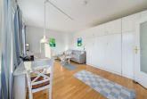 Das Schrankbett lässt sich im Handumdrehen ausklappen und verwandelt den Raum in einen gemütlichen Schlafbereich. Die einladende Couchecke mit Smart-TV bietet den perfekten Ort zum Entspannen und Fernsehen, während auf dem Schlafsofa bei Bedarf sogar noch Platz für ein Kind ist. Ein Esstisch im Wohnbereich sowie eine separate kleine Küche mit eigenem Essplatz ermöglichen flexible Mahlzeiten. Das Badezimmer ist mit einer Dusche und WC ausgestattet.