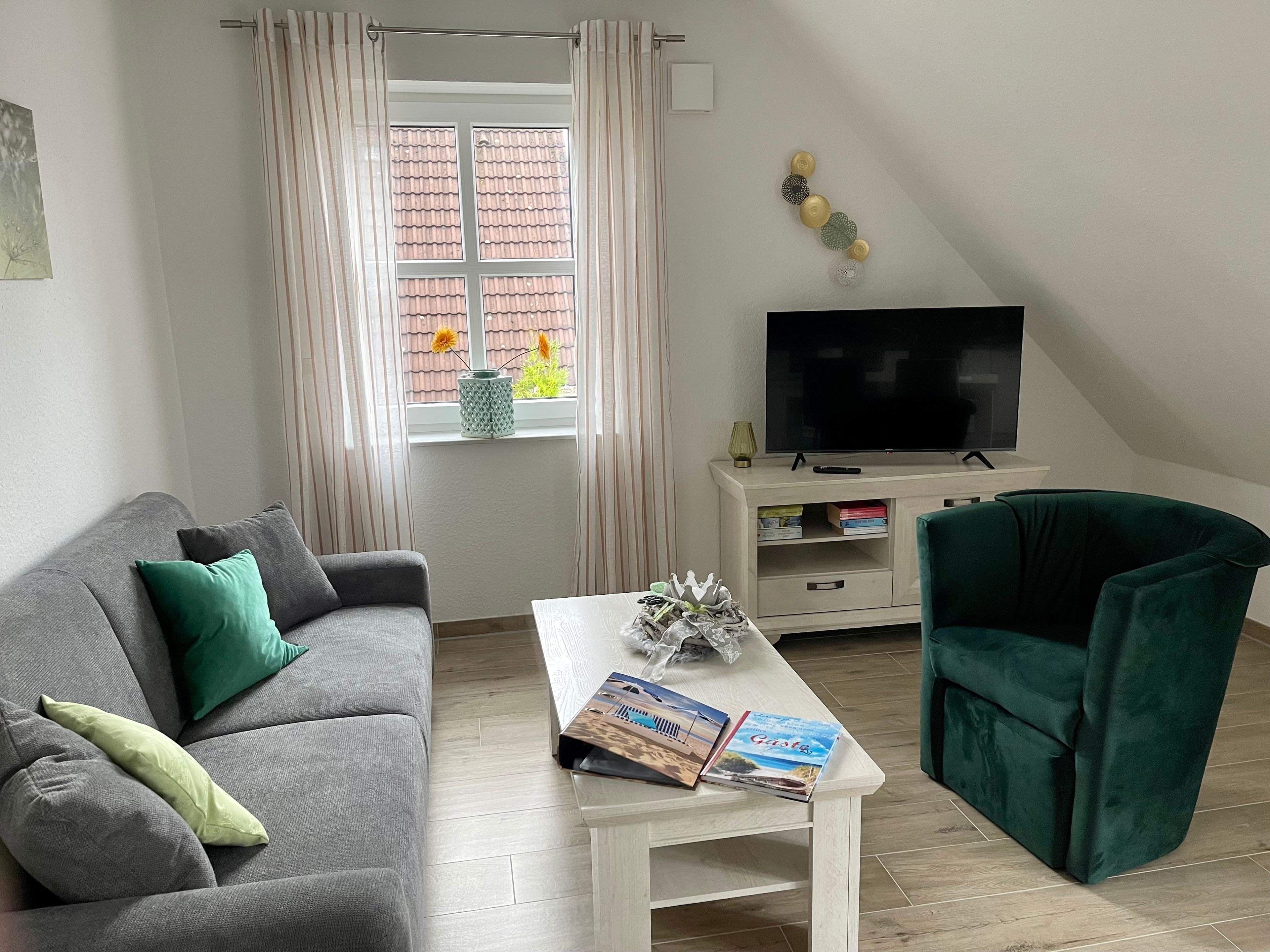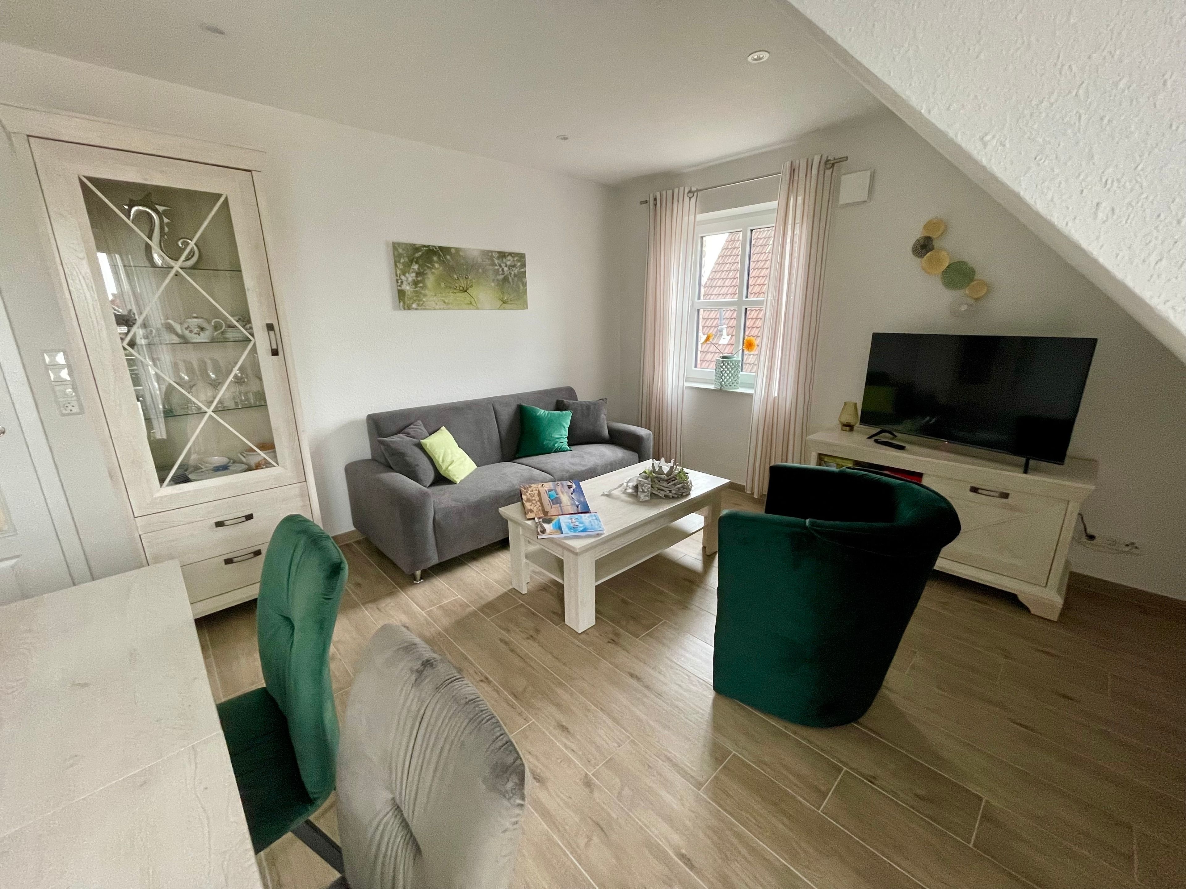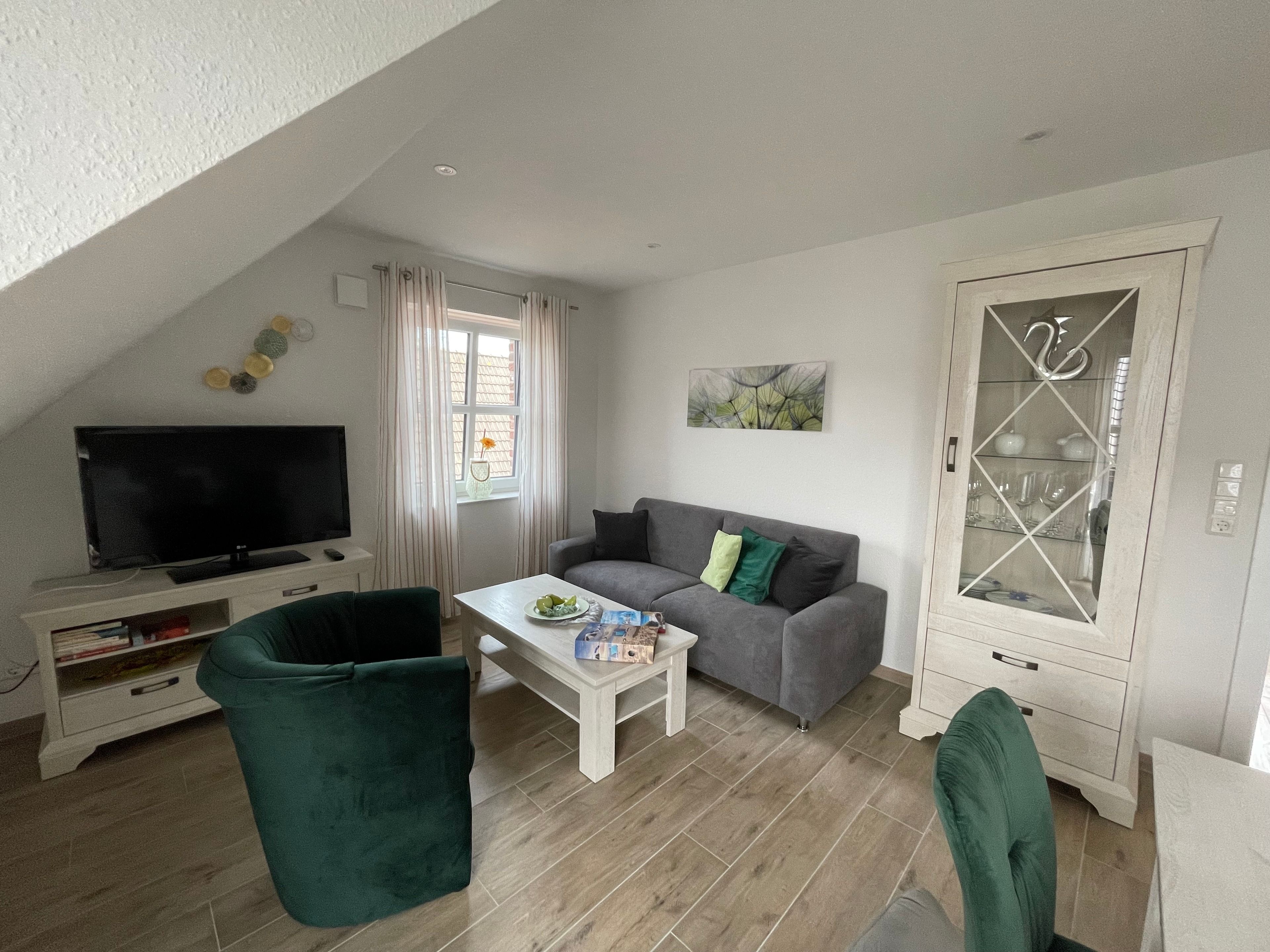 Urlaub in Greetsiel? Dann buchen Sie jetzt diese neue und gemütliche Ferienwohnung. Genießen Sie Ihren Urlaub auf 75m² mit ausreichend Platz für bis zu 4 Personen und hat 2 Schlafzimmer, jeweils mit Doppelbett und TV sowie 2 Tageslicht-Duschbäder/WC mit Walk-In Dusche.