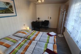 Ferienzimmer: Erdgeschoß,19 qm für 2 Personen, Zentralheizung, einfach/ zweckmäßig ausgestattet, Doppelliege, Nachttische, Kleiderschrank, Tisch mit 2 Stühlen, Sat/TV, Dusche/WC.