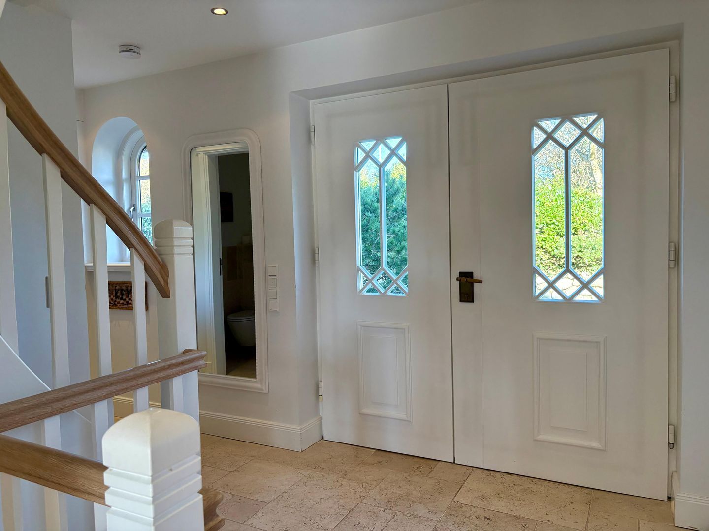 Der helle, freundliche Eingangsbereich heißt Sie herzlich willkommen und führt direkt in den offenen Wohn- und Essbereich. An kühlen Tagen verbreitet der Kamin im Wohnzimmer wohlige Wärme, während die weichen Sofas dazu einladen, sich einzukuscheln, zu lesen oder den Lieblingsfilm zu genießen.